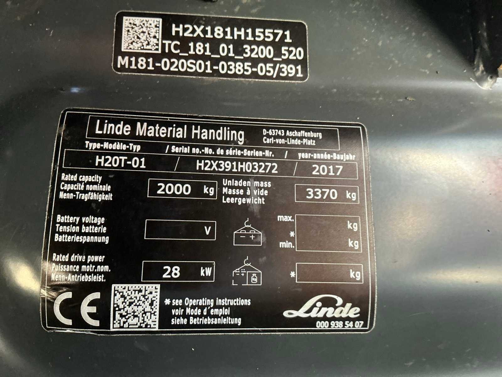 Led werklichten voor en achter, blue spot , flash light , Nee Merk: Linde Type: H20T Bouwjaar: 2019 Serienummer: H2X391H03272 Brandstof: LPG Mast: Duplex Soort band: Volrubber banden Aantal wielen: 4 Afgelezen urenstand: 6260 Side-shift: true Duplex mast: true Eigen gewicht: 3370kg Hefvermogen: 2000kg Lepellengte: 1150mm Min. hefhoogte: 0mm Hefhoogte: 3850mm Vol rubber banden: true Totale afmeting L: 2500mm Totale afmeting Breedte: 1100mm Totale afmeting Hoogte: 2450mm LPG: true Leveringsvoorwaarden: Gratis op vrachtwagen