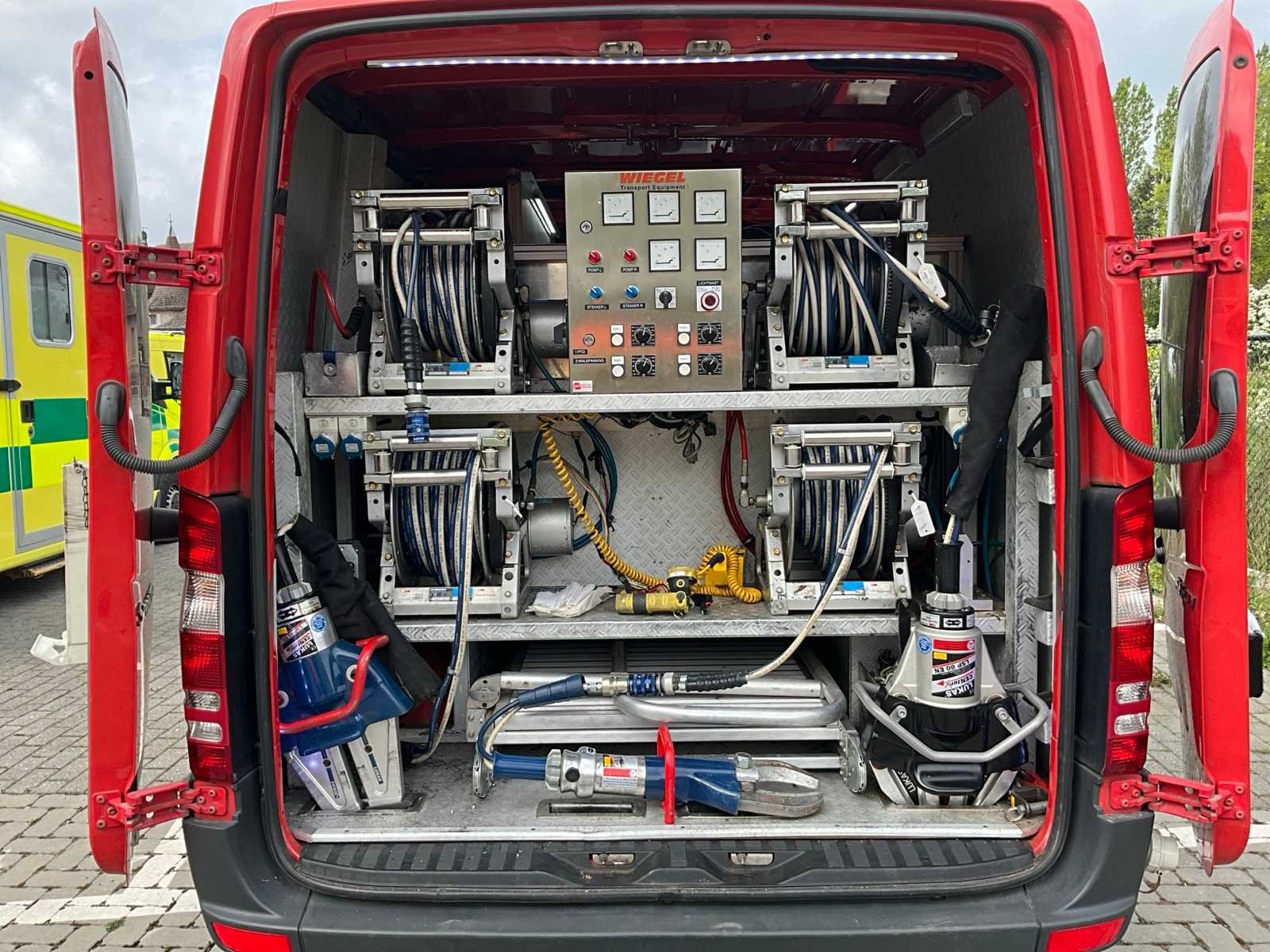 ZONDER zend en communicatie apparatuur, ZONDER hydraulische reddingsgereedschappen en toebehoren. Inrichting Somati. Het voertuig is uitgerust met een stroomgenerator aangedreven via PTO. Voertuig voorzien van kantelbare lichtmast Night Scan, complete elektrisch aangedreven hydraulische pompgroep met 4x hydraulische slangenhaspels, bedieningskast, Belgische boorddocumenten compleet, sleutel aanwezig. Nee Chassisnummer VIN: WDB9066531S151137 Merk: Mercedes Benz Type: 515 CDI Bouwjaar: 2007 Datum eerste inschrijving: 26-06-2007 Aantal assen: 2 Asconfiguratie: 4x2 Motorvermogen (kW): 110kW Brandstof: Diesel Transmissie: Handgeschakeld Kilometerstand bij opname: 78846km