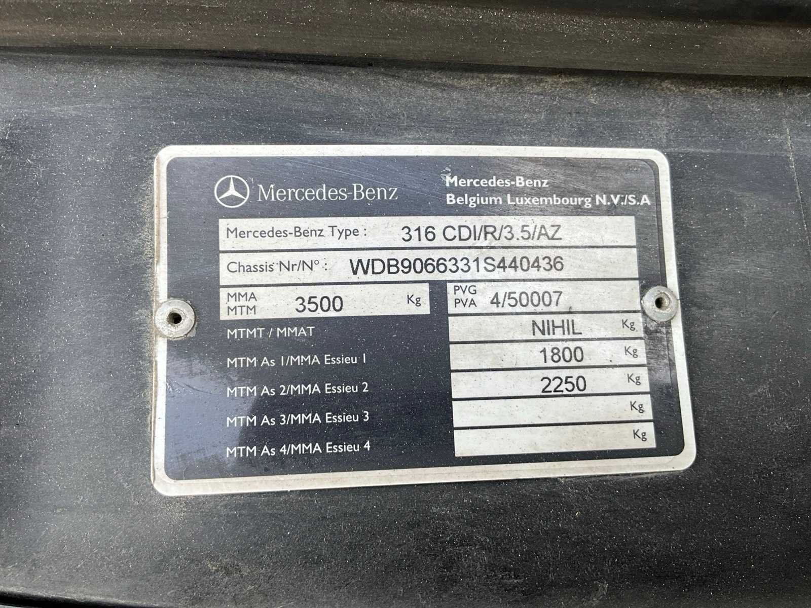 ZONDER zend en communicatie apparatuur, voorzien van ambulance inrichting, rechter spiegel ontbreekt, Belgische boorddocumenten compleet, sleutel aanwezig Nee Merk: Mercedes-Benz Type: Sprinter 316 CDI Bouwjaar: 2010 Chassisnummer VIN: WDB9066331S440436 Datum eerste inschrijving: 20-03-2010 Motorvermogen (kW): 120kW Type transmissie: Automatisch Diesel: true Kilometerstand bij opname: 177927km Totale afmeting L: 6000mm Totale afmeting Hoogte: 2800mm