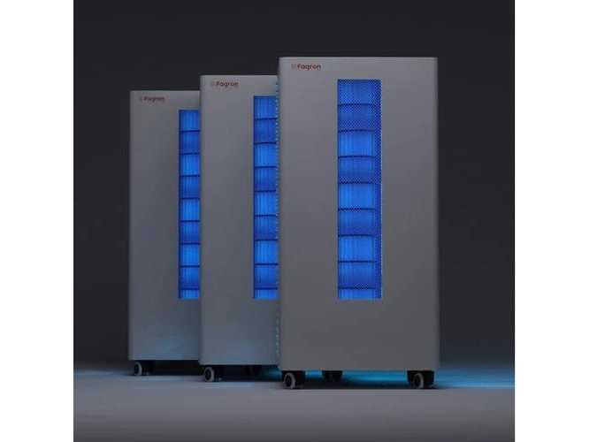Ongebruikt in originele verpakking. 4 stuks. « De FagronLab ™ UVGI-80-sterilisator gebruikt een zeer intensieve ultraviolette kiemdodende lamp, een negatieve ionengenerator en desinfectiemethode, die kan worden gebruikt voor luchtdesinfectie in diverse omgevingen. Deze UV-C luchtreiniger is geschikt voor ruimtes met een oppervlakte tot 32 m². De UV sterilisator is geschikt voor dynamische binnenlucht desinfectie met UV licht. » Nee