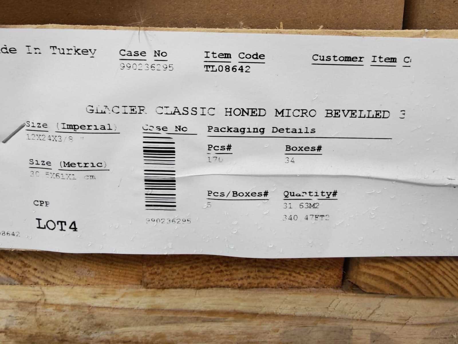 No Merk: Natuursteen Kleur: Wit Afwerking: Gezoet Lengte: 305mm Breedte: 610mm Dikte: 10mm Materiaal: Marmer Type: Vloertegel Model: Glacier Micro Bevelled Aantal m² per verpakking: 1m² Aantal pakken: 63 Totaal oppervlakte: 63.26m² Totaal gewicht: 1600kg