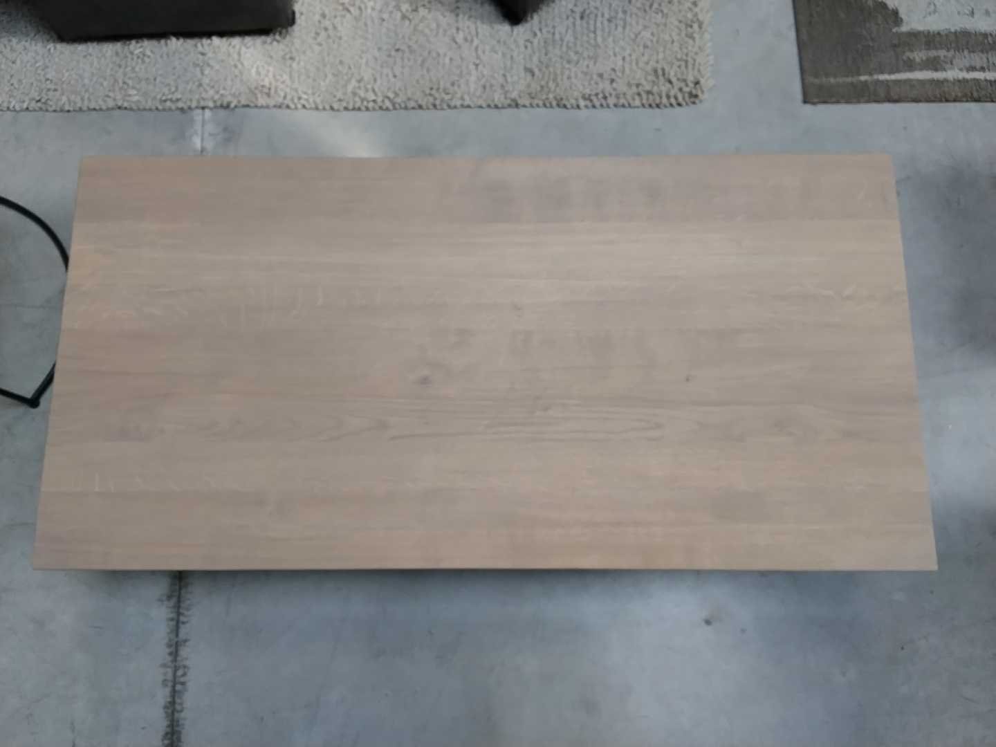Massief eiken salontafel met 2 lades No Lengte: 140cm Breedte: 70cm Hoogte: 41cm Materiaal: Massief eik