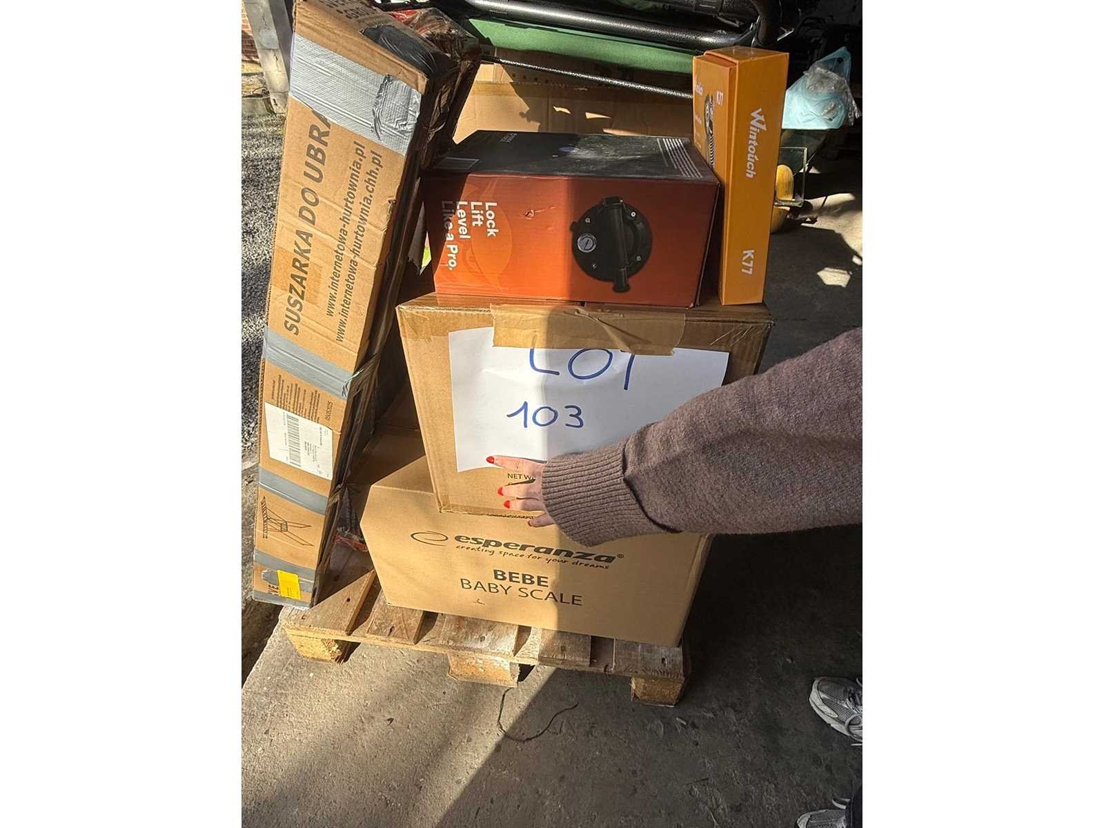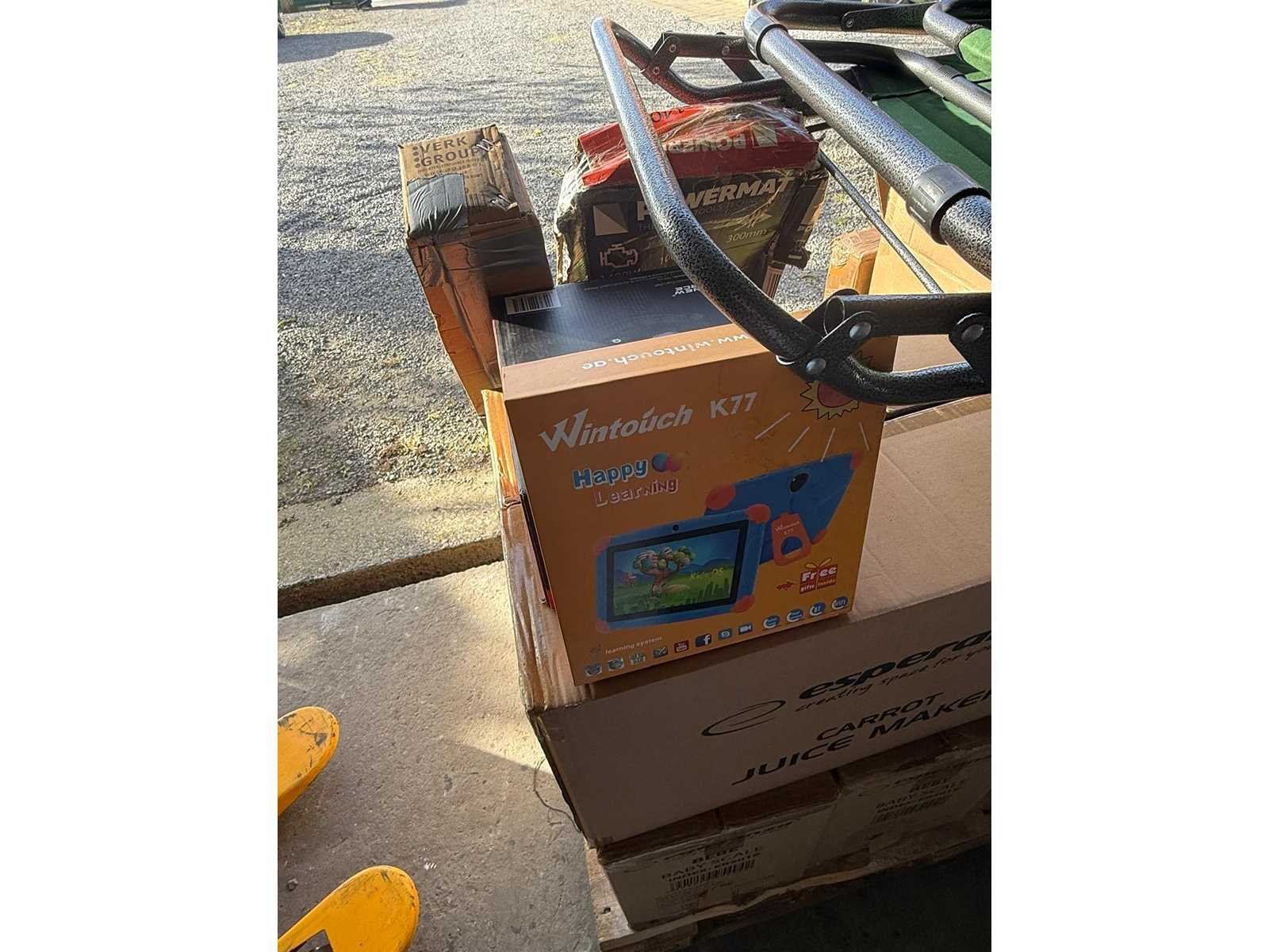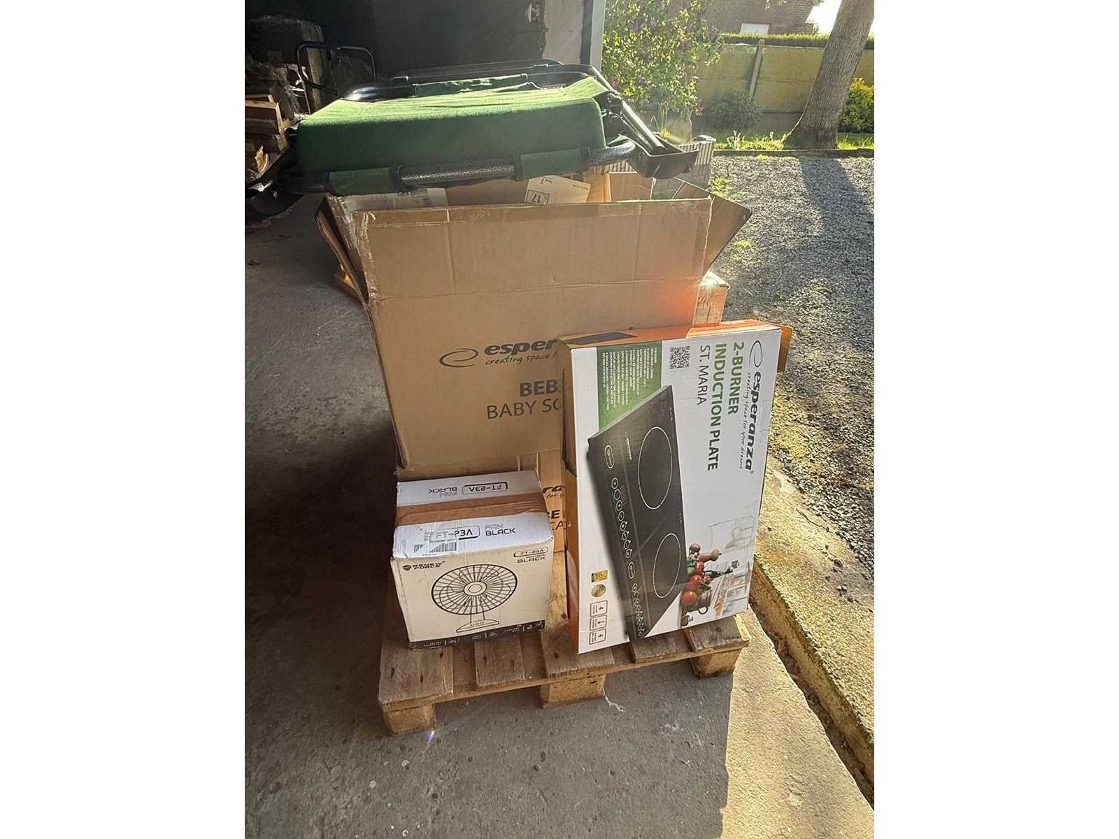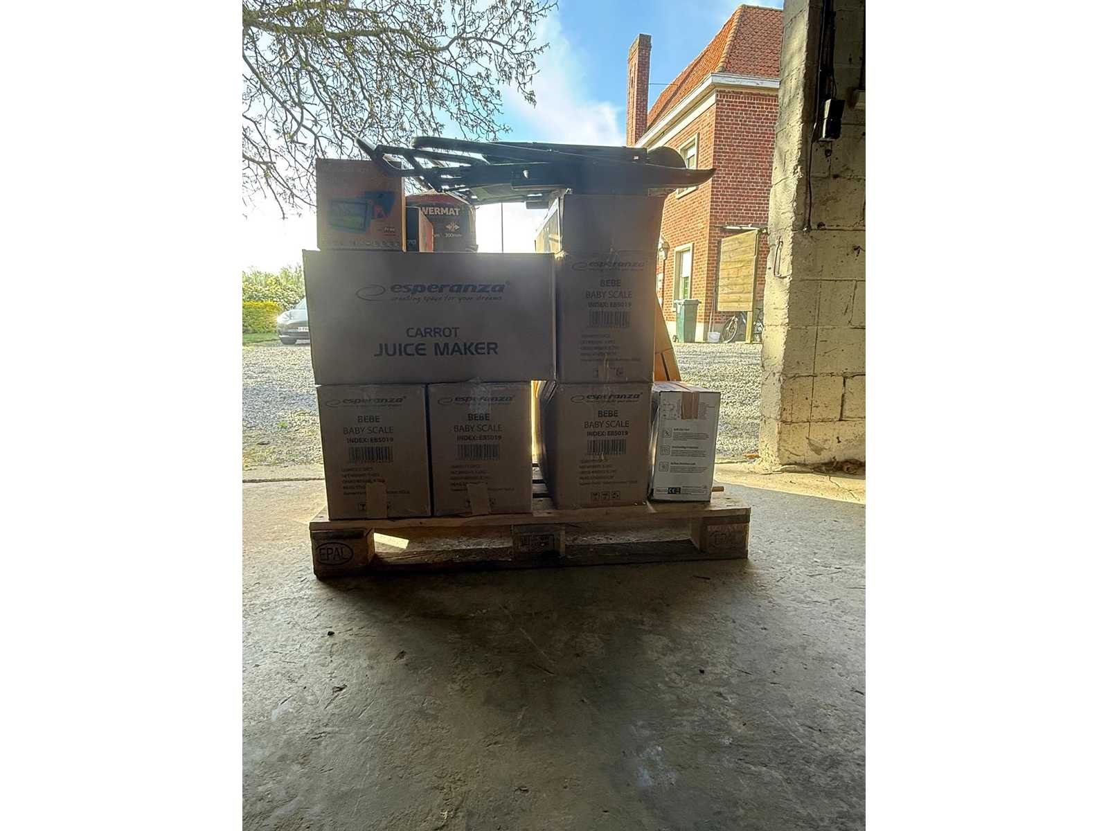 Sterke mix pallet met diverse courante producten, ideaal voor doorverkoop of export. 📦 Zichtbare inhoud o.a.: Grastrimmer, eierkoker, kookplaat, tuinligstoel, droogrek, tegelzuignap, tablet en ventilator. Daarnaast standaard aangevuld met retourgoederen in omdozen (inhoud onbekend – extra marge). 💰 Retailwaarde: €500 - €1000 💰 Interessant voor wederverkoop met mooie winstmarge ⚙️ Staat: Mix van retouren en nieuwe overstocks. Niet getest. Verkoop per volledig lot. 🚚 Praktisch: De goederen staan op een europallet. Bij afhaling kan deze worden omgeruild of kunnen de goederen ter plaatse worden afgeladen. Wenst u de europallet mee te nemen, dan geldt een meerprijs van €10. Verzending is mogelijk in overleg. No