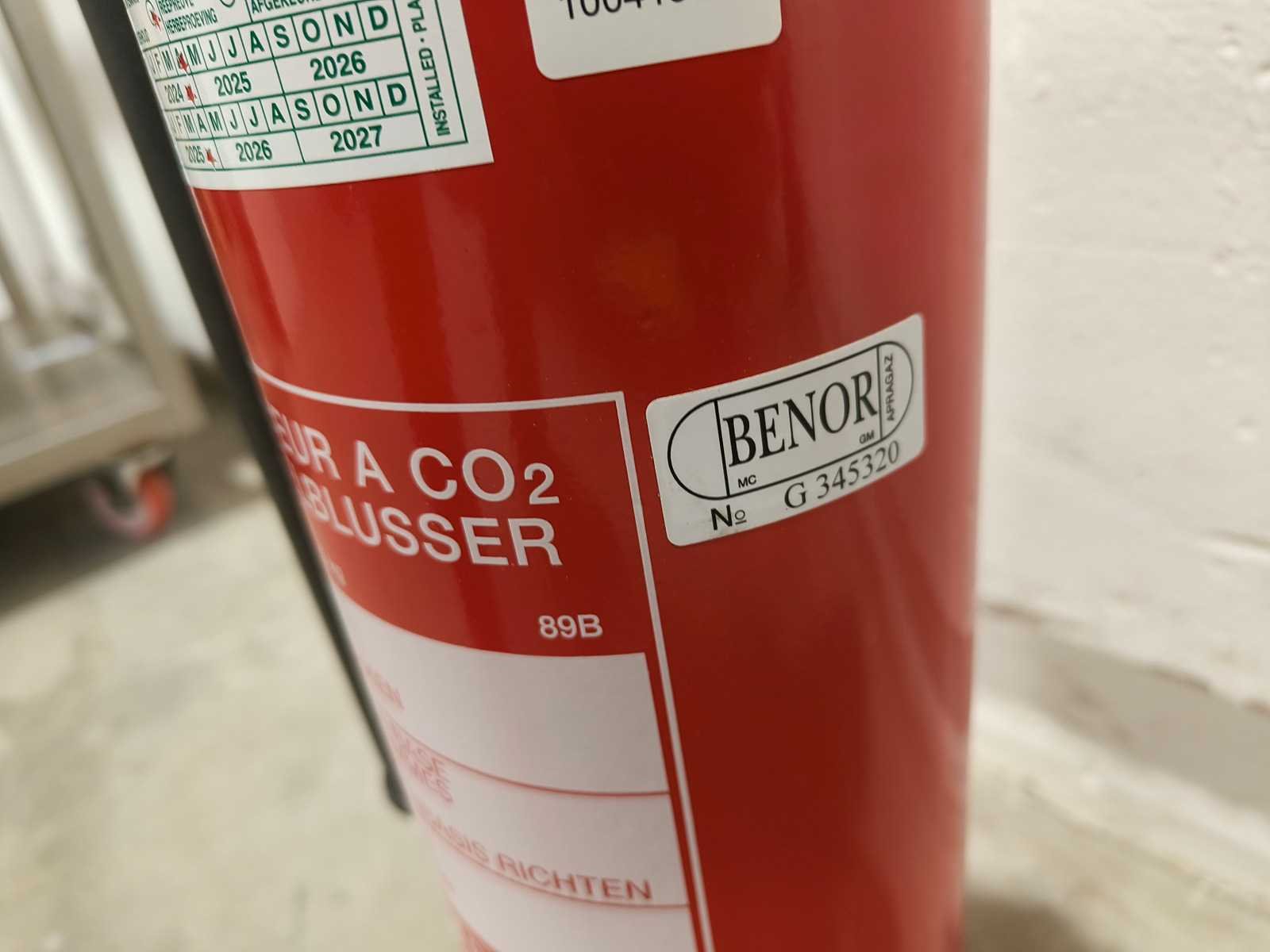 Dit is een lot van 5 stuks! Inhoud 5kg Bouwjaren variatie tussen 2016 en 2023. Allen gekeurd in 2024 met BENOR label! Brandblussers nog verzegeld Uit te kiezen ter plaatse! No Merk: Sicli Product type: Co2 blusser