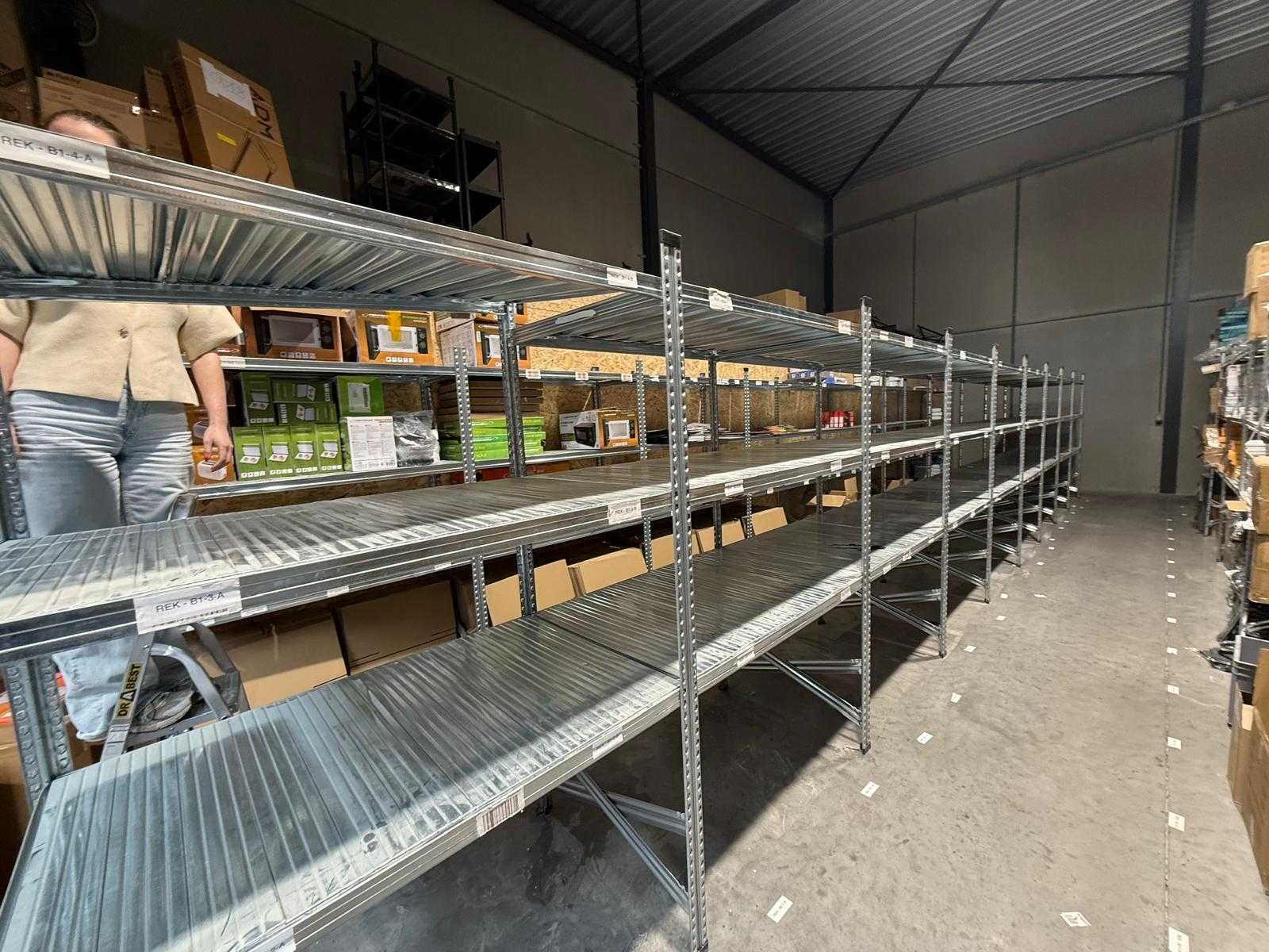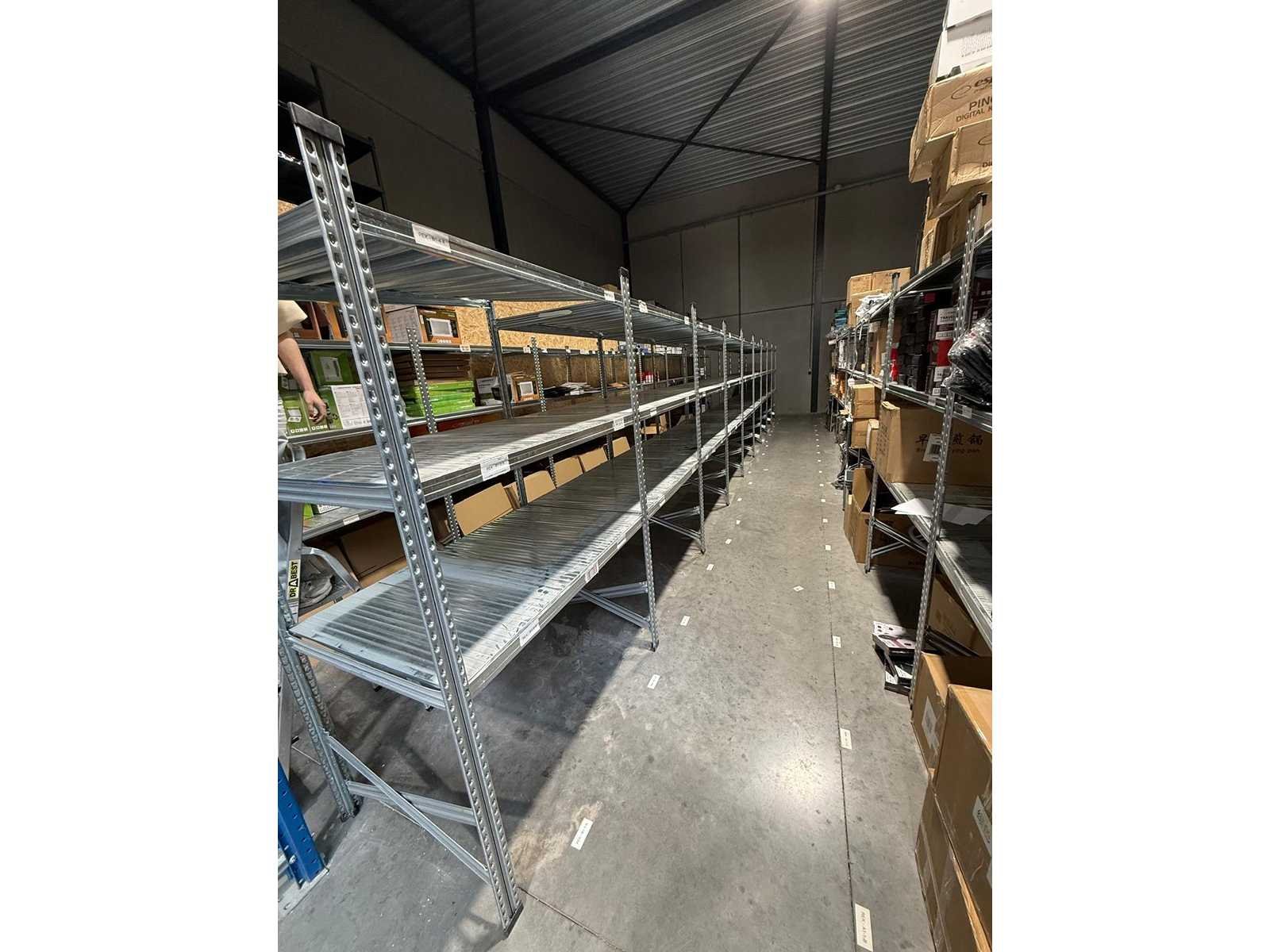Stevige aluminium rekken, ideaal voor opslag in magazijn, garage of winkel. 📦 Product: 9x aluminium rekken Afmetingen per rek (±): Hoogte: 2 meter (3 niveaus) Breedte: 80 cm Lengte: 120 cm 📏 Totale lengte: ±10,8 meter 🚚 Afhaling / Verzending: Afhaling en Verzending mogelijk Nee