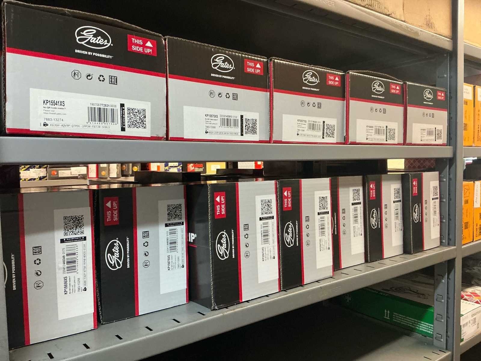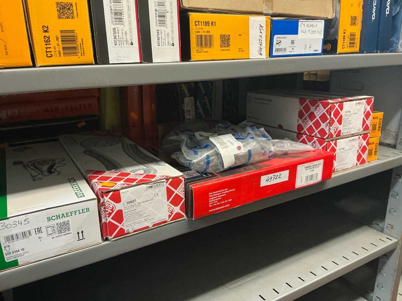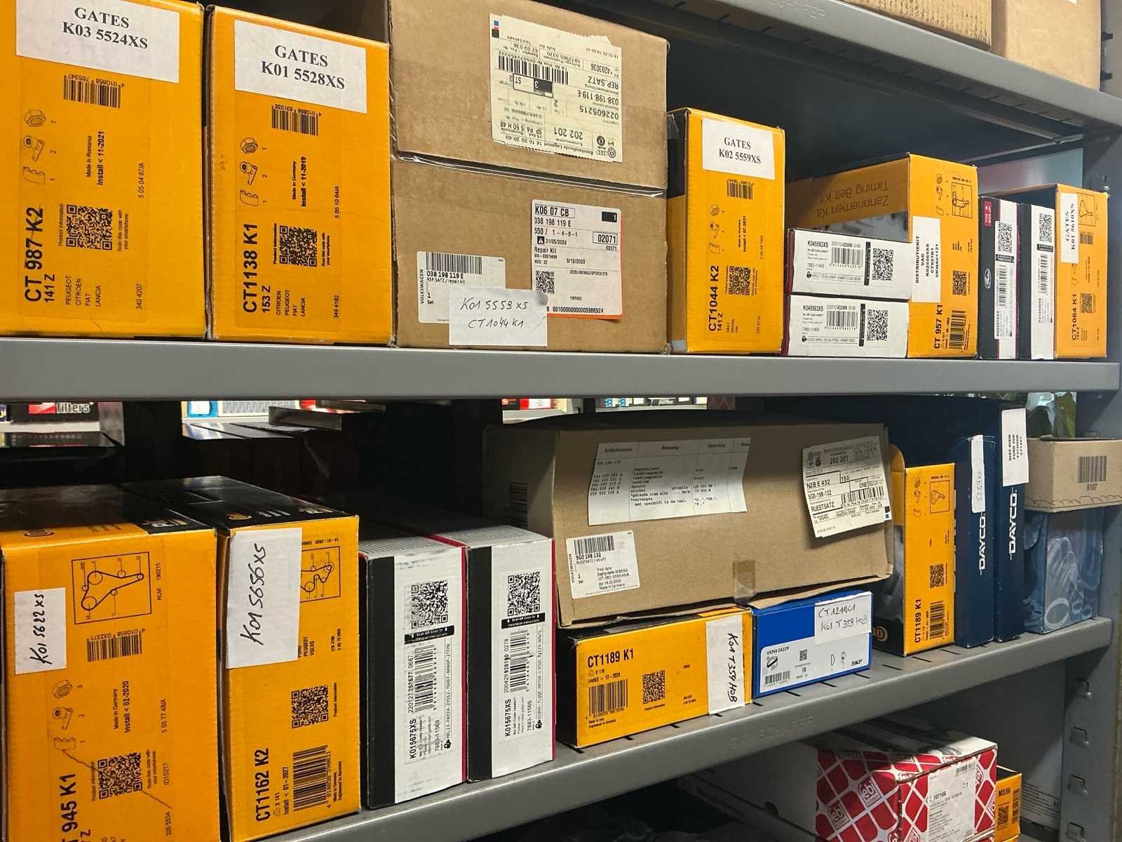 Bestaande uit 25 distributie kits met waterpomp, 15 standaard distributie kits, 6 ketting sets. Nieuw in de doos. No