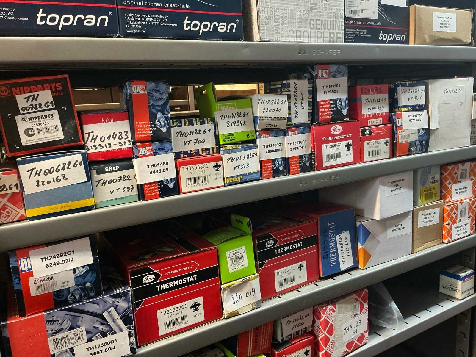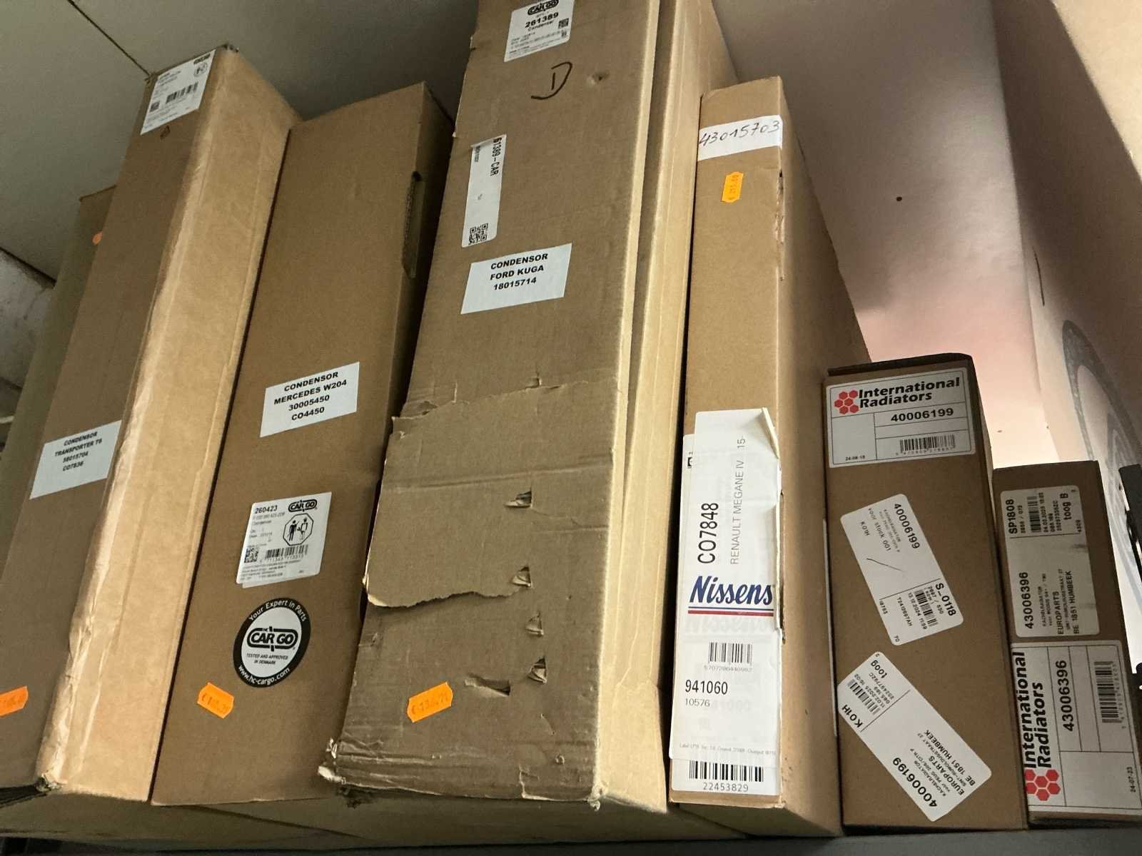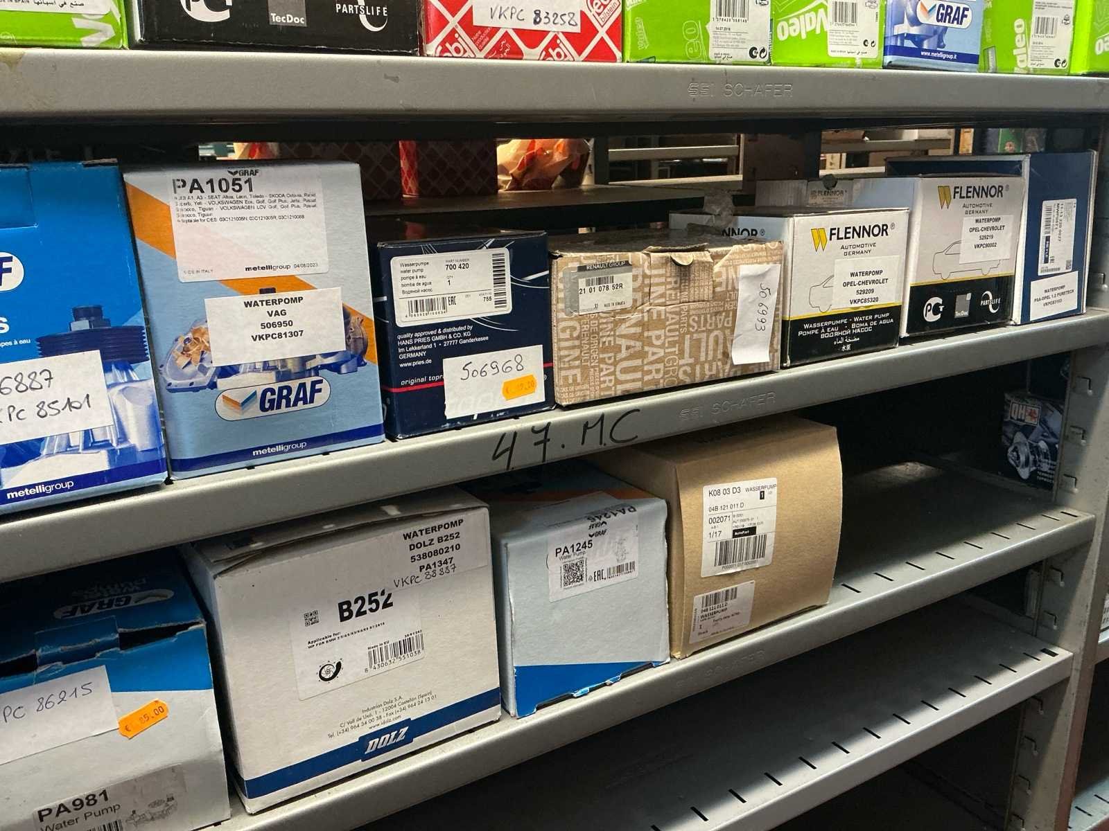 Bestaande uit 25 waterpompen, 60 thermostaten, 10 multiriem kits, 25 spanrollen, 6 condensors. Nieuw in de doos. No