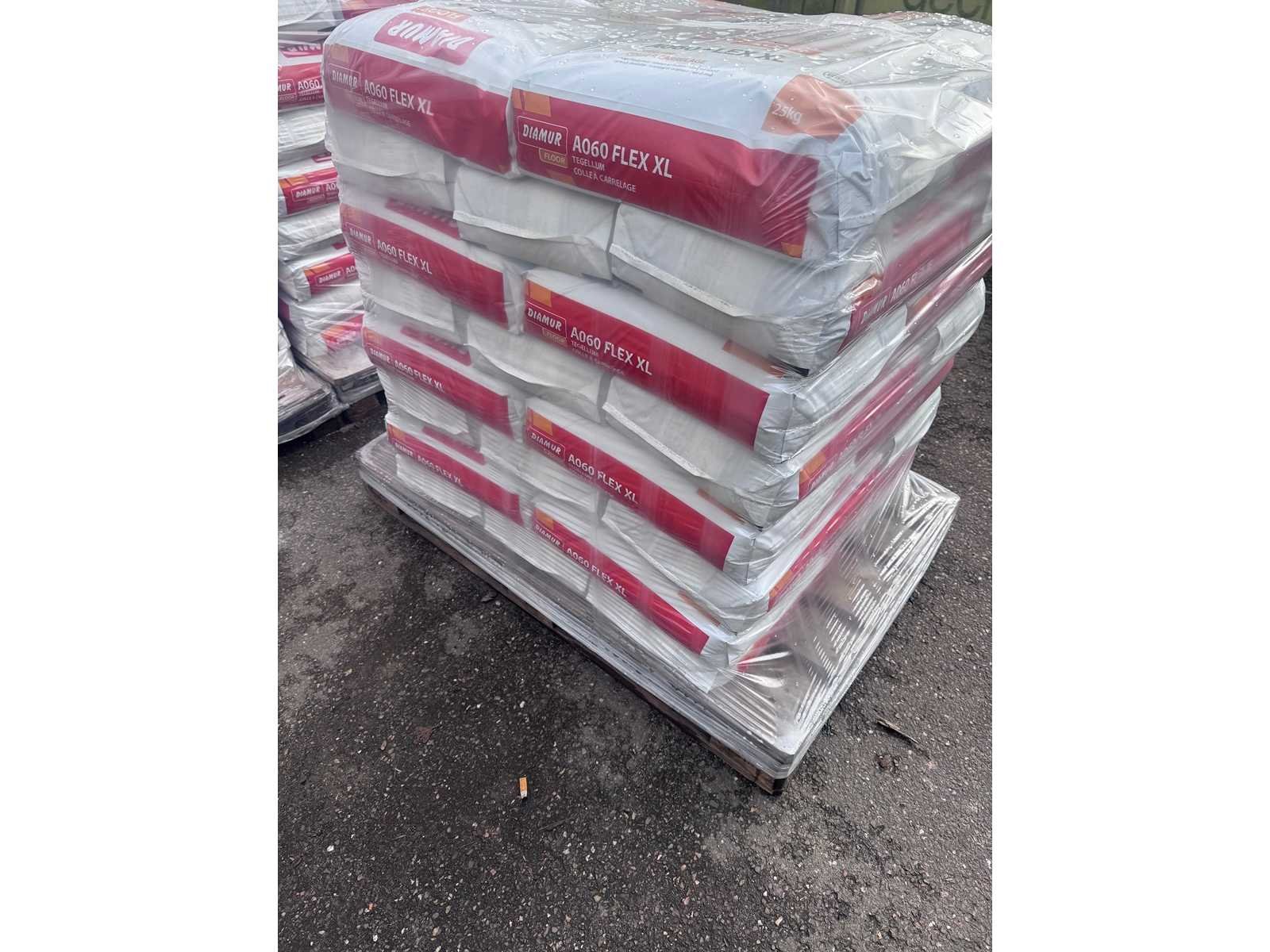 Lot bestaande uit nieuwe voorraad pallet 40 stuks Flexibele tegellijm C2TE-S1 met datum 24/03/2026 ( minimum van 2026 datum kan wat afwijken ) Diamur tegellijm A060 FLEX XL is een fabrieksmatig vervaardigde tegellijm op basis van zand, cement, kunststofbindmiddelen en diverse hulpstoffen die een gunstige invloed hebben op de verwerkbaarheid, de hechting en de elasticiteit van de lijm. Alle bestanddelen van de lijm zijn ovendroog en volledig voorgemengd. Diamur tegellijm A060 FLEX XL voldoet aan de classificatie C2TES1 volgens NBN EN 12004 en draagt het CE label. Toepassingen Diamur tegellijm A060 FLEX XL is geschikt voor het binnen- en buitenshuis verlijmen van wand- en vloertegels op: Cementgebonden ondergronden zoals beton, chapes, etc Cementeringen Gipskartonplaten en gipswanden Tegel over tegel Houten wanden Met Diamur tegellijm A060 FLEX XL kunnen zowel keramische tegels, natuursteen als cement- en betontegels tegels evenals grootformaat tegels (tot 10.000 cm²) verlijmd worden. Voor het verlijmen van bepaalde natuurstenen (vb. marmer) adviseren wij Diamur tegellijm A060W FLEX XL WIT. Toepasbaar in droge en natte ruimten en op vloerverwarming. Eigenschappen Diamur tegellijm A060 FLEX XL is een droge voorgemengde tegellijm die door de toevoeging van water een gebruiksklare tegellijm geeft. Diamur tegellijm A060 FLEX XL vertoont door het uitgekiende recept en de toepassing van hoogwaardige additieven een: Uitermate sterke aanhechting Verhoogde flexibiliteit Verlengde open tijd Verhoogde verticale glijweerstand/standvermogen Diamur tegellijm A060 FLEX XL is zeer smeuïg, licht verwerkbaar en laat zich makkelijk uitstrijken. Door de superieure elastische eigenschappen is hij tevens inzetbaar om grootformaat tegels (tot 10.000 cm²) te verlijmen op ondergronden met vloerverwarming. Nee Merk: 03/2026 Diamur A060 FLEX XL Kleur: Grijs Type: Tegellijm Muur: true Vloer: true