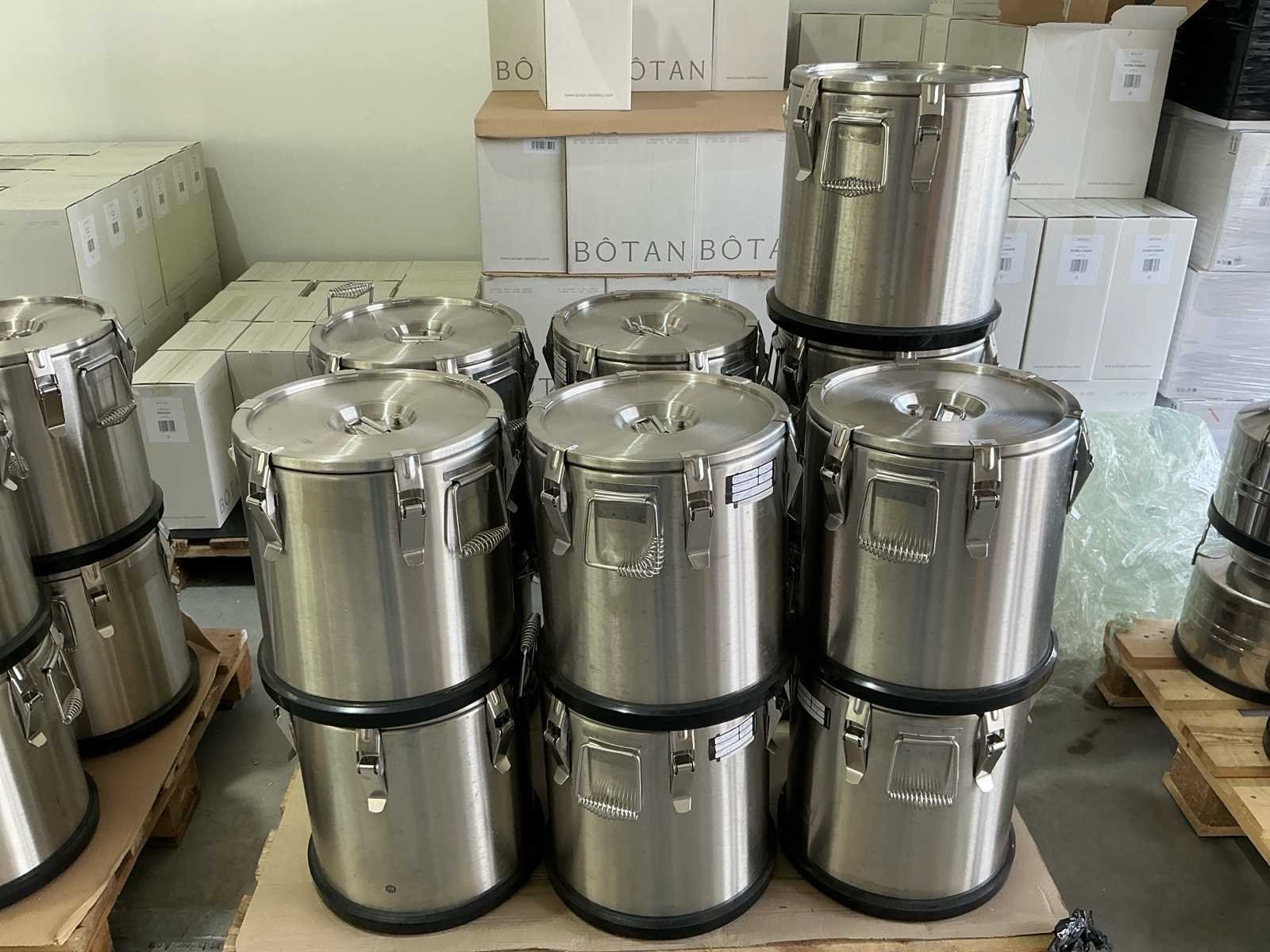 Lot van 7 RVS voedselopslagcontainers Enkel gebruikt voor watergedragen destilaten In goede staat No Merk: RVS voedselcontainer Type: 20L Rvs: true