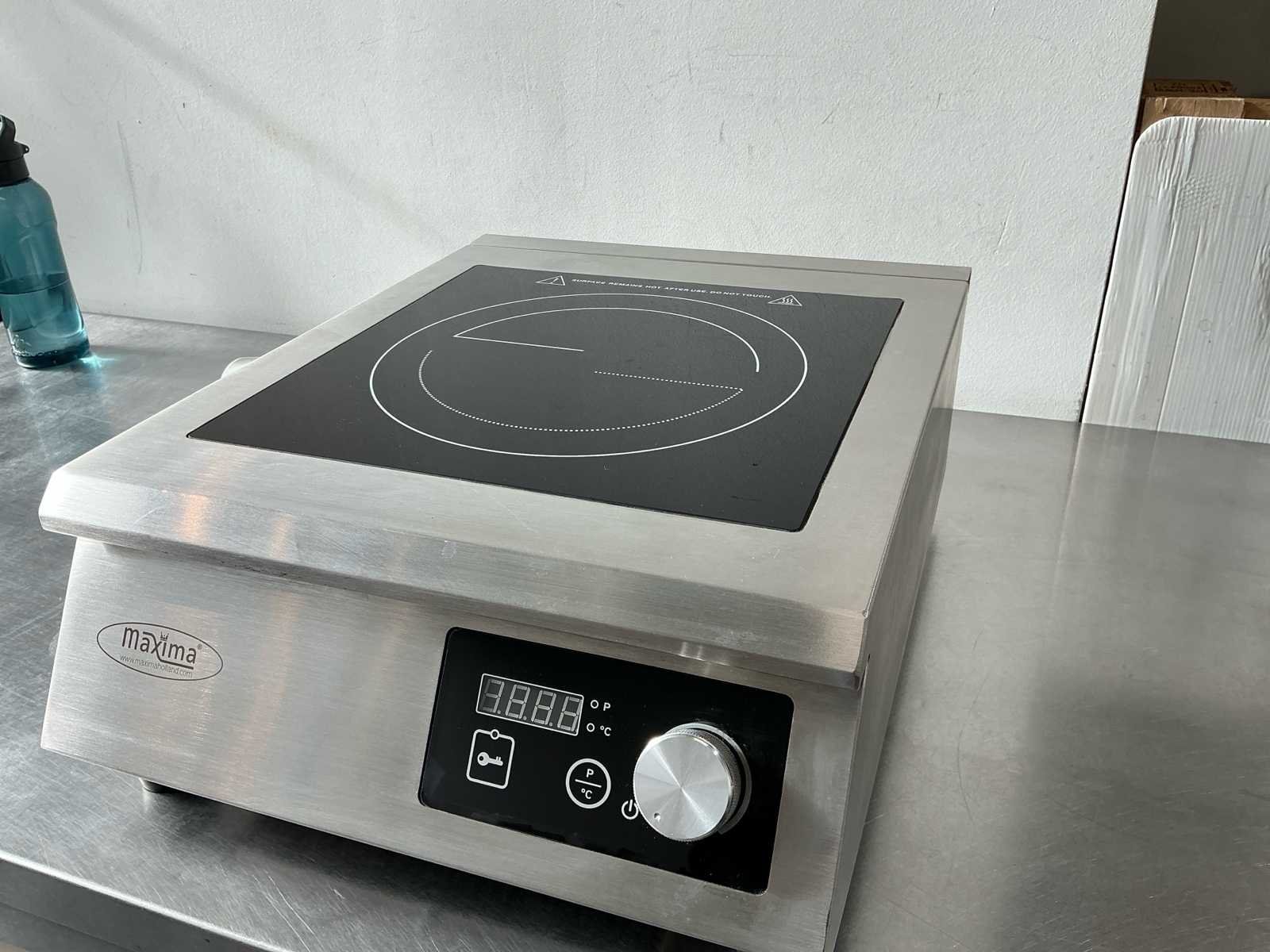 Inductie kookplaat met 5000W vermogen 10 instelbare temperatuur- en vermogensniveaus (60°-240° / 500W - 5000W ) Touchpaneel met draaiknop en LED-display Voorzien van overhittingsbeveiliging en vergrendelfunctie Hoogwaardige glazen kookplaat Kook oppervlak = 20-26cm No Merk: Maxima Type: Induction plate Bouwjaar: 2022 Kleur: RVS Gewicht: 11kg Lengte: 47cm Breedte: 40cm Hoogte: 18cm Materiaal: RVS Aansluiting: 380 Vermogen: 5000