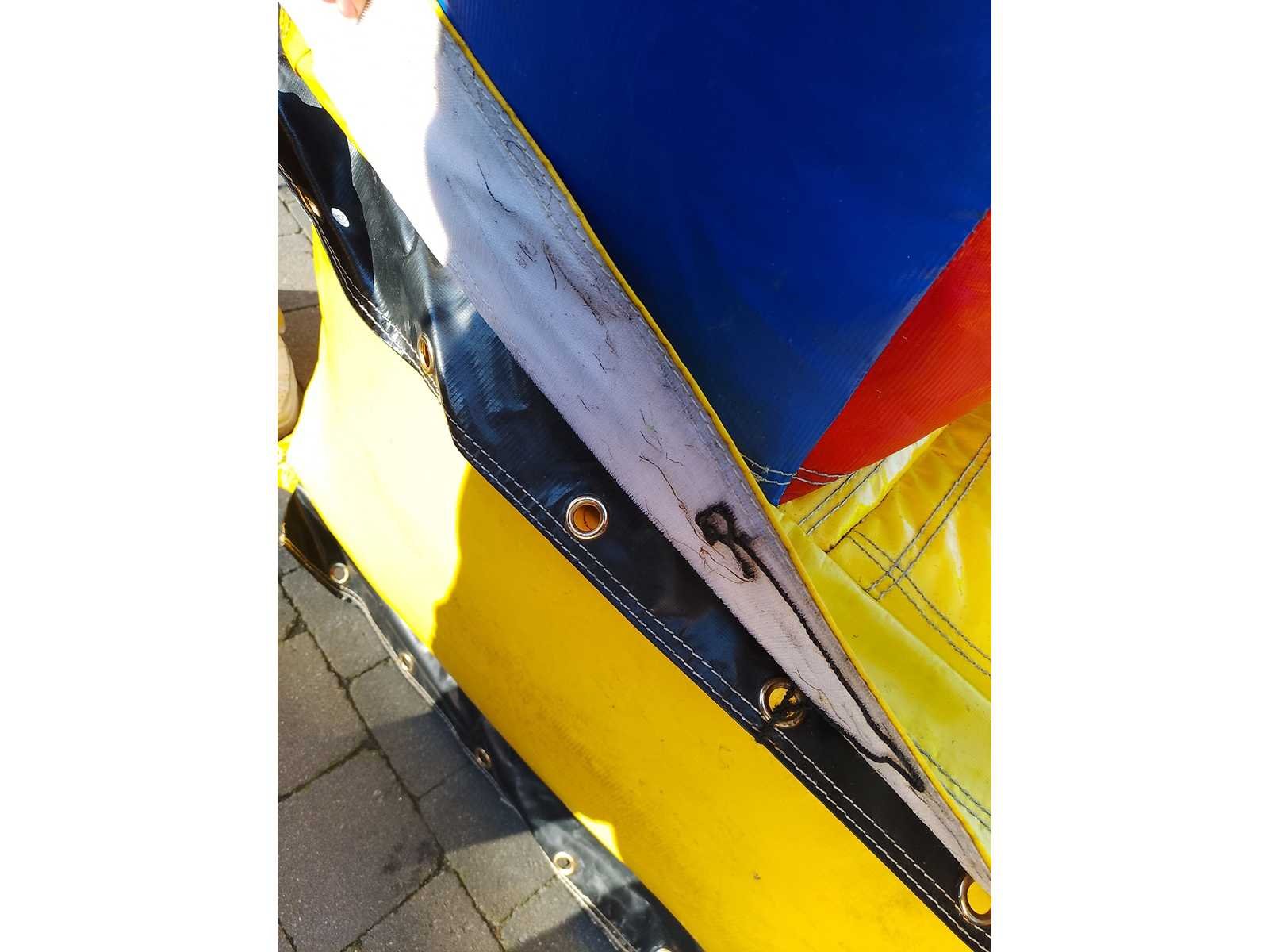 Deel hindernisbaan 'X-bocht' met gebruiksporen en zonder blazer. Afmetingen 5,3 x 5,3 x2 No