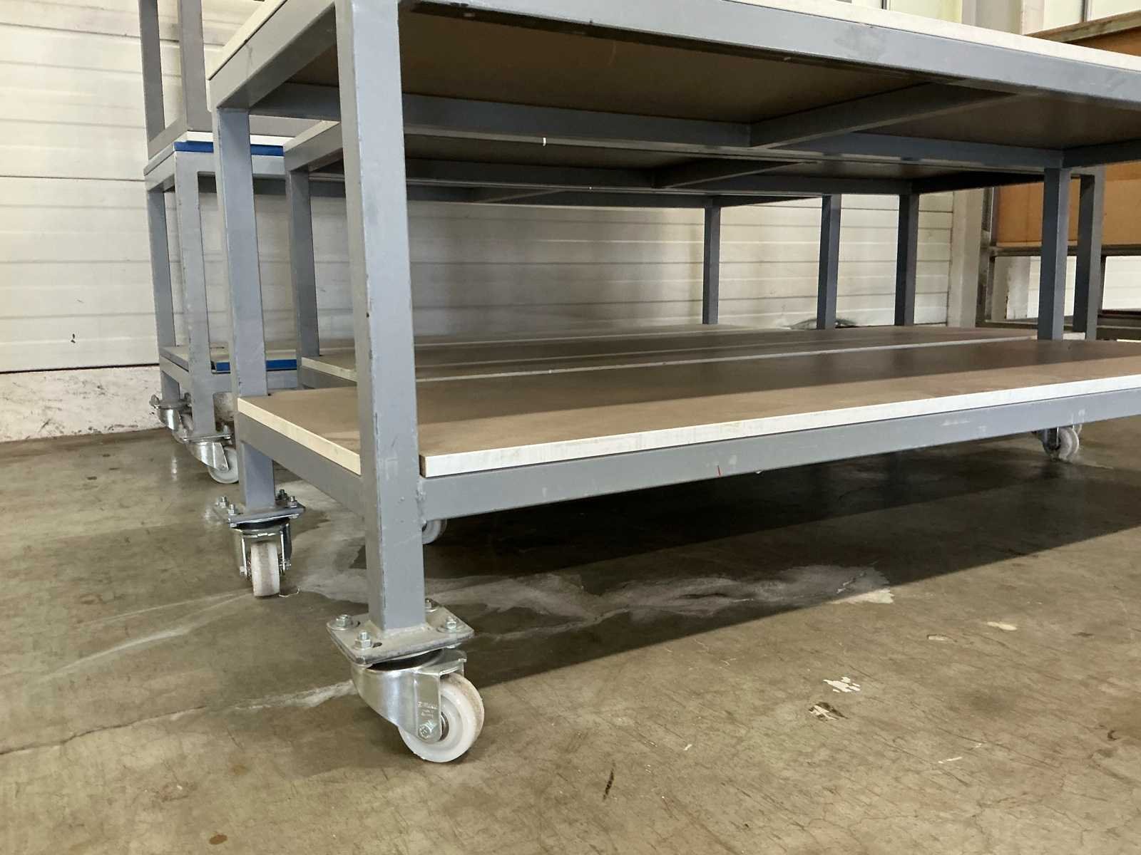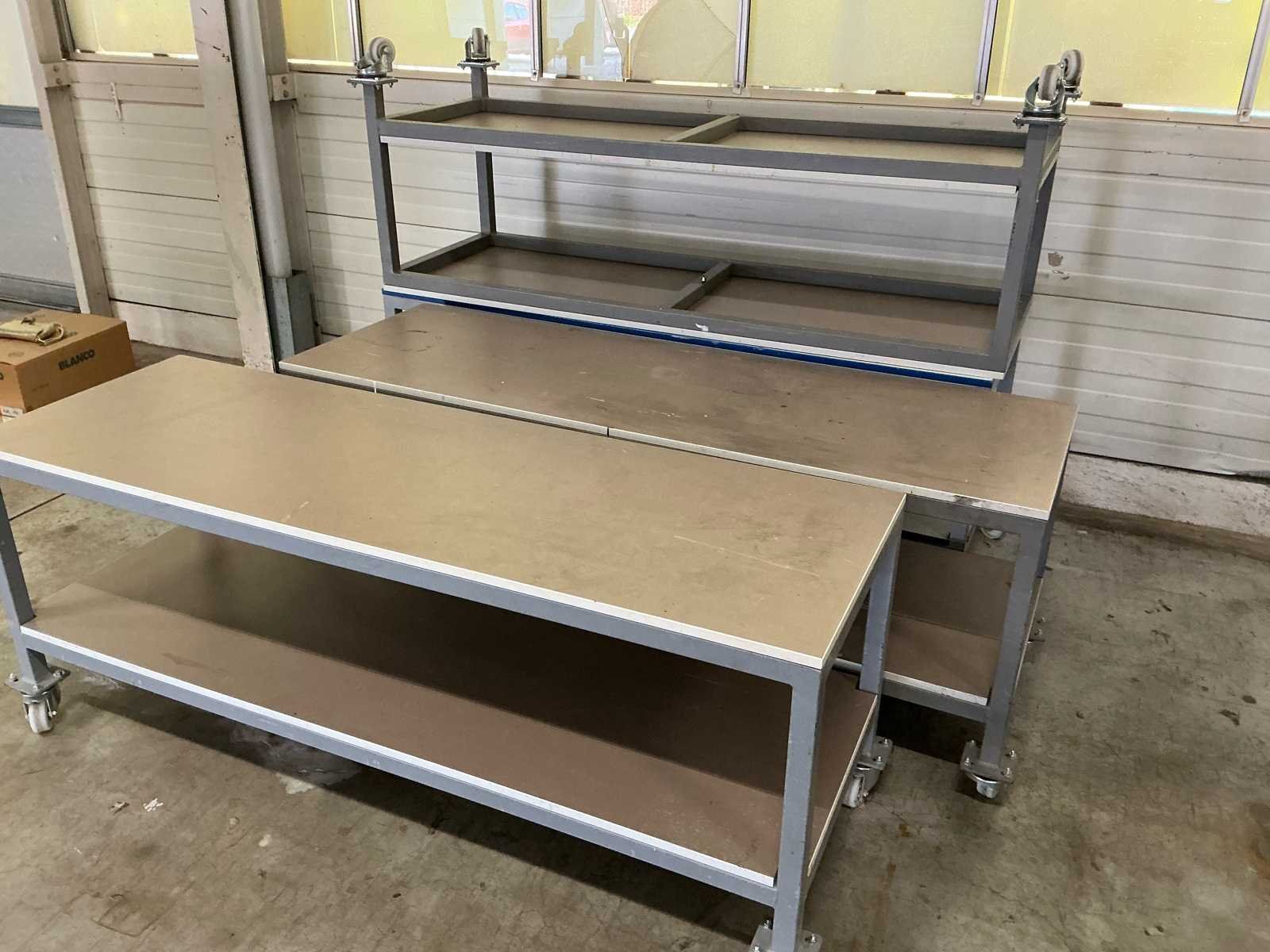 Totale hoogte die is opgegeven is inclusief wielen. 3x bruin tablet, 1x wit tablet. No Afmeting l: 1800mm Afmeting b: 600mm Afmeting h: 700mm