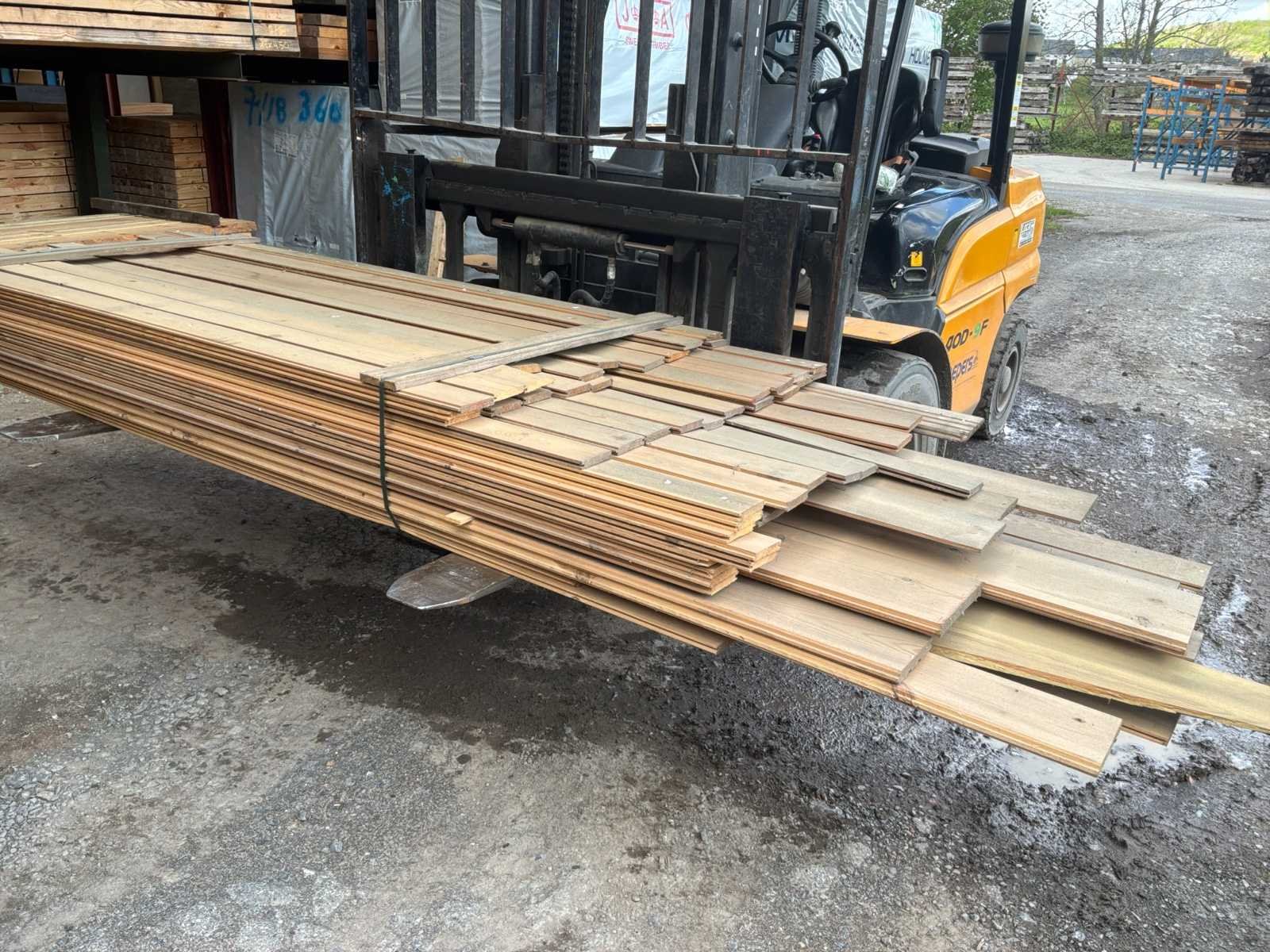 Vloer/Gevelbekleding (Noordelijke rode spar) - 3/4 x 13 : 2x 180 3 x 210 8 x 240 = 176m 20 - 3/4 x13 : 9 x 270 + 1x300 + 6x 330 = 6m30 - 4/4 x15 : 1 x 300 6m30 - 4x 4 x 15 behandeld: 4 x 270 + 4 x 240 = 20m40 - 4/4 x 23 : 1 x 300 + 8 x 240 27m 60 - Afgeschuinde airconditioningplaat 4/4 x 15: 3 x 330 + 2 x 180 + 7x 210 + 2 x 150 + 3 x 240 = 37m50 - 3/4 x 10 verdieping: 16 x 270 + 14 x 240 + 17 x 210 = 112m 50 No