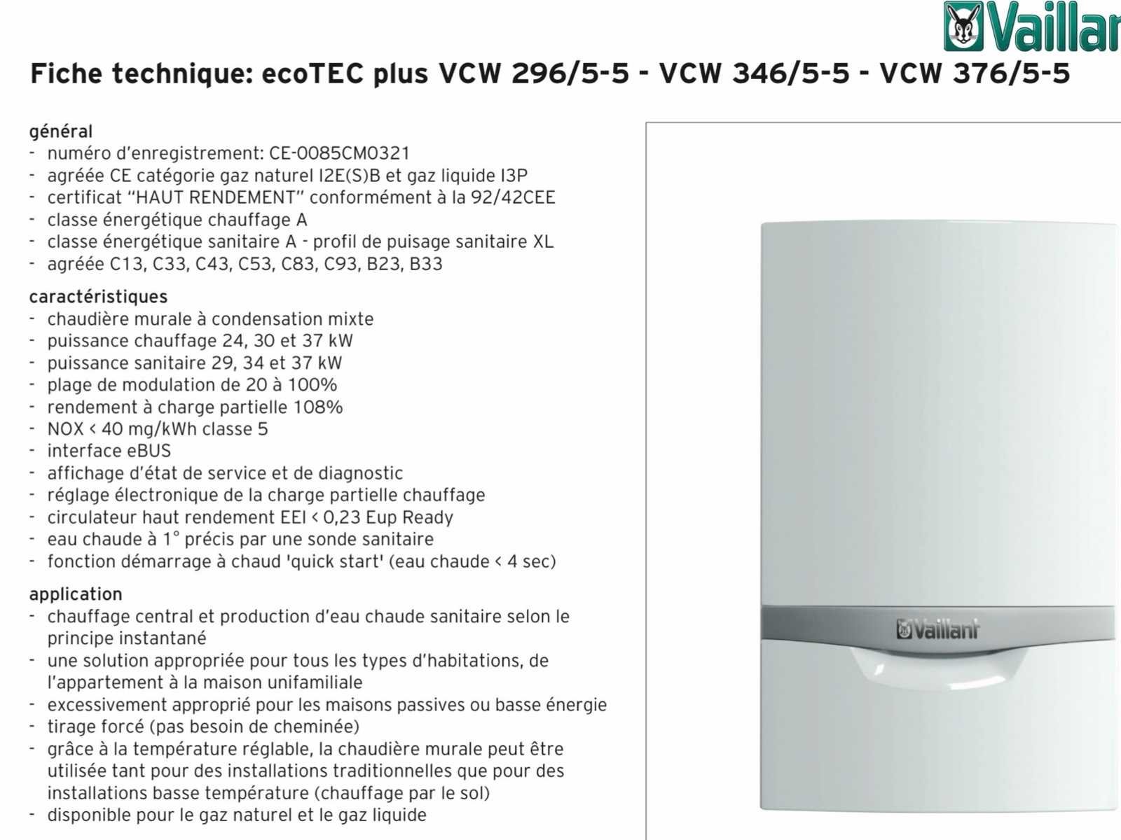 Muurgemonteerde condenserende gasketel + DHW ECOTEC + VCW296 VAILLANT 5,7-27,0KW ERP No