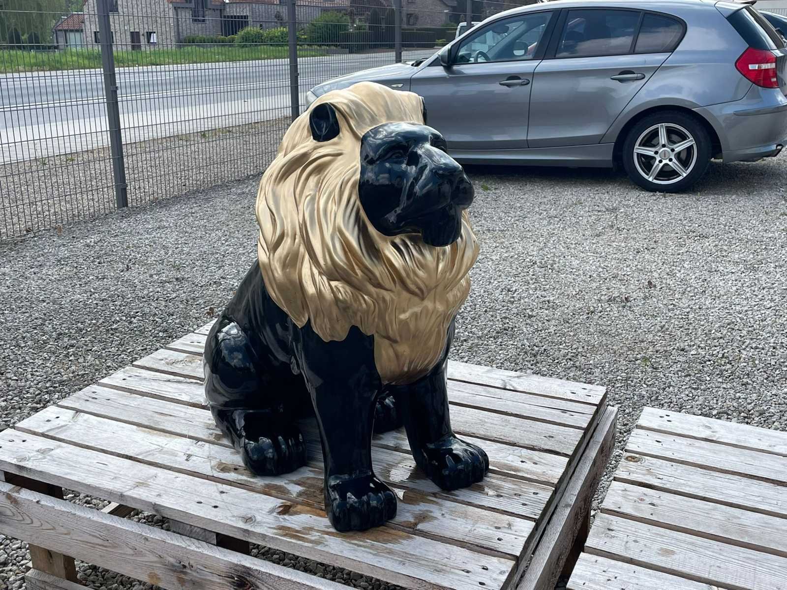 Leeuw zit h70cm zwart/goud