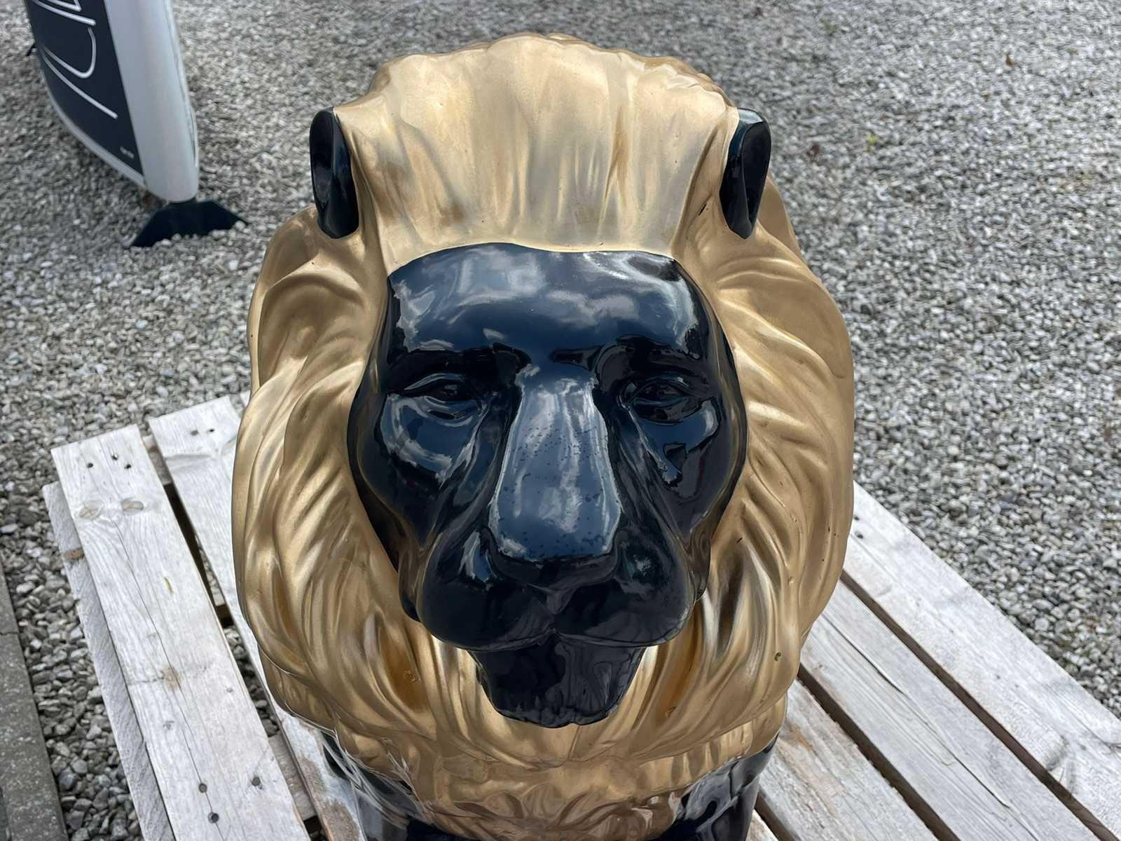 Leeuw zit H70cm Zwart/Goud Polyester / Polystone Stockverkoop wegens stopzetting activiteiten!!! No Hoogte: 70 Materiaal: Polyester Leveringsvoorwaarden: Niet gefundeerd - onverpakt