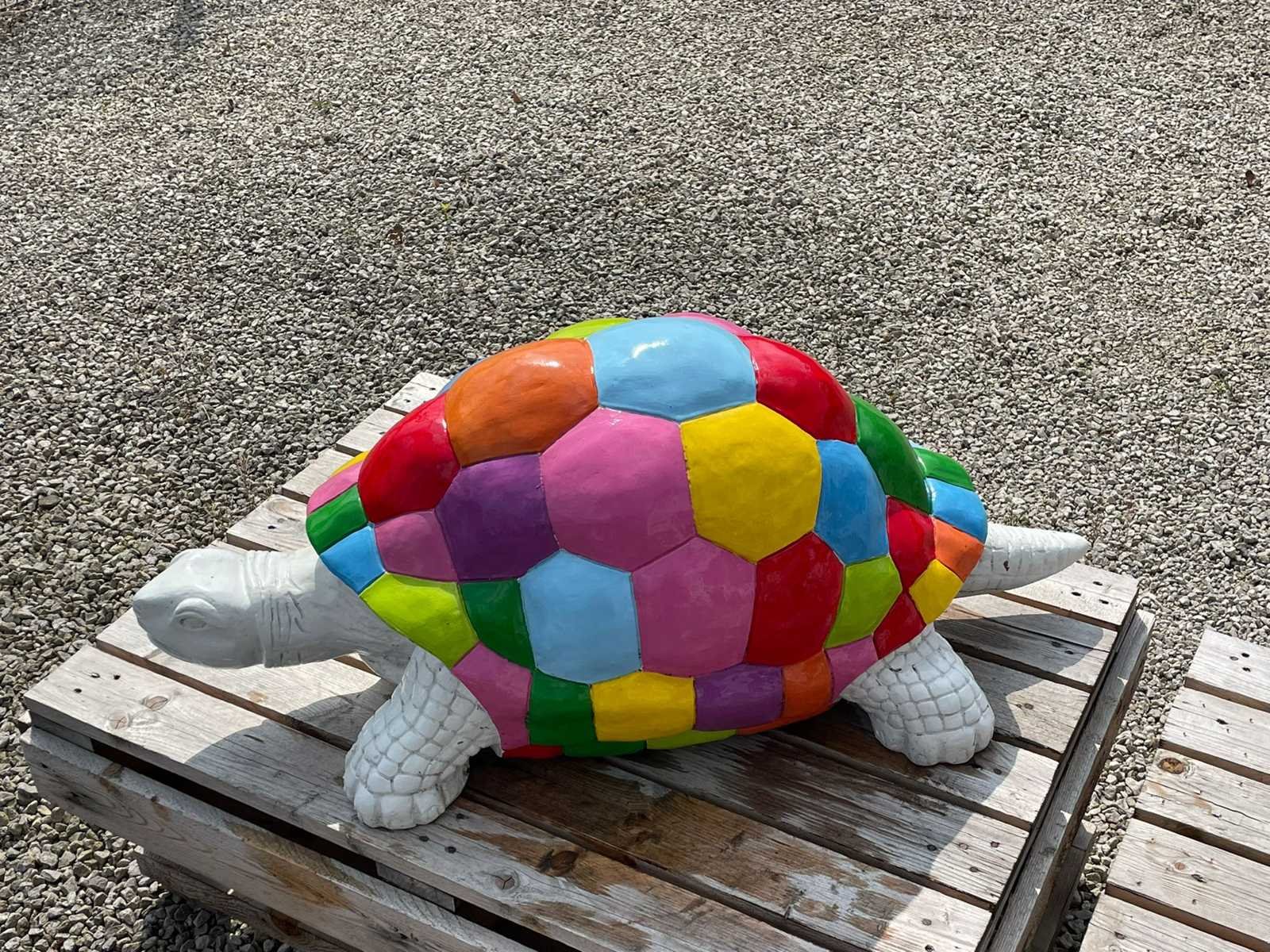 Schildpad Multicolor H48cm x L110cm Polyester / Polystone Stockverkoop wegens stopzetting activiteiten!!! No Lengte: 110 Hoogte: 48 Materiaal: Polyester Leveringsvoorwaarden: Niet gefundeerd - onverpakt