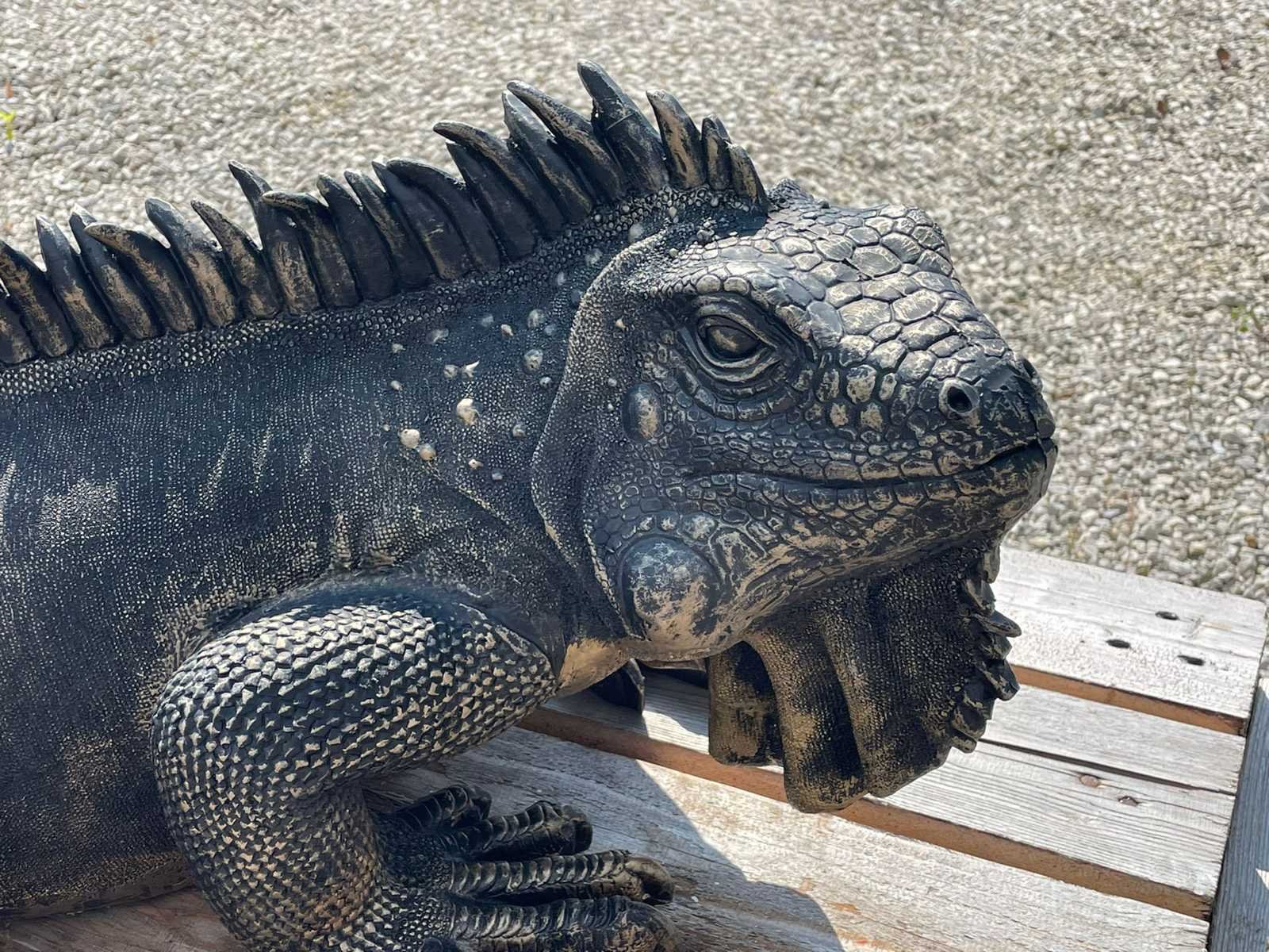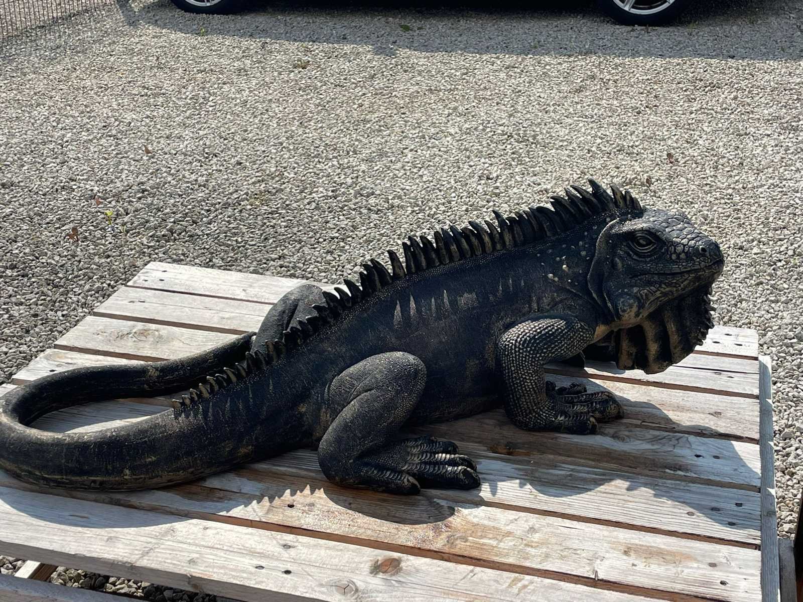 Leguaan H33cm x L100cm Polyester / Polystone Stockverkoop wegens stopzetting activiteiten!!! No Lengte: 80 Hoogte: 38 Materiaal: Polyester Leveringsvoorwaarden: Niet gefundeerd - onverpakt