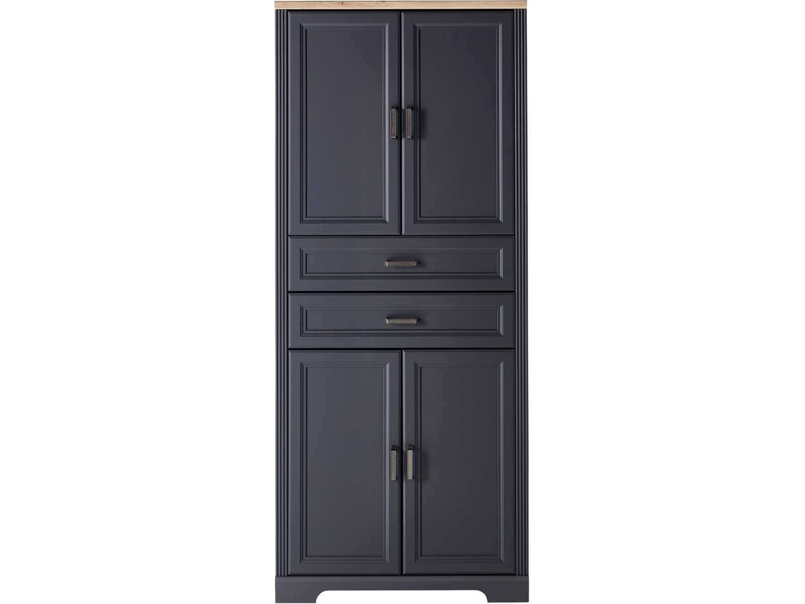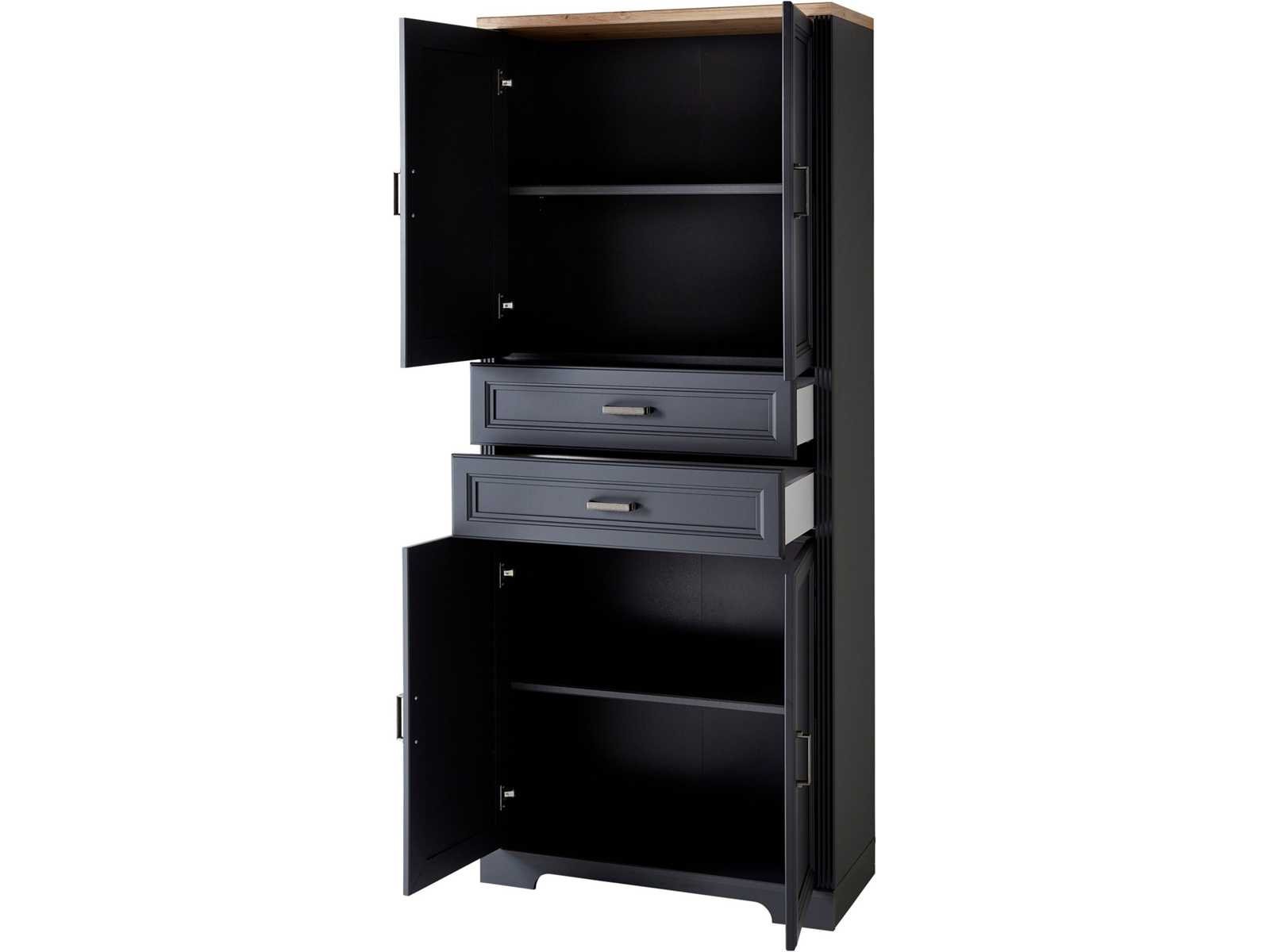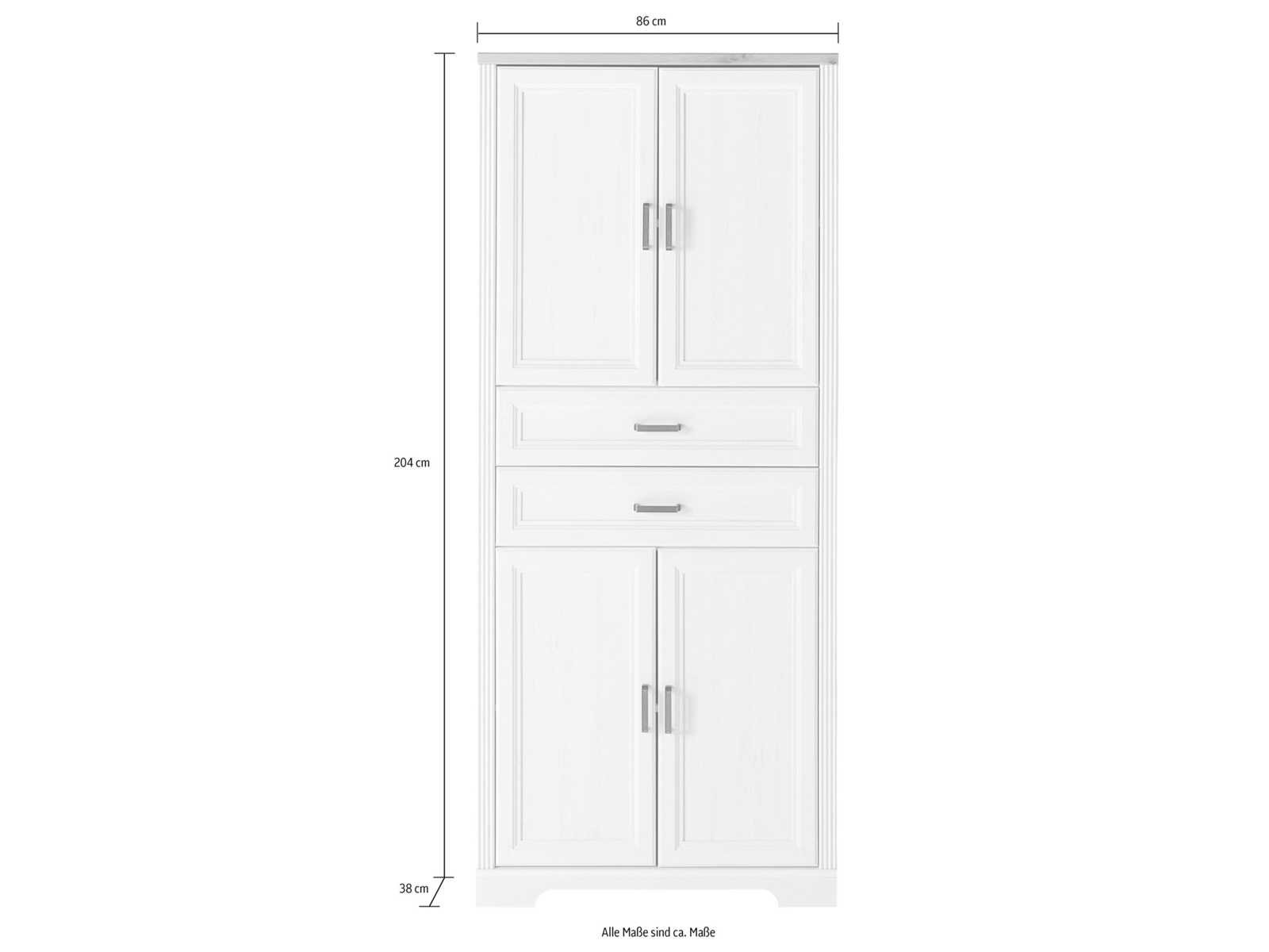 Kenmerken en functies Extract Type Gedeeltelijk Extract Aantal fragmenten 2 stukken. Aantal planken 2 stukken. Aantal lades 2 stukken. Aantal deuren 4 stuks. Aantal handvatten 6 stukken. Planktype Losjes Glider Art Feet Type handvatten Handvat Lade-uitbreiding Type Gedeeltelijke Extractie Type scharnierende deurdeuren ABS-beschermranden van apparatuur , zacht-sluitende lades, Zachte deuren Maatregelen Breedte 86 cm diepte 38 cm Hoogte 204 cm Gewicht 74 kg Maximale laadcapaciteit 31 kg Brede planken 82 cm Diepe planken 33 cm Maximale laadcapaciteit van planken 7 kg Binnenste breedte van de lade 73 cm Ladediepte (binnendimensioneel) 28 cm Ladeinterieurhoogte Afmetingen: 9 cm Non
