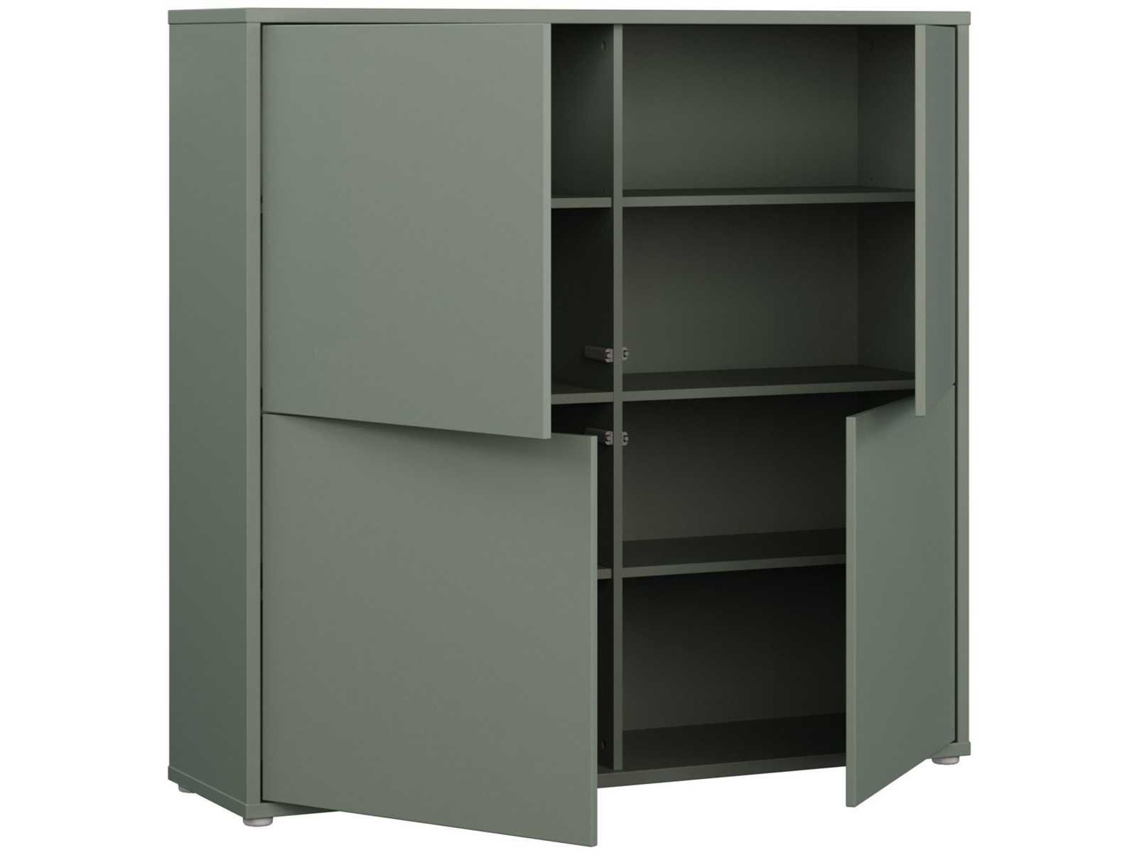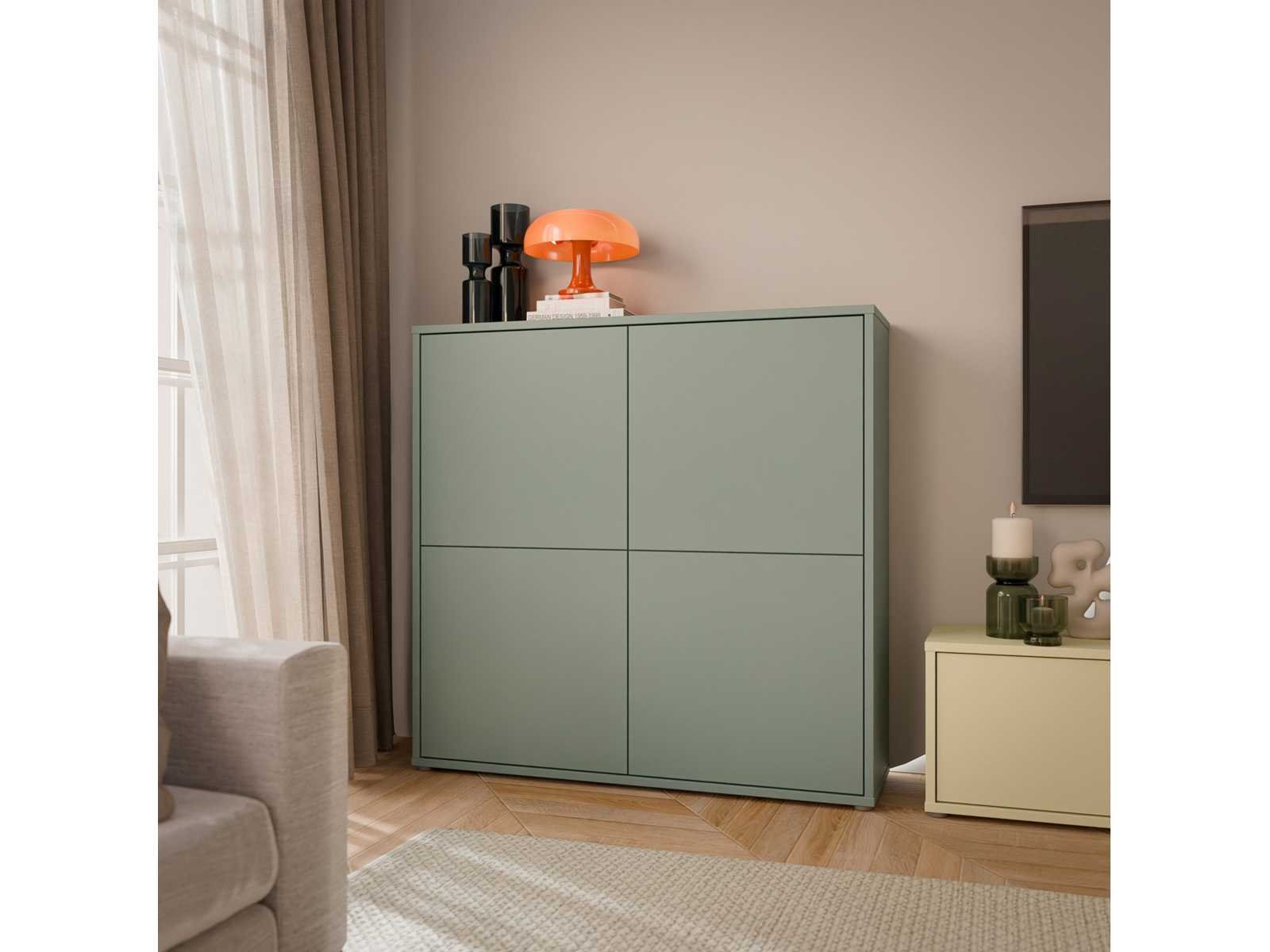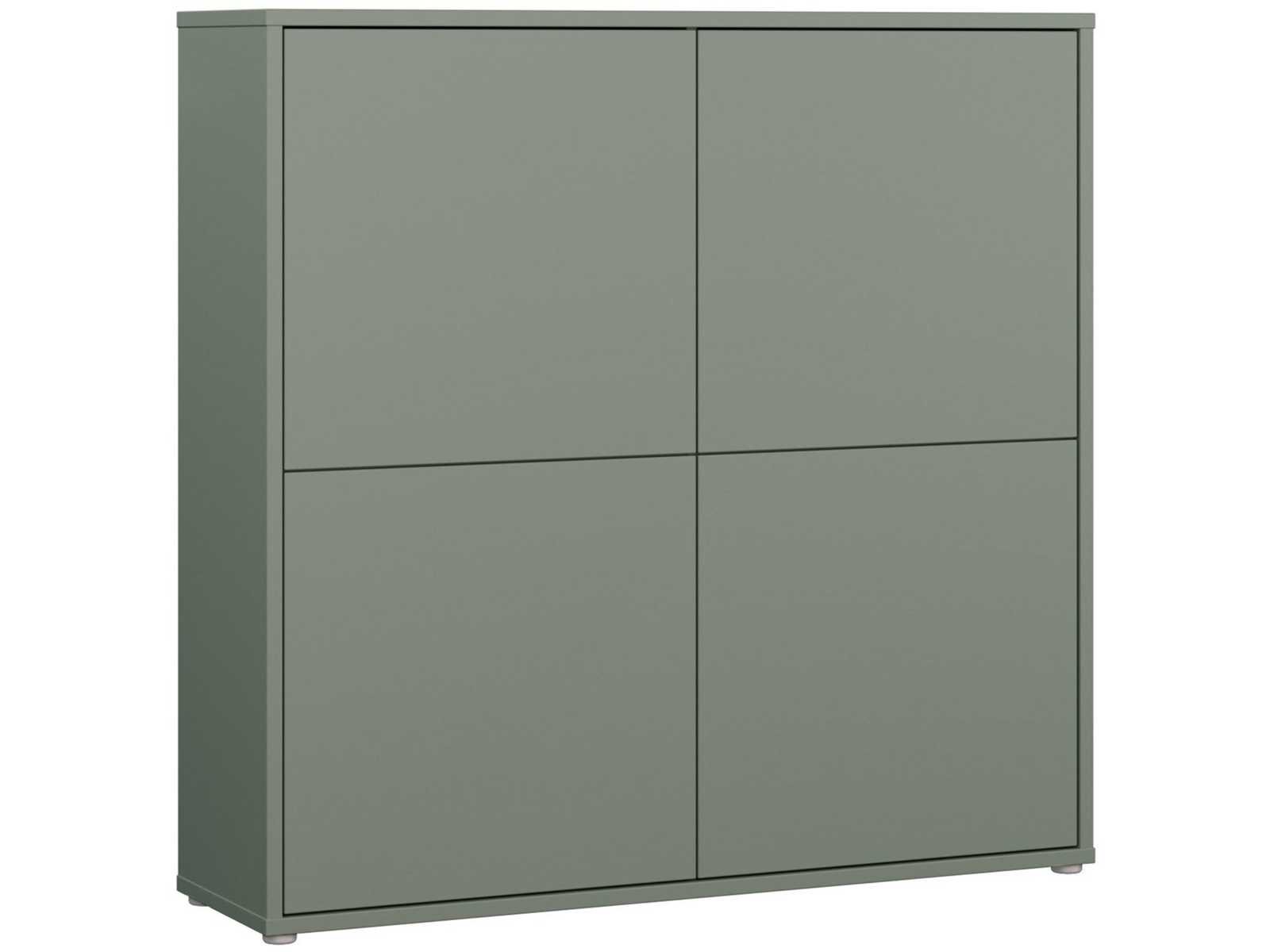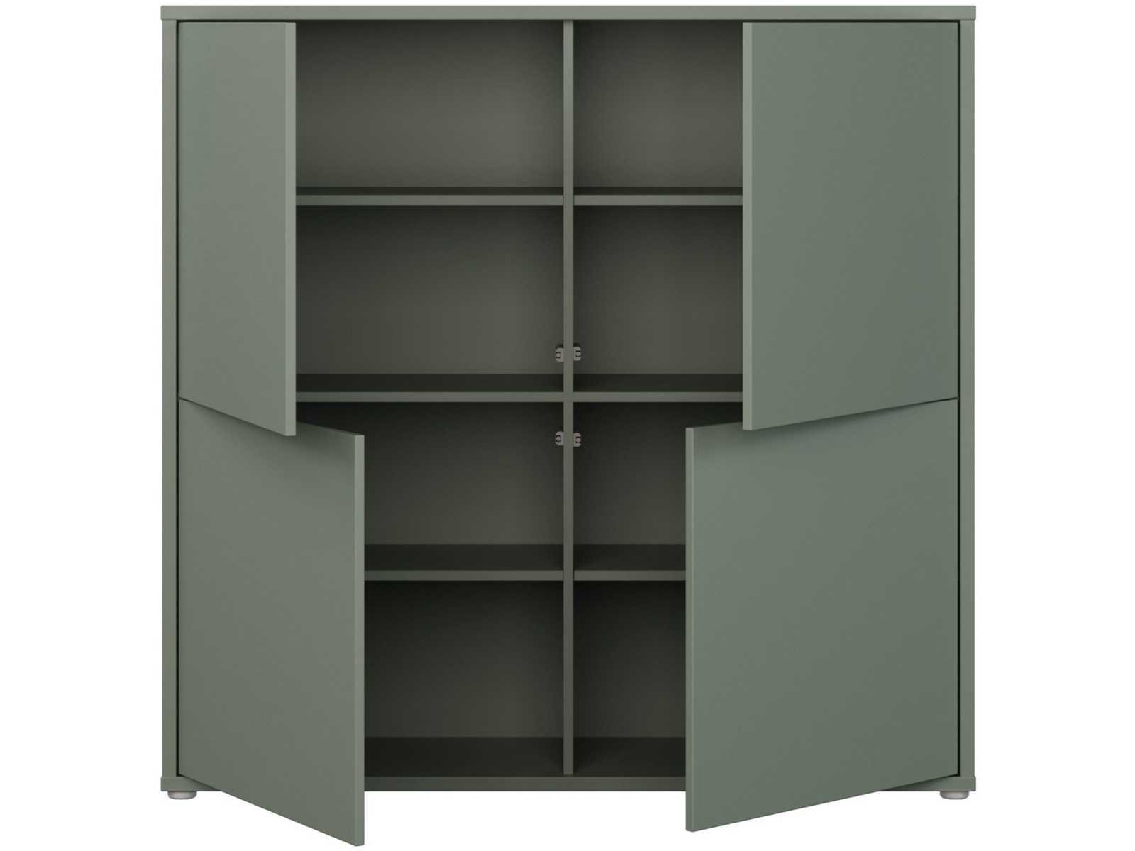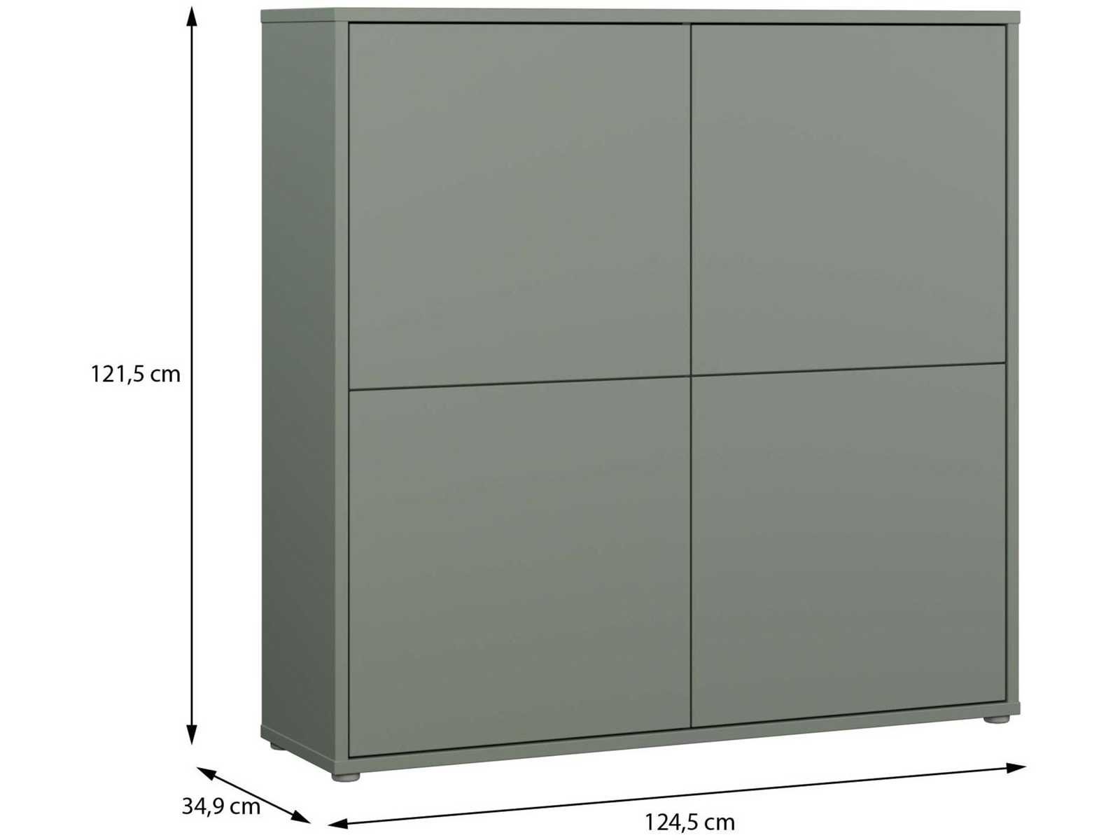 Met zijn vier grote deuren zonder handvat maakt dit meubelstuk indruk met zijn strakke, minimalistische ontwerp. Dankzij de één-aan-druk openfunctie kunnen de deuren gemakkelijk en comfortabel worden geopend. Achter de deuren zorgen grote planken voor voldoende opbergruimte voor uw spullen. Dit maakt deze kast een veelzijdig en hoog aangeschreven meubelstuk, dat stijl en functionaliteit perfect combineert. Non