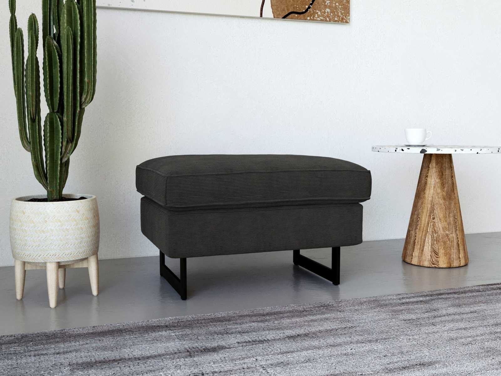 Bestoffeerde ottomaan - ribfluwel-antraciet