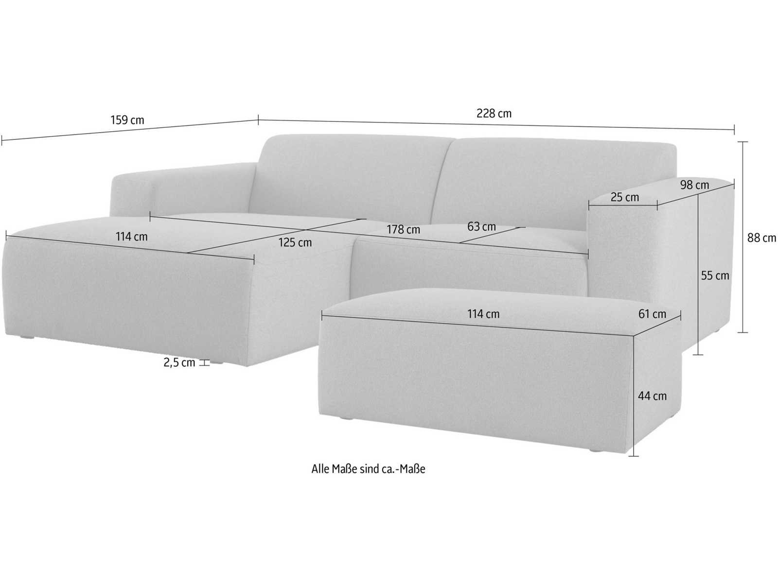 Met zijn royale afmetingen van 228 x 159 x 88 cm en een vrijstaand ontwerp biedt dit meubelstuk maximale flexibiliteit in uw leefruimte. Robuuste constructie met duurzame golfveervering – stabiele ondersteuning en langdurig zitcomfort Geniet van momenten van ontspanning op zachte en ruime stoelen – perfect om te ontspannen en je goed te voelen. Elke module is eenvoudig in elkaar te zetten – van vloer tot plafond, praktisch en direct klaar voor gebruik in uw huis. Non