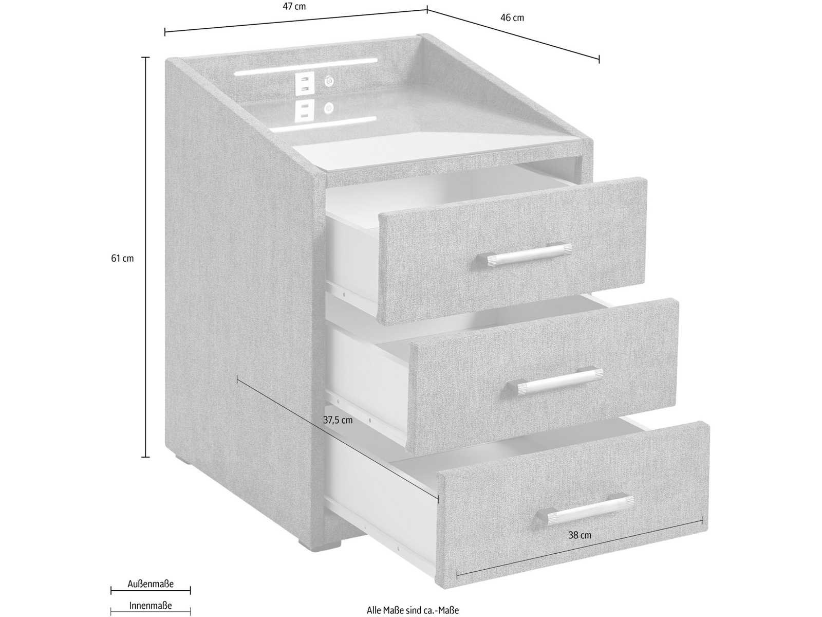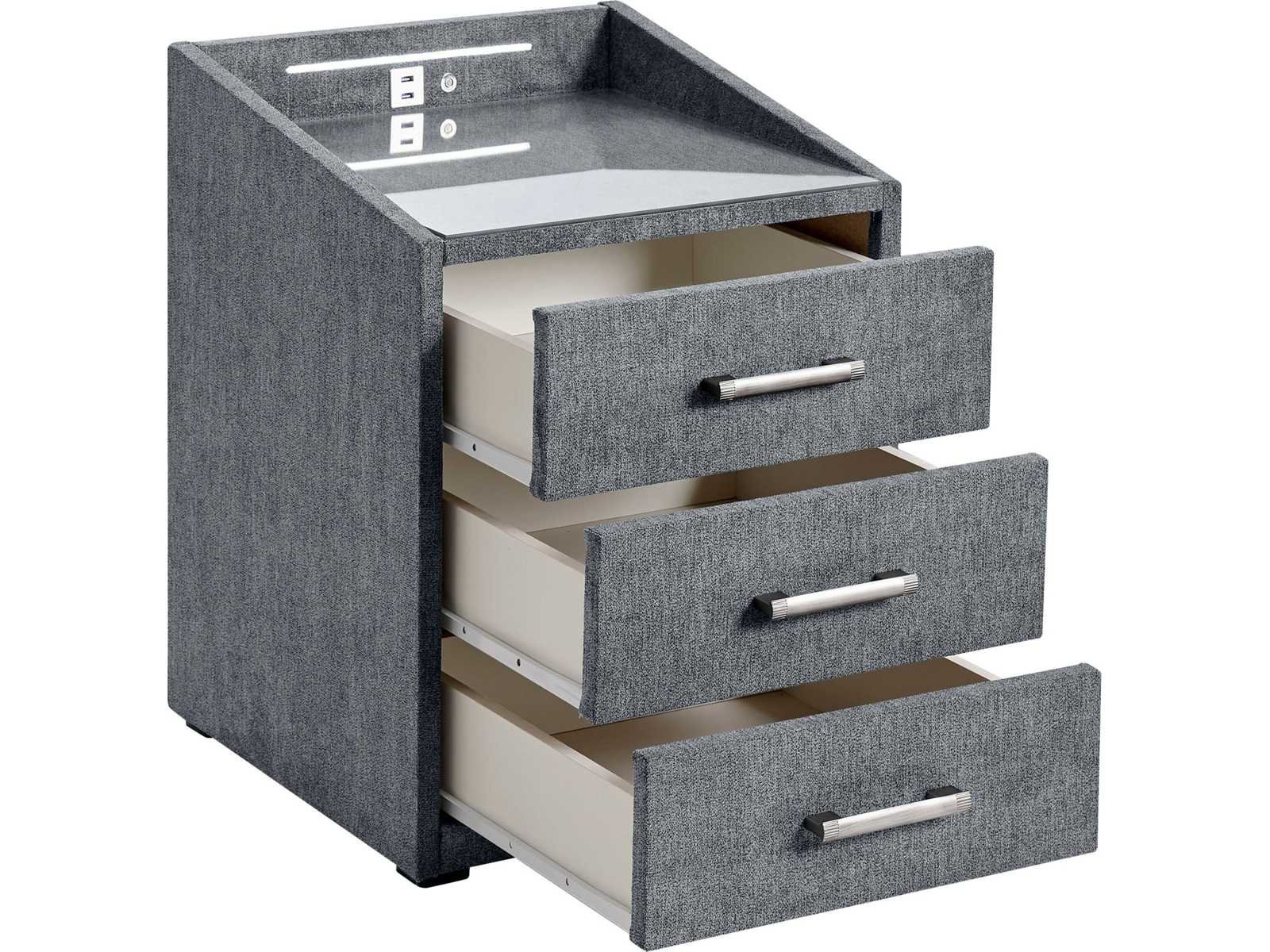 Hoogwaardige vakmanschap Inclusief LED-verlichting, USB-poort en USB-C-poort inclusief drie lades inclusief een glazen plaat Waterafstotend "Salvador" microfluweel Non