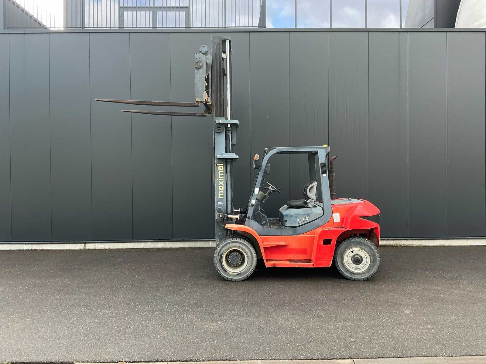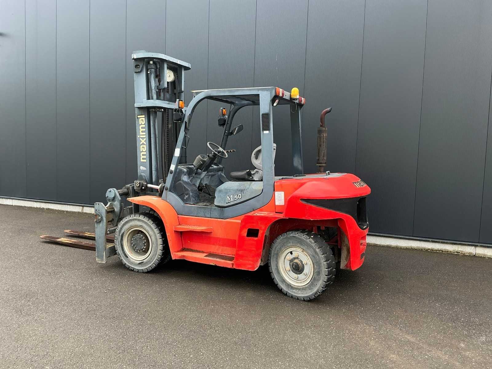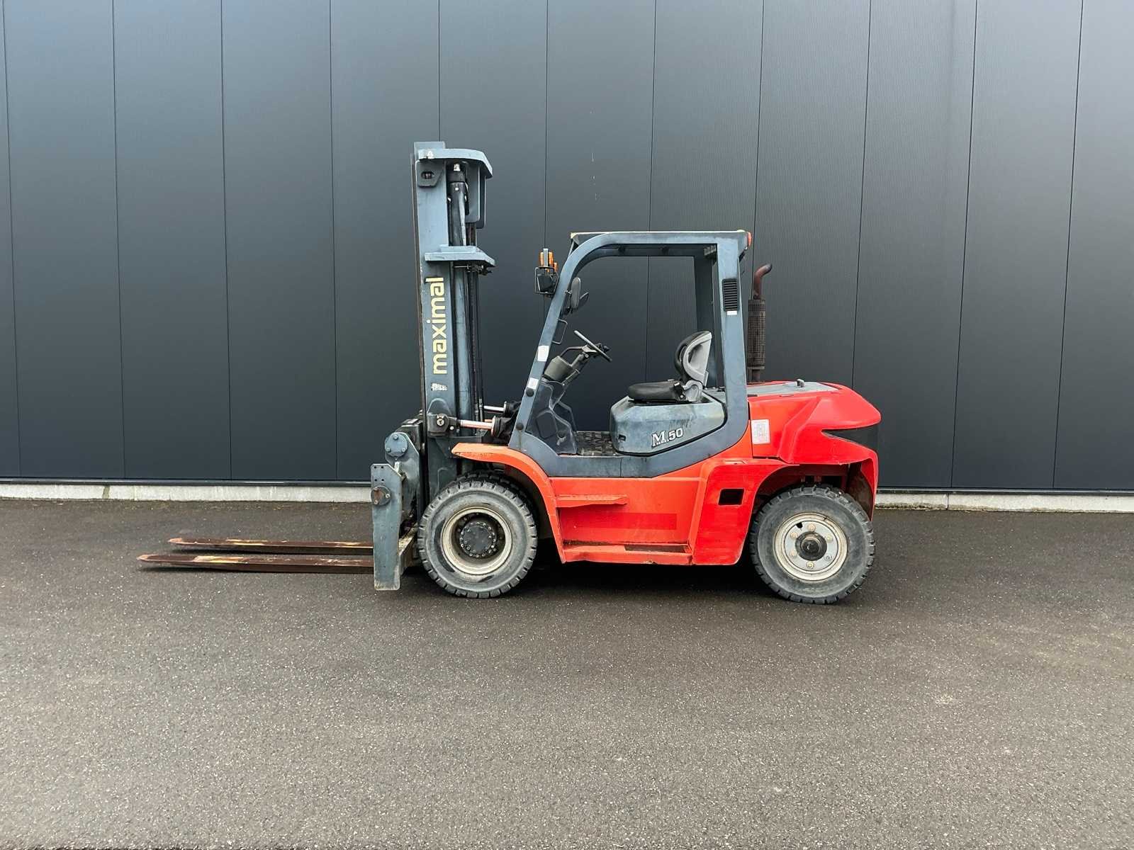 <Br> - Chassisnummer: G60S1700035. - Vermogen: 63,9kW. - leave factory nr: 1705001085. - Gebruikssporen. Nee Merk: Maximal Type: FD50T-MWJ3 Brandstof: Diesel Aantal wielen: 4 Afgelezen urenstand: 886 Side-shift: true Hydraulisch verstelbare lepels: true Duplex mast: true Eigen gewicht: 8818kg Hefvermogen: 5000kg Lepellengte: 1800mm Max. hefhoogte: 4000mm Minimale doorrijhoogte: 3080mm