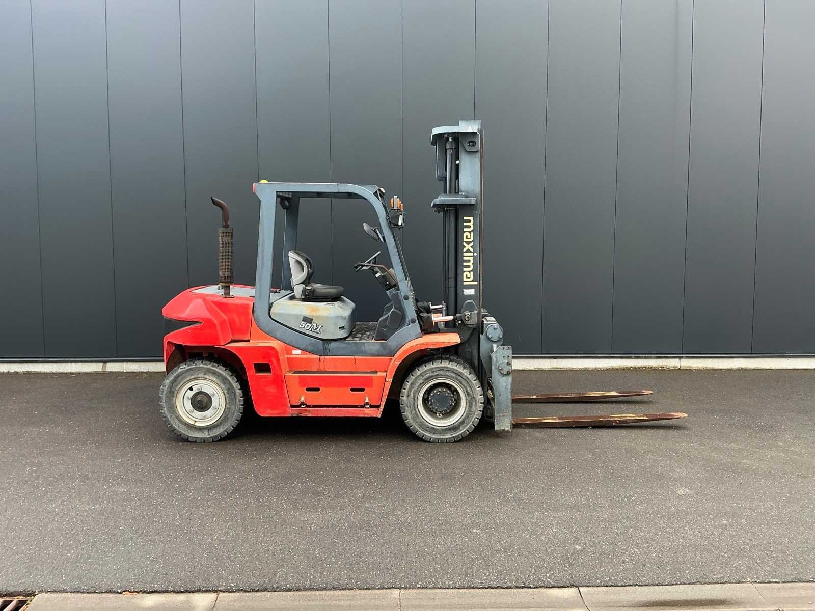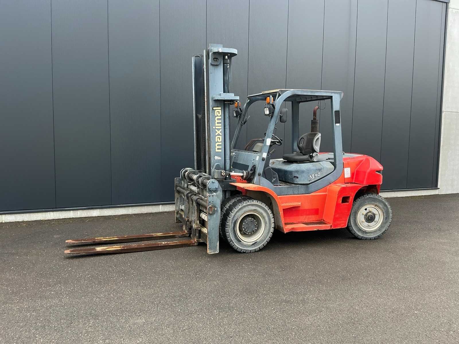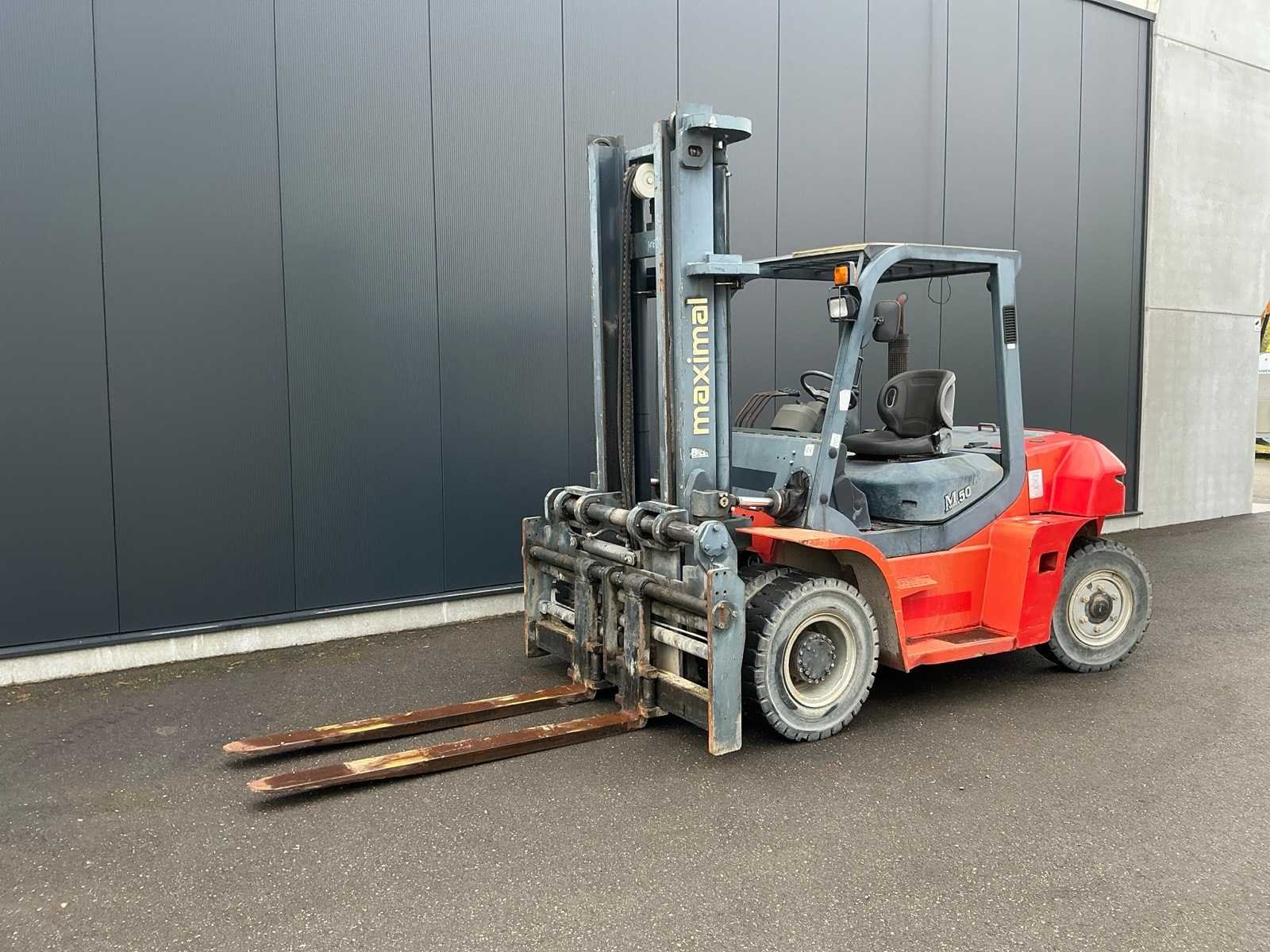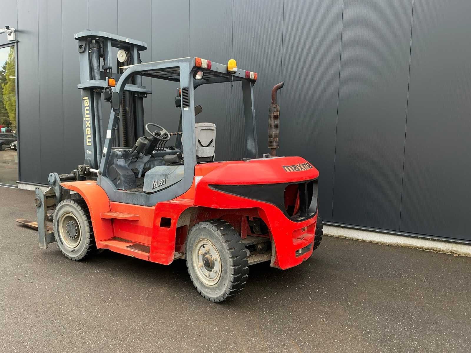 <Br> - Chassisnummer: G60S1700035. - Vermogen: 63,9kW. - leave factory nr: 1705001085. - Gebruikssporen. Nee Merk: Maximal Type: FD50T-MWJ3 Brandstof: Diesel Aantal wielen: 4 Afgelezen urenstand: 886 Side-shift: true Hydraulisch verstelbare lepels: true Duplex mast: true Eigen gewicht: 8818kg Hefvermogen: 5000kg Lepellengte: 1800mm Max. hefhoogte: 4000mm Minimale doorrijhoogte: 3080mm