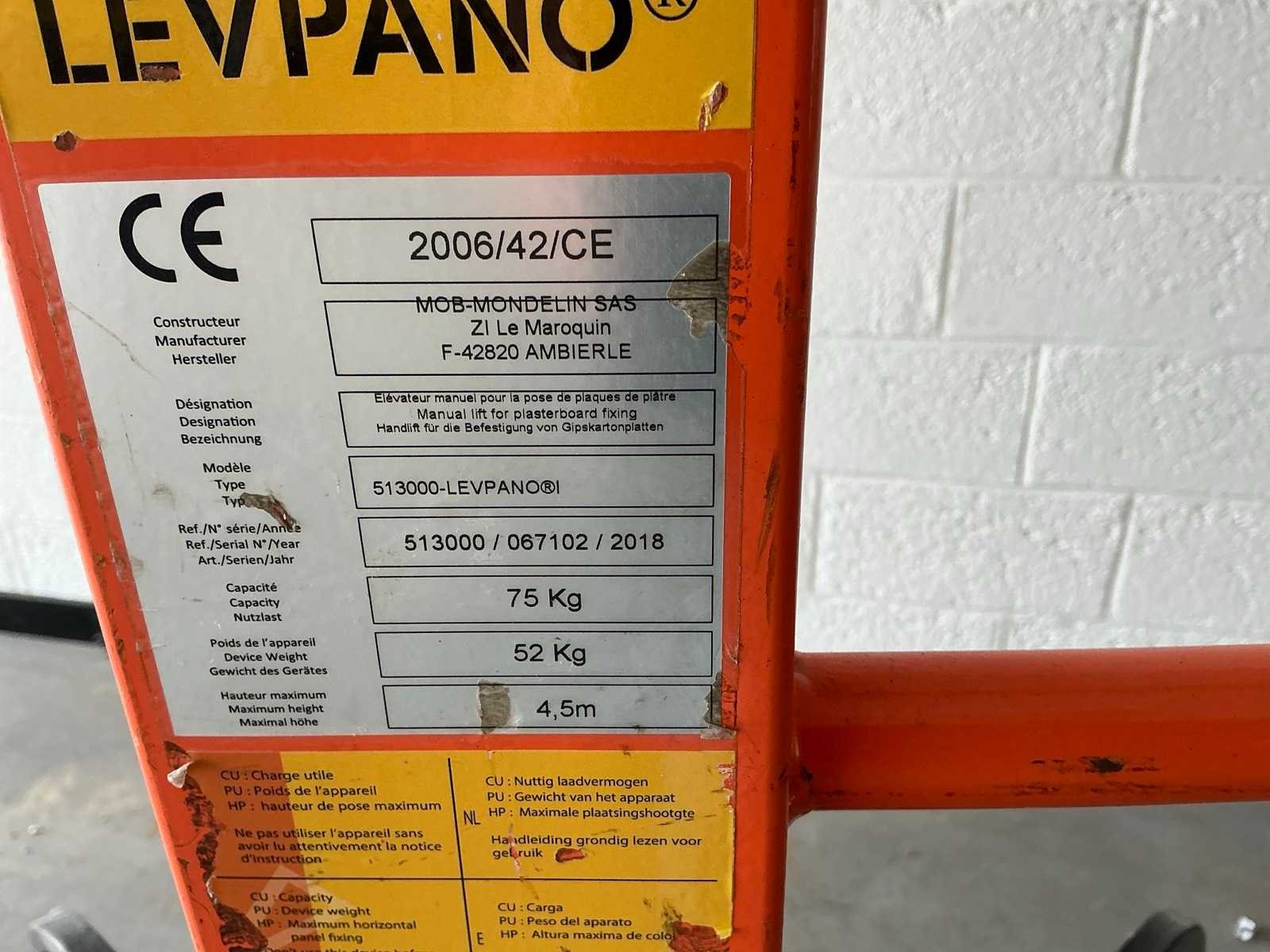 <Br> - Maximum hoogte: 4,5meter. Nee Merk: Mob-Mondelin sas Type: 513000-Levpano Bouwjaar: 2006 Max. belasting: 75kg