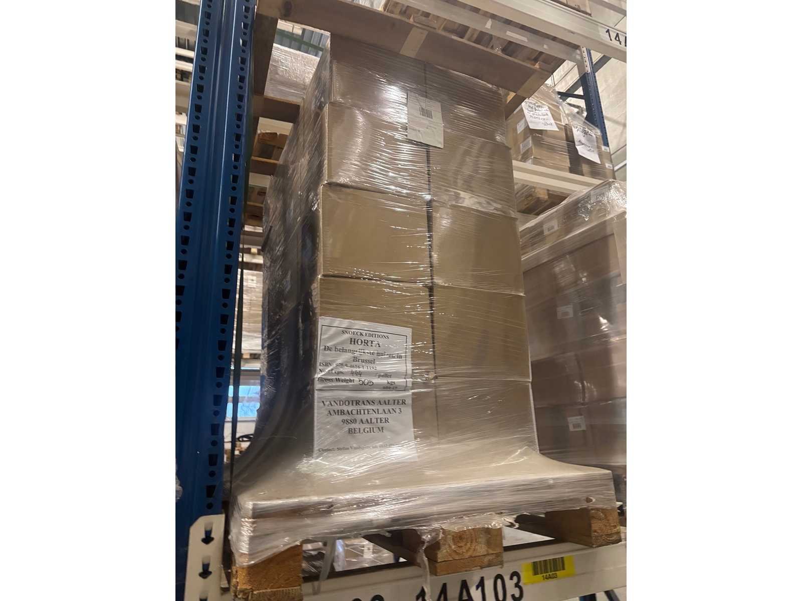 Plm. 51.700 diverse boeken non-fictie van uitgeverij Snoeck Uitgeverij NV, in meerdere talen wo. NL/FR/ENG volgens de gegevens in bijlage. Waaronder cultuur, kunstboeken, architectuur, geschiedenis, fotografie en onderwijs, Volledige lijst in PDF-formaat in bijlage. 22.250 boeken zijn fysiek geteld en geverifieerd, dit is aangegeven in kolom M van bijgevoegde lijst. De overige titels, 171 titels, geraamd op 29.450 stuks, zijn niet geverifieerd en geraamd op basis van de gemiddelde palletvoorraad. Verschillen zijn aanwezig, de voorraad wordt door de koper aanvaard in de hoeveelheden zoals geraamd, afwijkingen kunnen geen aanleiding geven tot compensatie. No