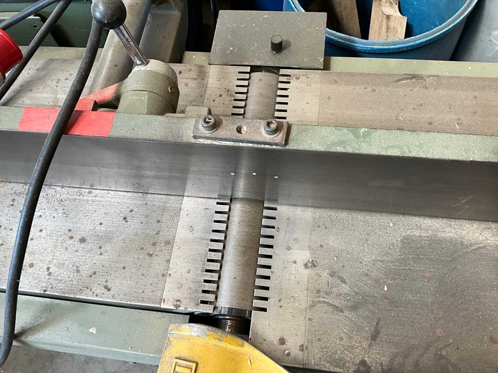 Voorzien van verstelbare geleider, mesbeveiliging, afzuigkap Nee Merk: Verboom Mesbreedte: 400mm Tafel afmeting l: 2500mm Tafel afmeting b: 450mm Aansluiting: 400V Afmeting l: 2600mm Afmeting b: 1200mm Afmeting h: 1100mm