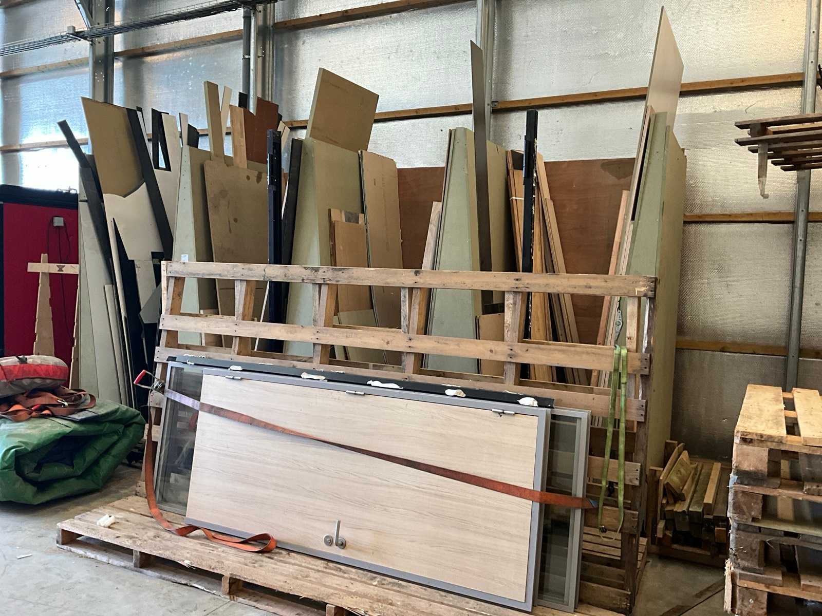 Bestaand uit MDF verticaal sorteer rek met inhoud diverse versneden plaatmateriaal, + pallet rek met inhoud deuren en ramen, +8x euro pallets Nee Lengte: 1200mm Breedte: 5000mm Hoogte: 2500mm