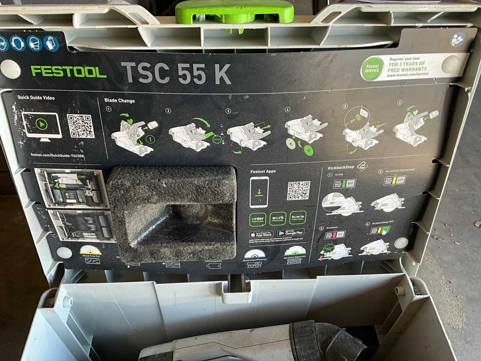 Geleiderail Festool ; FS1400/2 Nee Merk: Festool Type: TSC 55 KEB Serienummer: 40312156 Accuspanning: 18V Aantal accu's: 2 Geleiderail: true Met koffer: true