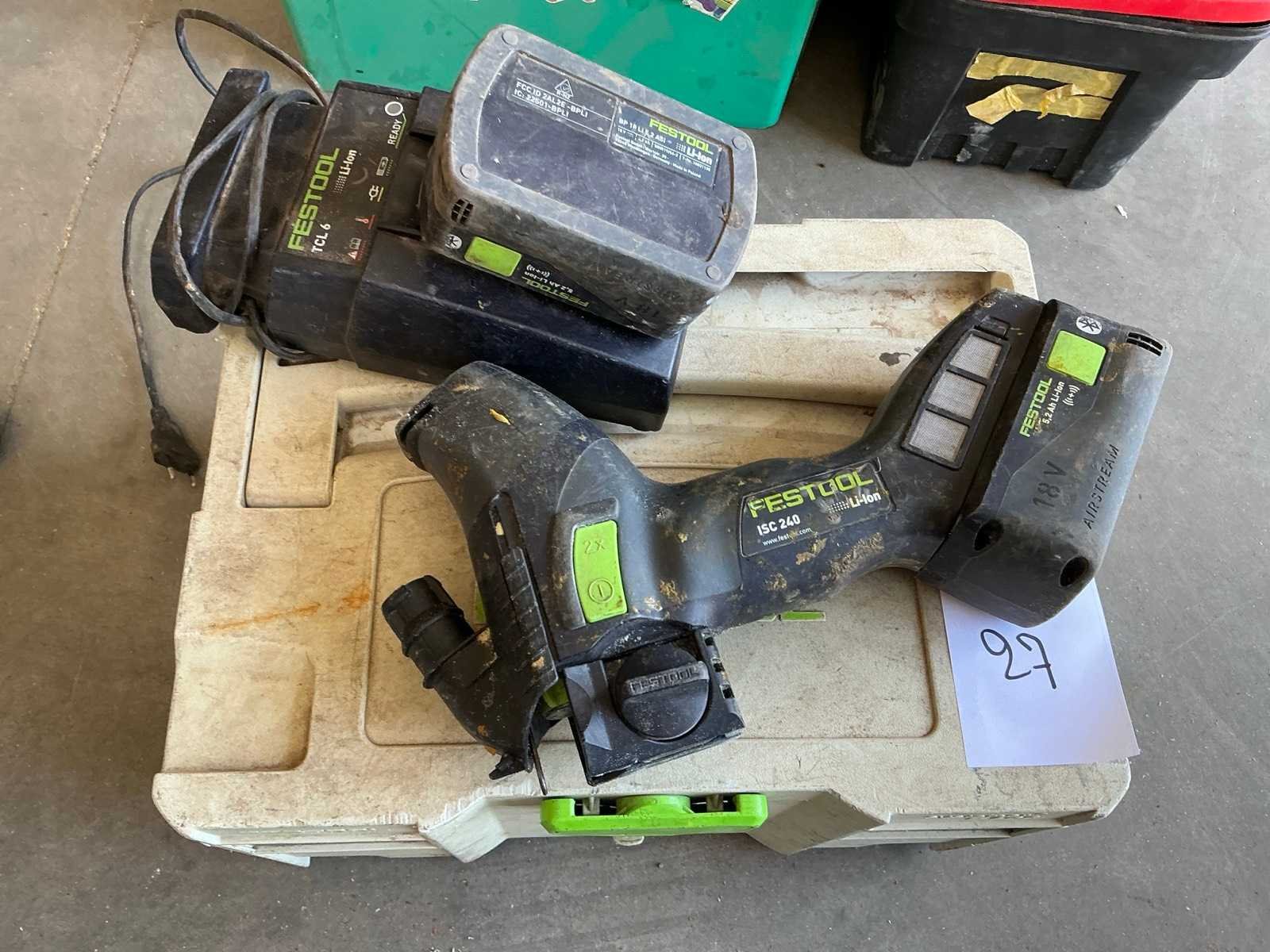 In pvc opbergkoffer Compleet met 2x accu en 1x batterijlader Nee Merk: Festool Type: ISC 240 Serienummer: 40099873