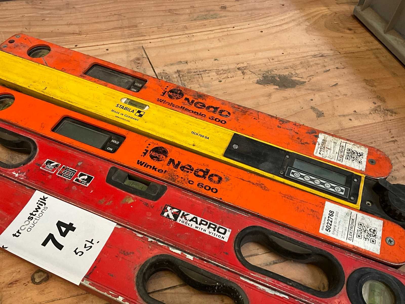 Bestaand uit 2x waterpas lengte 80+150 cm, +3x digitale hoekmeter Nedo+Stabila Nee