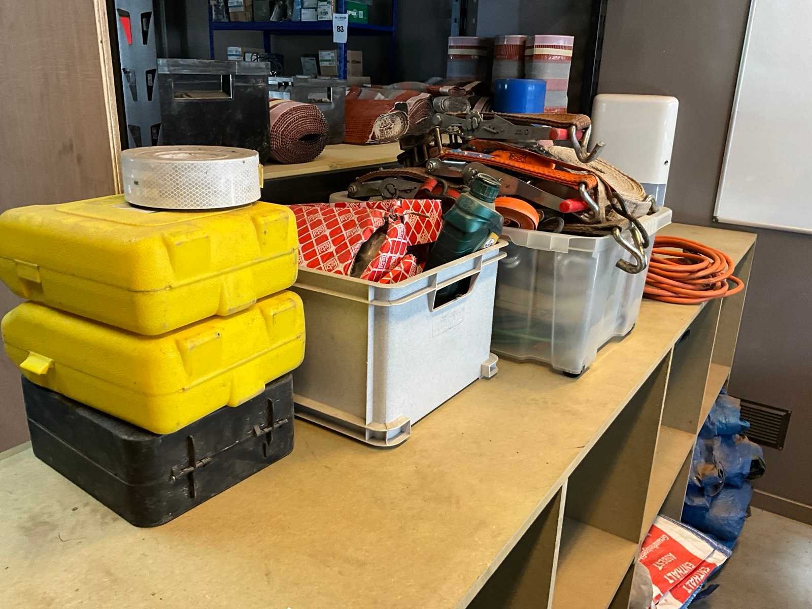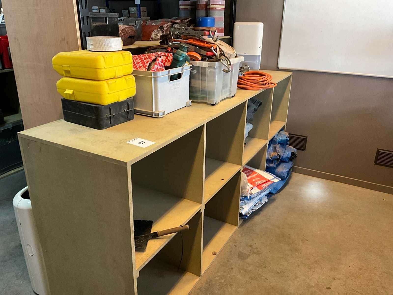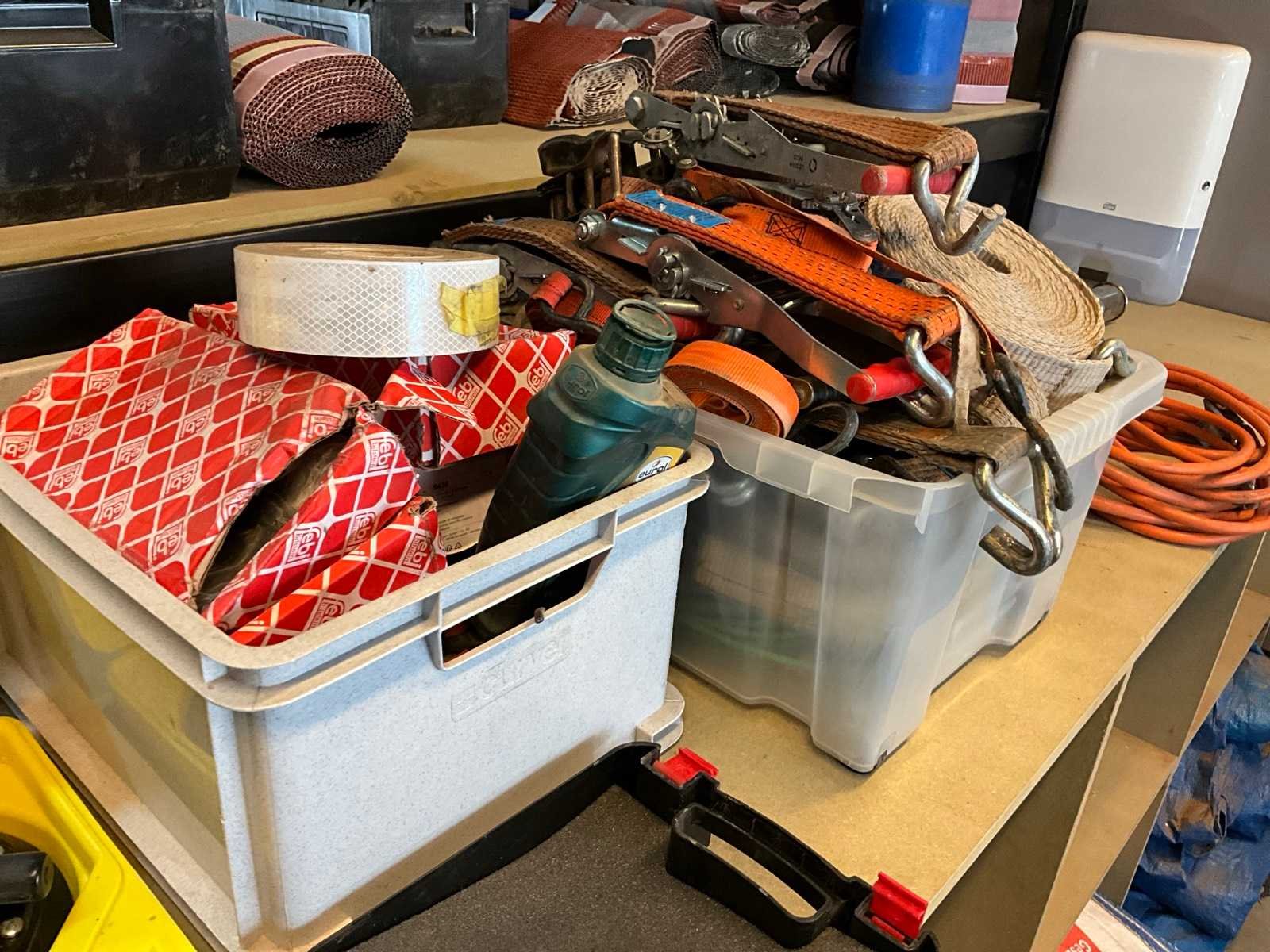 Inhoud houten vakkenrek bestaand uit 3x vacuüm glasheffer, pvc box met spanriemen, gasbrander voor roofing, big bag zakken, enz.. Nee Merk: Recta Vit-Soudal