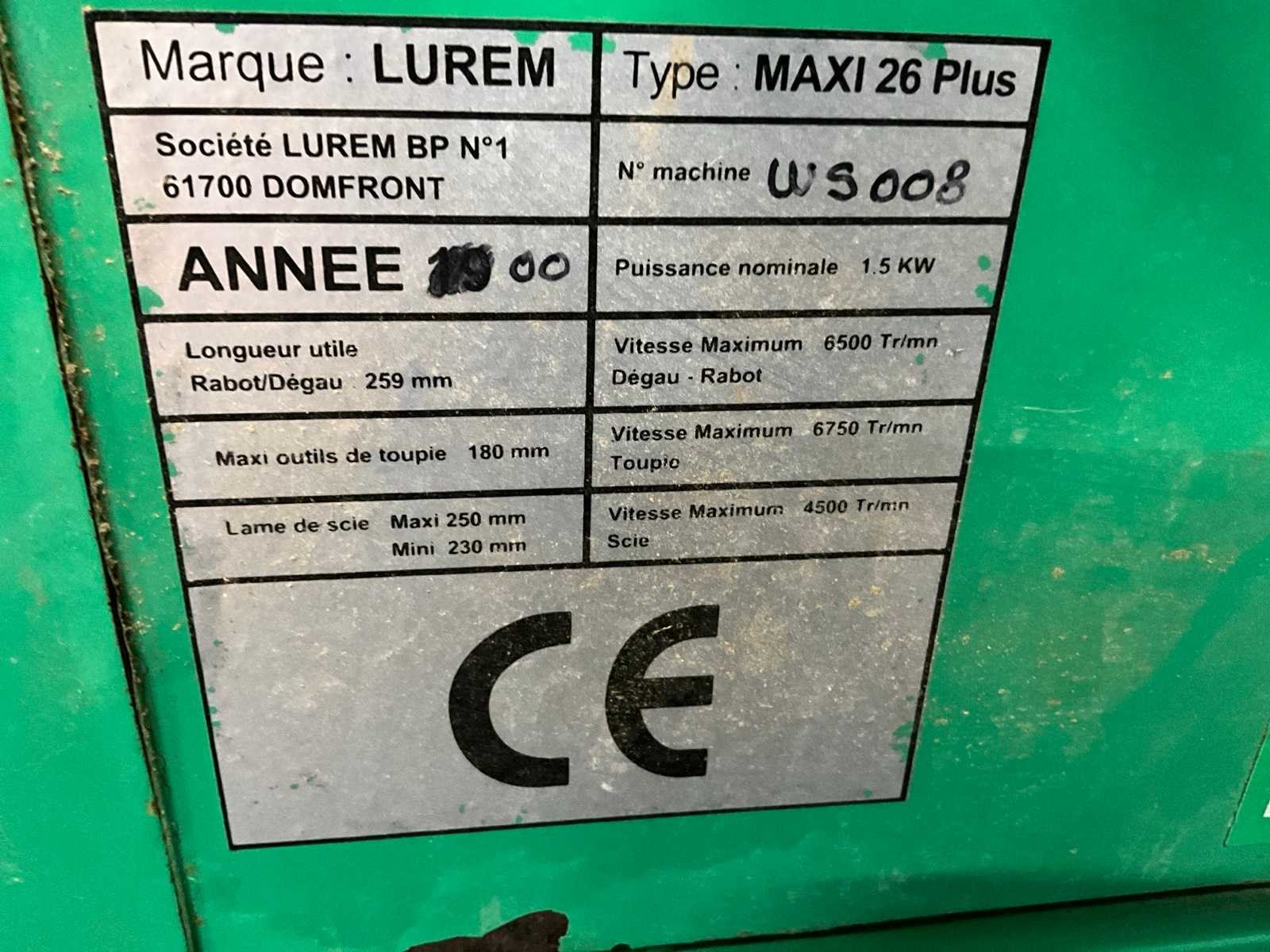 Voorzien van bijhorende tools, stofafzuiging, op pallet Nee Merk: Lurem Type: Maxi 26 plus Bouwjaar: 2000 Afmeting l: 1200mm Afmeting b: 800mm Afmeting h: 1100mm