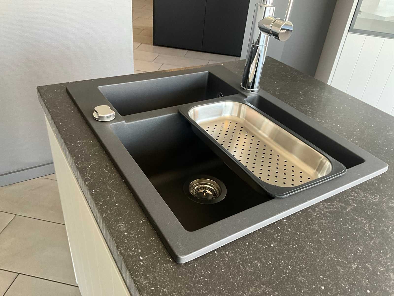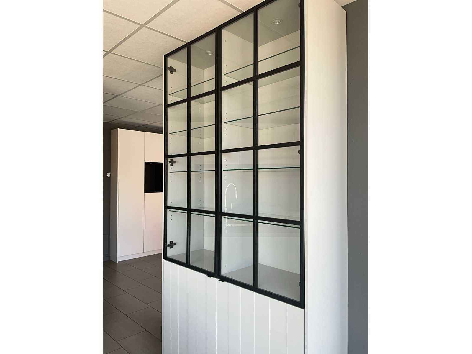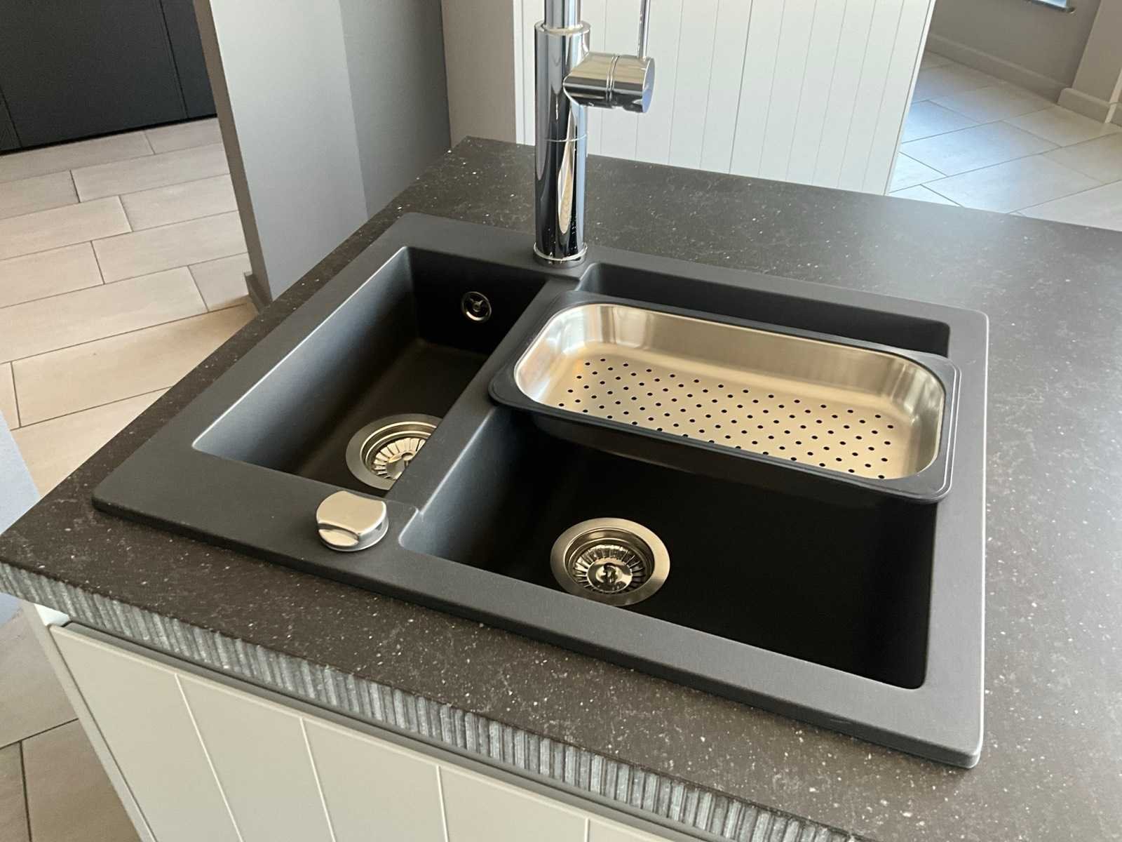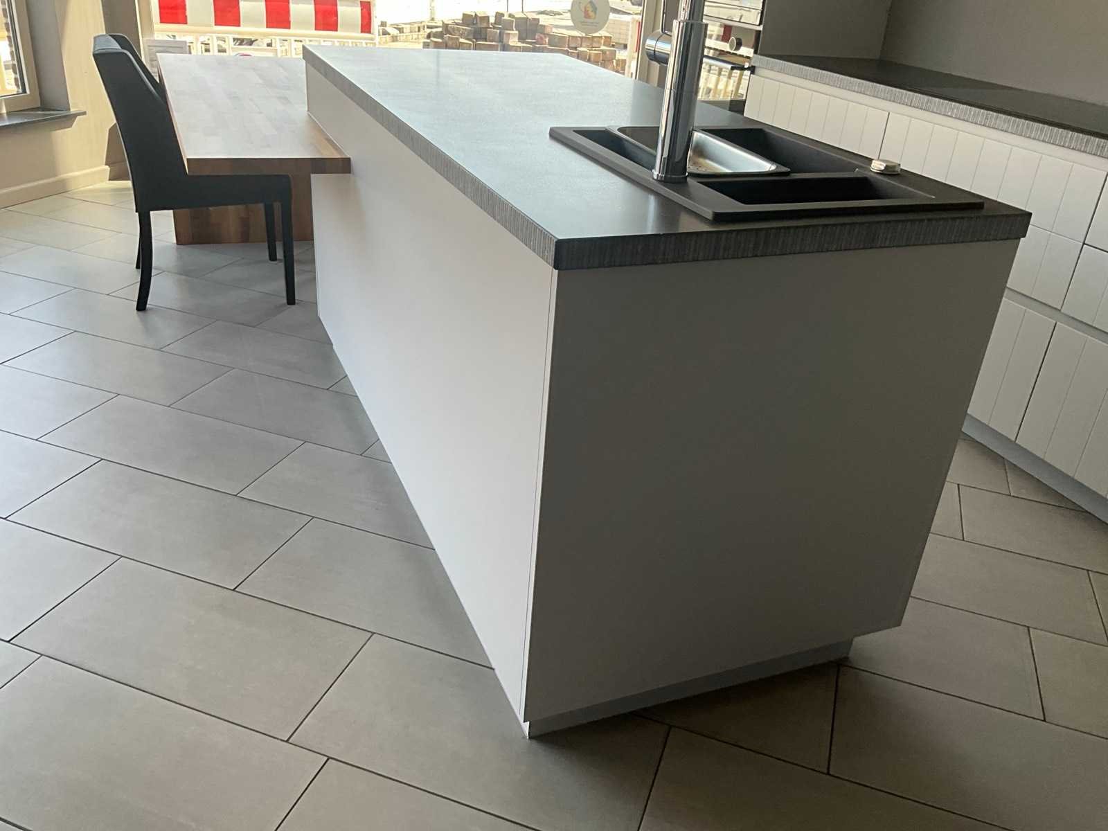 Meubelen : structuurlak met groeven om de 10 cm, U540VL Stone Grey OW, smeedijzeren deurtjes Werkbladen Dutch Blue gezoet (fl) 12 mm opgedikt tot 40 mm, gefijnde rand. Tafel massieve notelaar vernist + stol. Inclusief diverse toestellen waaronder spoelbak Aqua Linea SQC150-601, Kraan KVR X-Trend N 2451.21, Inductie kookplaat Novy 1726, inbouw koelkast Siemens KI41RAD30, inbouw vaatwasser Bosch SMD8TC800E/08, 2x Siemens waarvan 1 combi-micro CM585AMS0 en micro met stoom CO565AGS0 en inbouw dampkap Novy 6832. Enkel bovenvermelde toestellen zijn inbegrepen in deze keukenopstelling. Afmetingen eiland circa 305 x 118 x 93 cm hoog met 2 deuren waaronder met inbouwladen, 2 stoelen Westwing, afmetingen kast circa 362 x 60 x 240 cm hoog met 8 deuren en 10 schuiven, werkblad, afmetingen vitrinekast circa 124 x 40 x 240 cm hoog. ZIe ook grondplan op foto, enkel voor opstelling en afmetingen. Nee Type keukenopstelling: Keukeneiland en kast + vitrinekast Kraan: KVR Gootsteen: Aqua Linea Magnetron: Siemens 2x Fornuis: Novy Koelkast: Siemens Softclose: true Afzuigkap: Novy Vaatwasser: Bosch