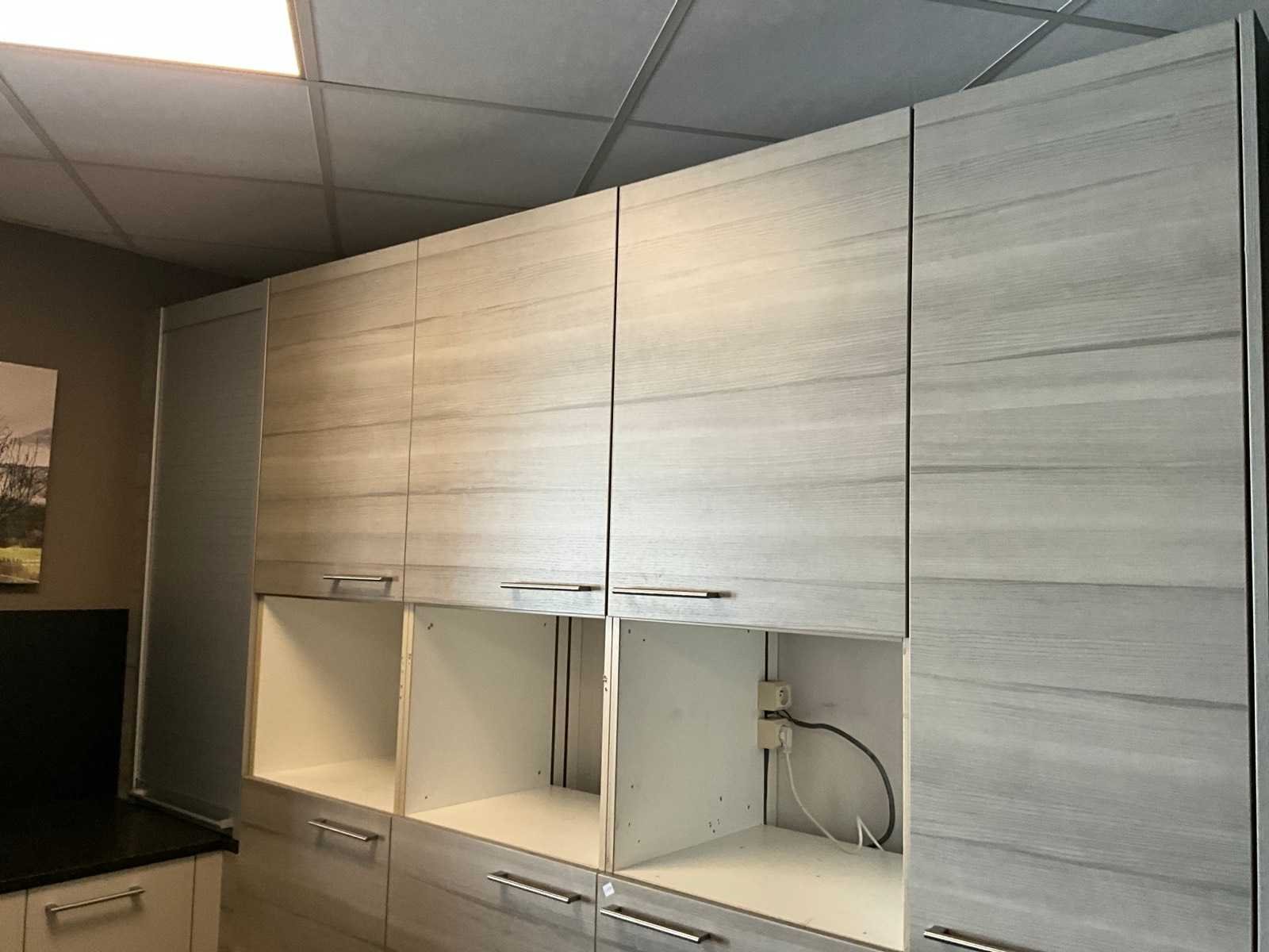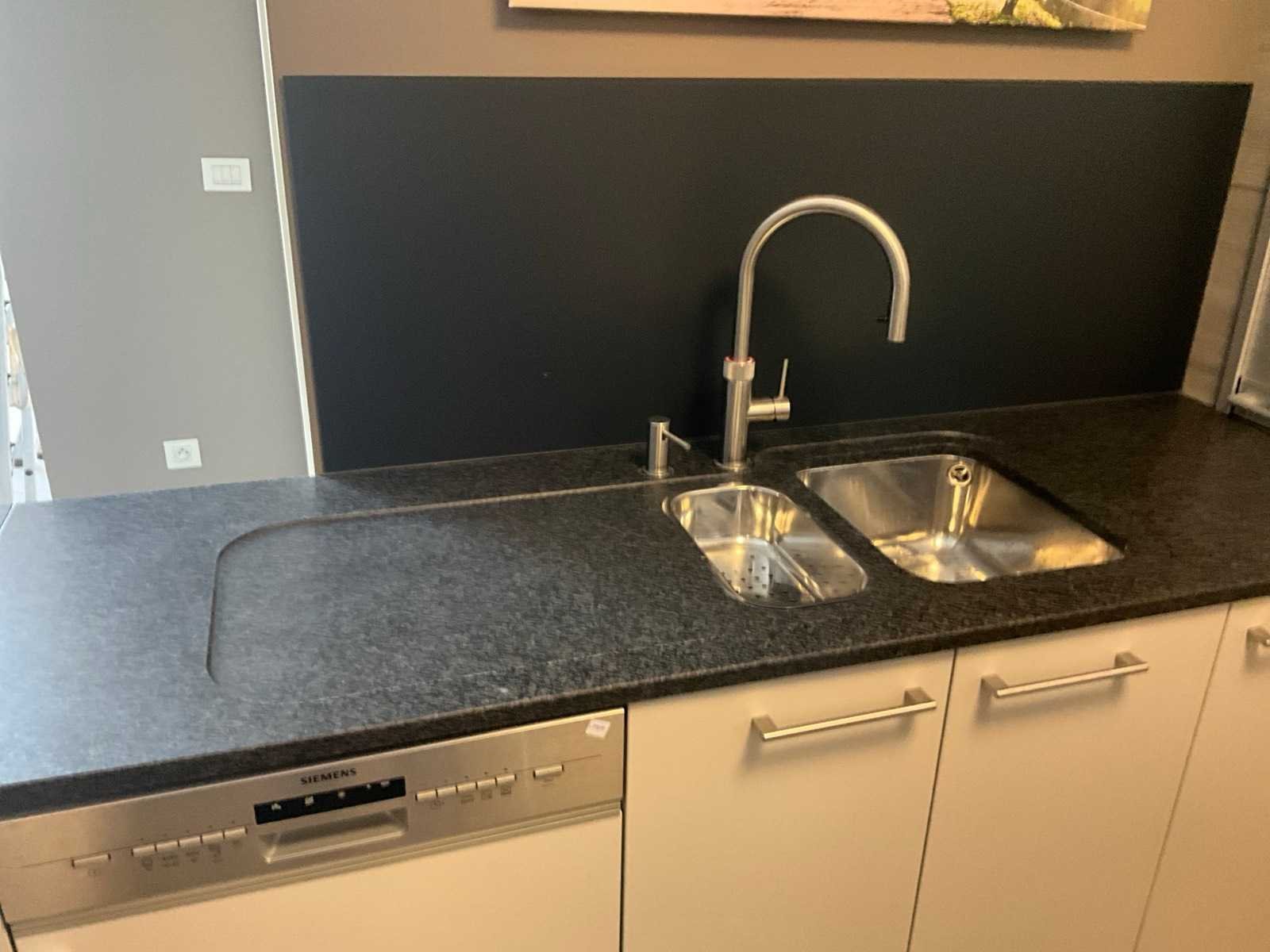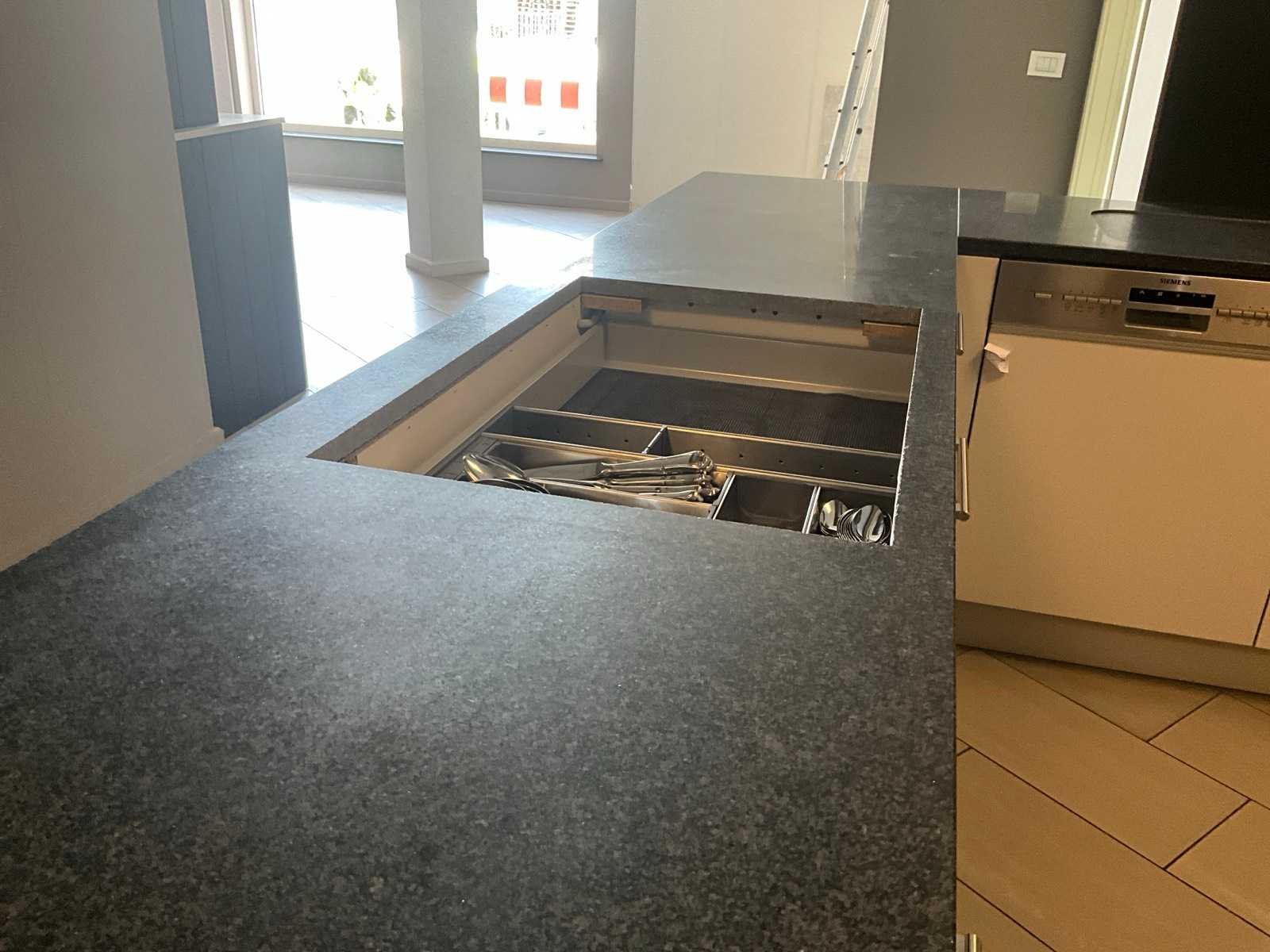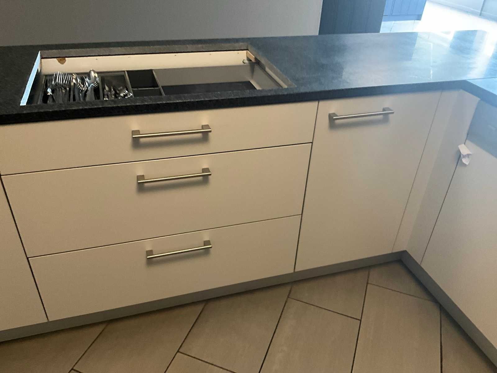 Meubelen : kunststof: S houtdecor Viking kunststof: S Pastelgrijs. Werkbladen Graniet: Jasberg verzoet. Achterwand: Glas-mat: deep grey. Inclusief diverse toestellen waaronder spoelbak Blanco Ypsilon, Kraan Quooker Flex pro 3 3XCHR, plafond dampkap Neff I71F57N0, Inbouw vaatwasser Siemens SN55M586EU en inbouw koelkast Electrolux ERN1302FOW. Enkel bovenvermelde toestellen zijn inbegrepen in deze keukenopstelling. Afmetingen U-opstelling circa 300 x 320 x 300 x 236 cm hoog met 3 schuiven, 14 deuren met handvaten, verticaal rolluik. Voorzien van 3 open opbergvakken voor toestellen en uitgesneden uitsparing voor kookplaat in werkblad. Waaronder met dieptes 50 en 60 cm. Inclusief Quooker Cube systeem, maar ZONDER de resterende inhoud ! Zie ook grondplan op foto, enkel voor opstelling en afmetingen. Nee Type keukenopstelling: U-vorm opstelling Kraan: Quooker Gootsteen: Blanco Koelkast: Electrolux Softclose: true Afzuigkap: Neff Vaatwasser: Siemens