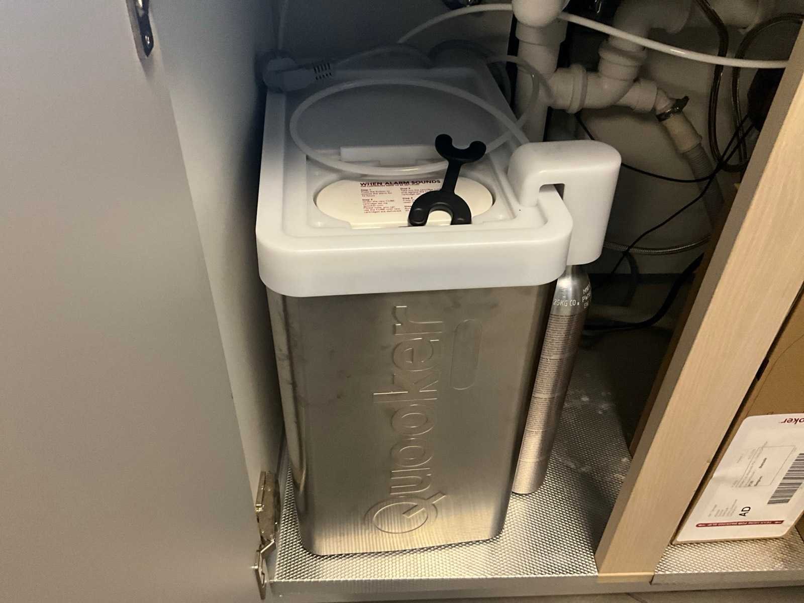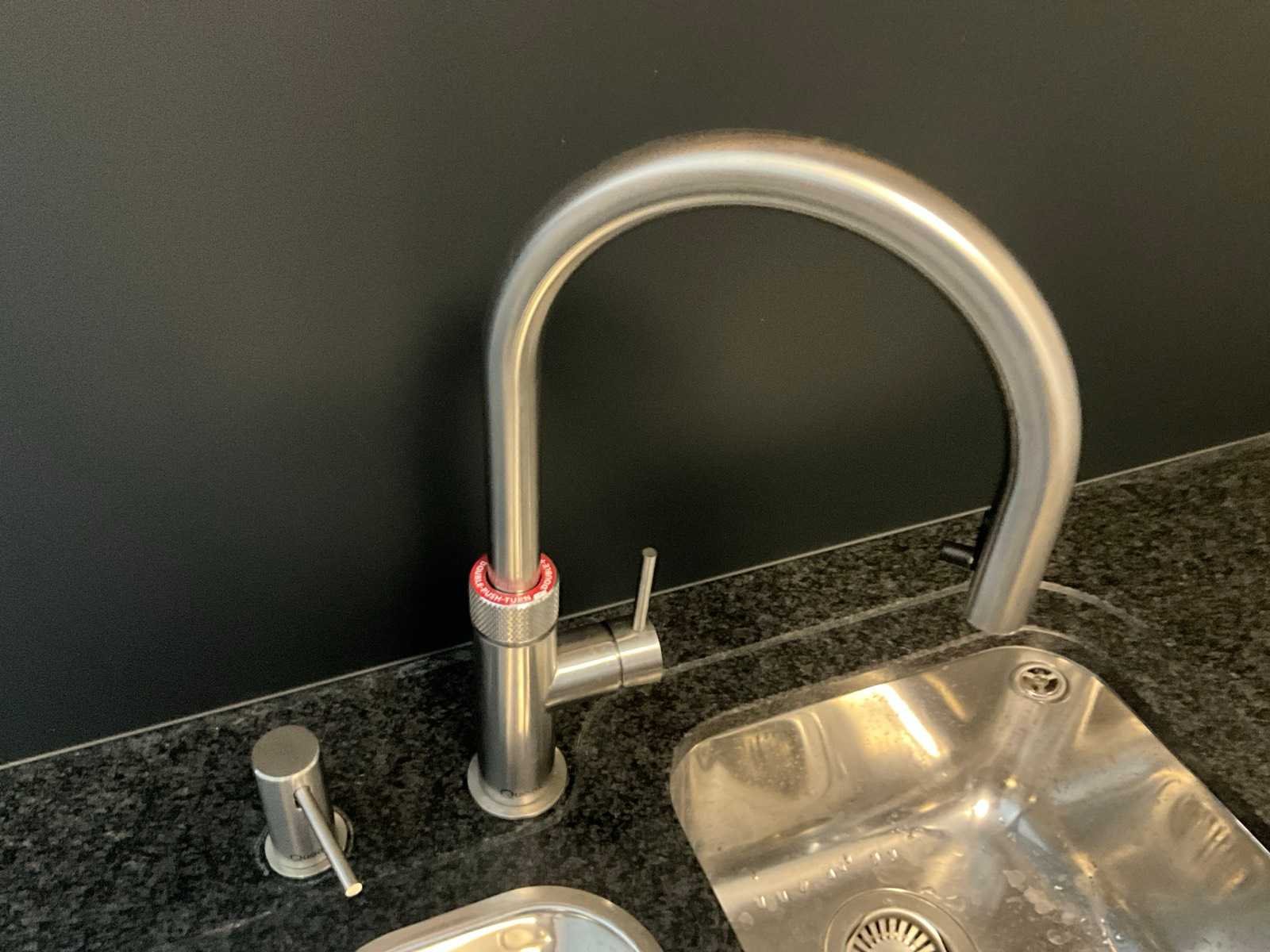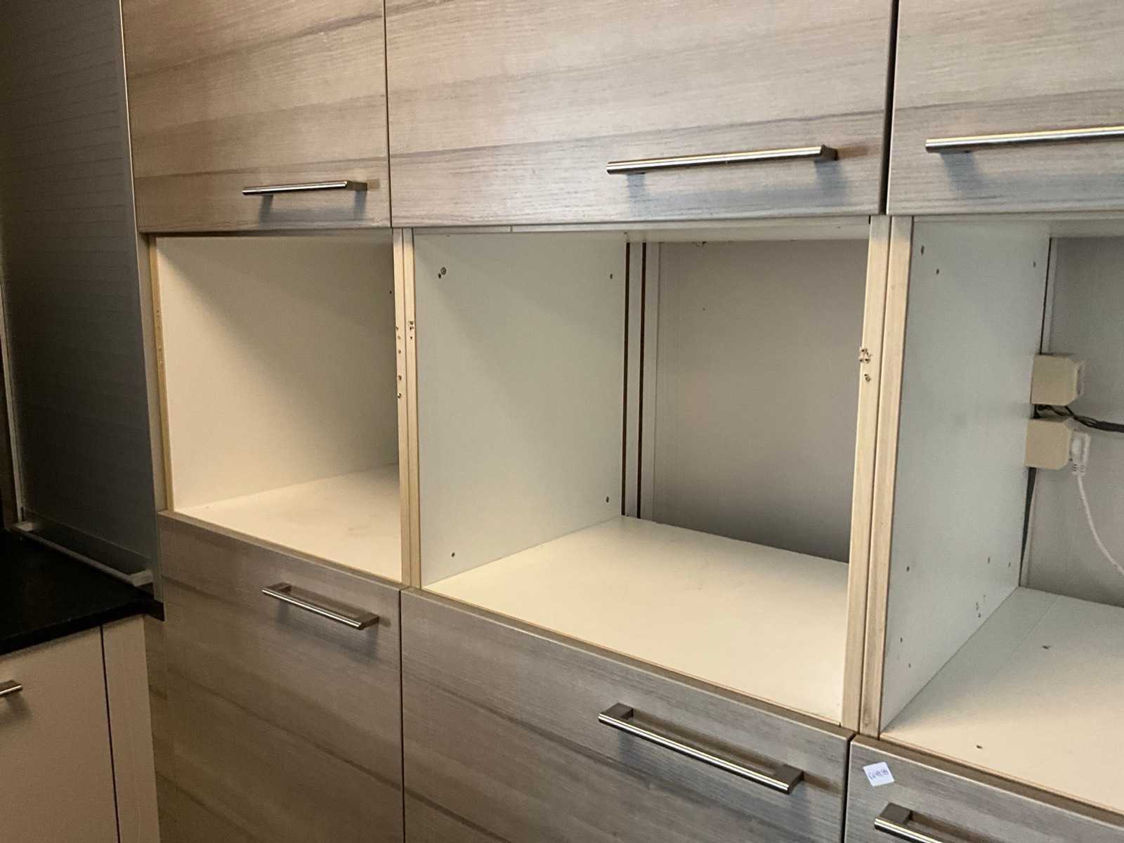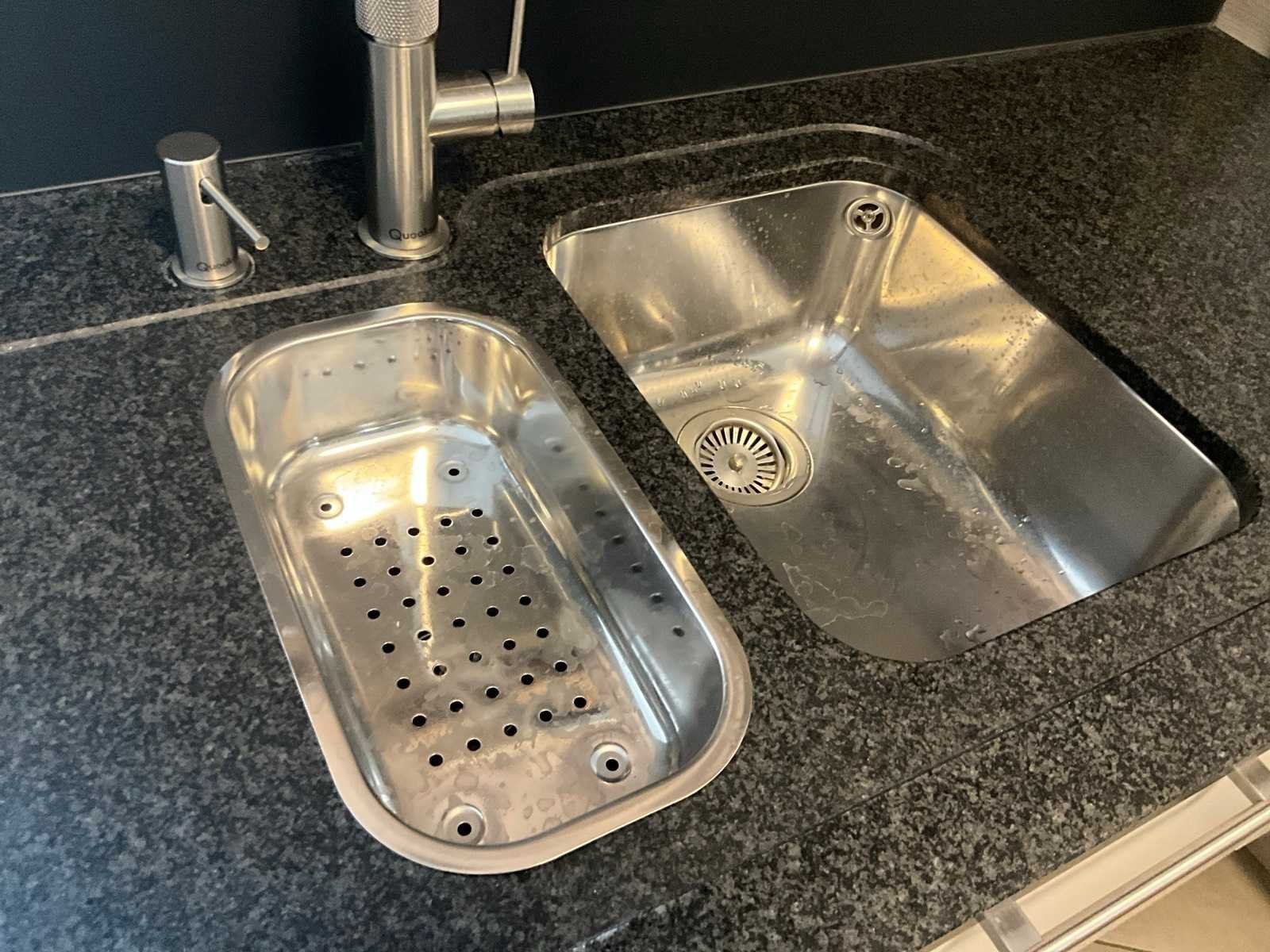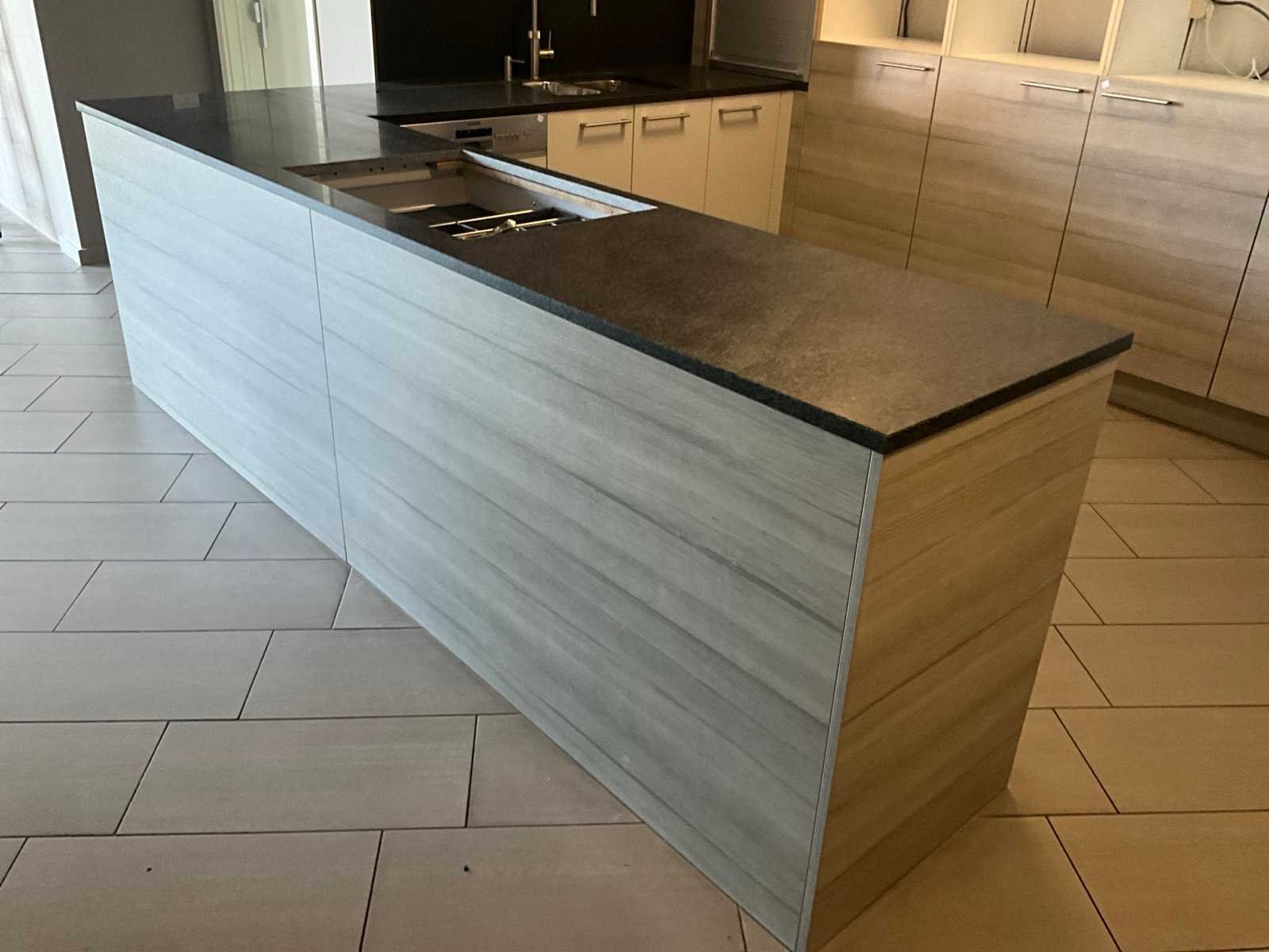Meubelen : kunststof: S houtdecor Viking kunststof: S Pastelgrijs. Werkbladen Graniet: Jasberg verzoet. Achterwand: Glas-mat: deep grey. Inclusief diverse toestellen waaronder spoelbak Blanco Ypsilon, Kraan Quooker Flex pro 3 3XCHR, plafond dampkap Neff I71F57N0, Inbouw vaatwasser Siemens SN55M586EU en inbouw koelkast Electrolux ERN1302FOW. Enkel bovenvermelde toestellen zijn inbegrepen in deze keukenopstelling. Afmetingen U-opstelling circa 300 x 320 x 300 x 236 cm hoog met 3 schuiven, 14 deuren met handvaten, verticaal rolluik. Voorzien van 3 open opbergvakken voor toestellen en uitgesneden uitsparing voor kookplaat in werkblad. Waaronder met dieptes 50 en 60 cm. Inclusief Quooker Cube systeem, maar ZONDER de resterende inhoud ! Zie ook grondplan op foto, enkel voor opstelling en afmetingen. Nee Type keukenopstelling: U-vorm opstelling Kraan: Quooker Gootsteen: Blanco Koelkast: Electrolux Softclose: true Afzuigkap: Neff Vaatwasser: Siemens