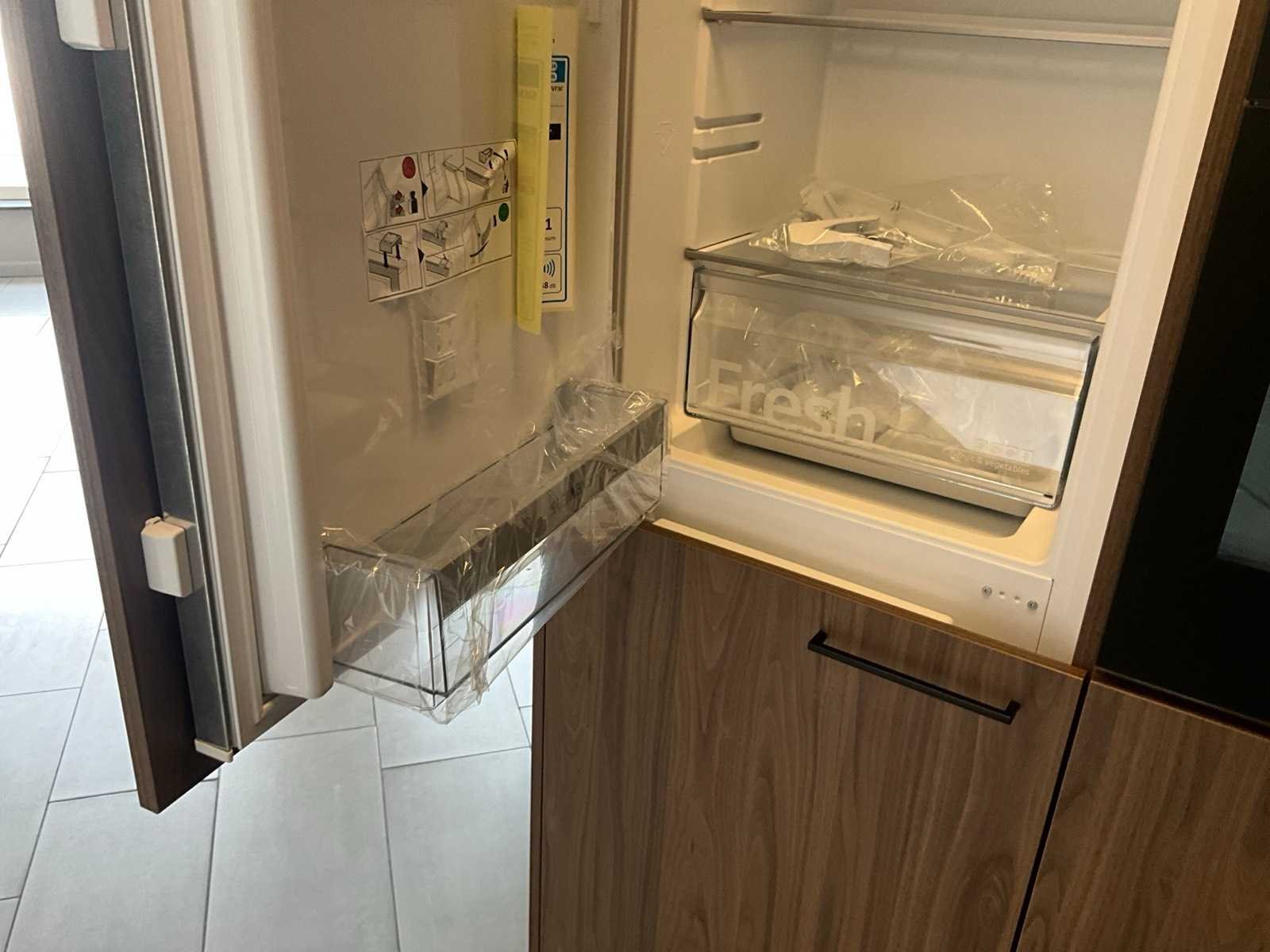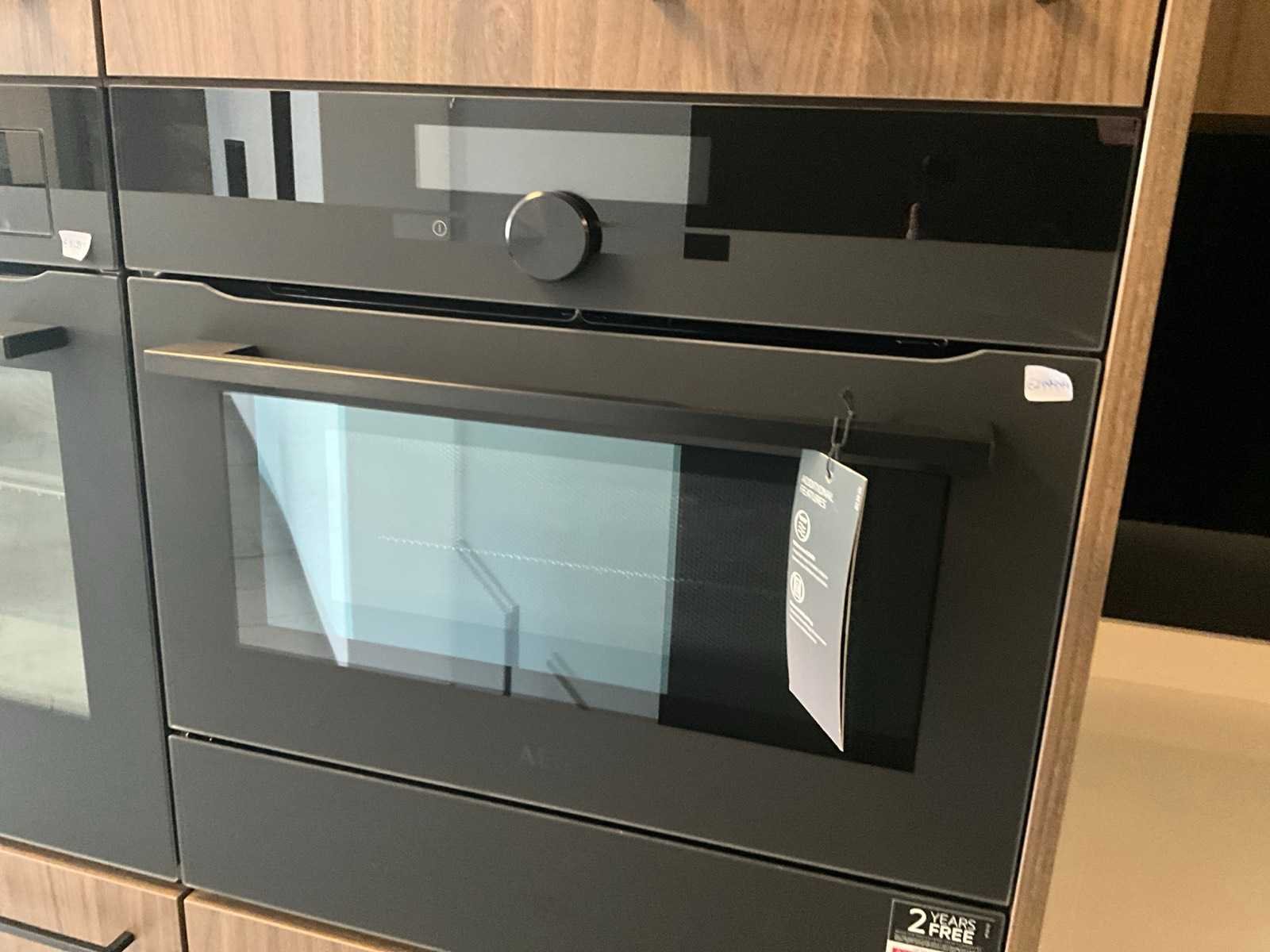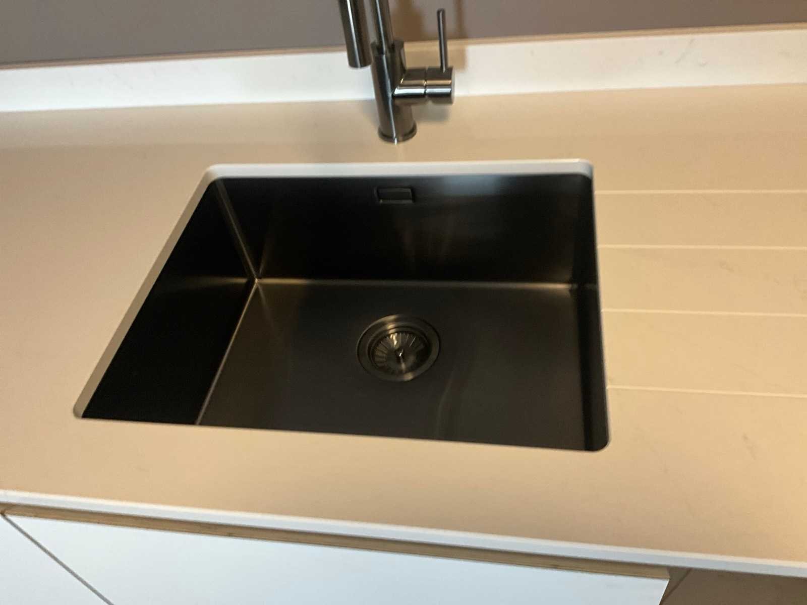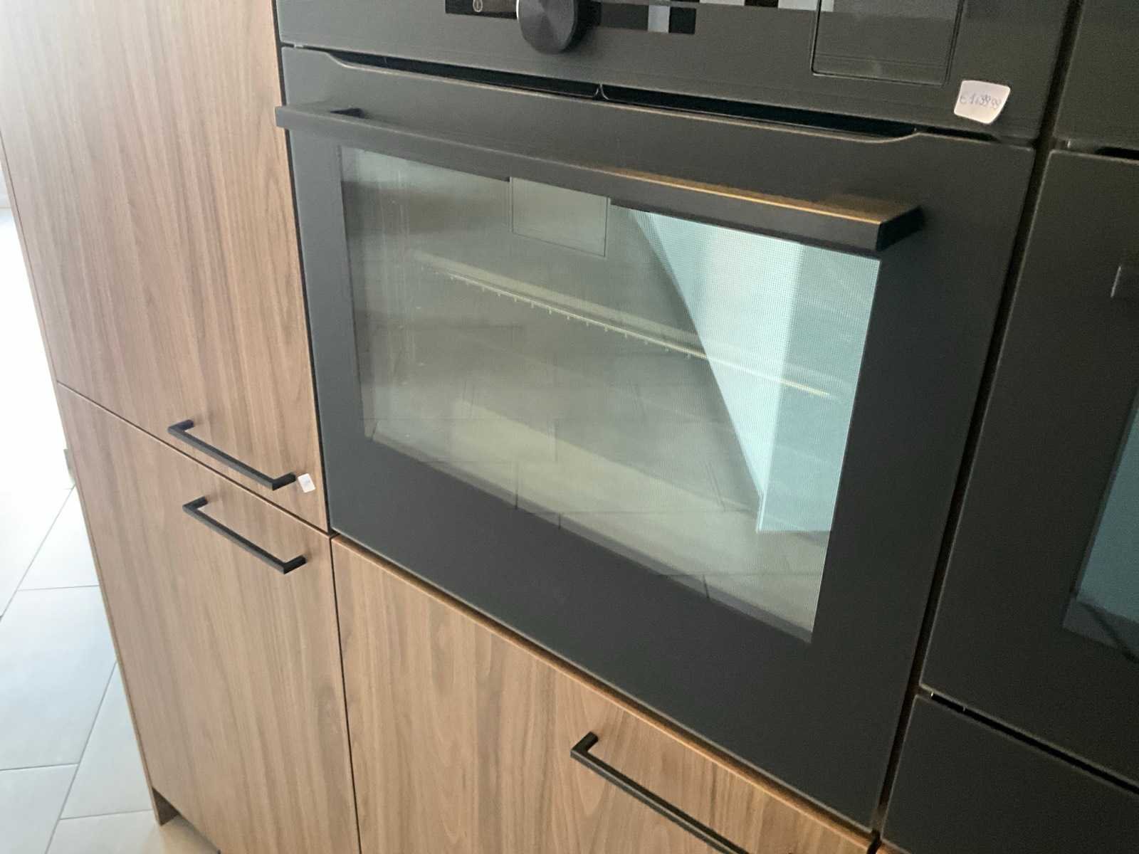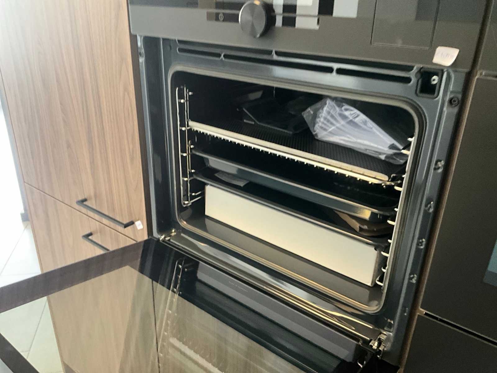 Meubelen : Kunststof notelaar B H3710ST12 Fenix 0032 wit op berkenmultiplex Werkbladen Composiet dd eternal statuario poli 20 mm Achterwand Gelakt glas: black classic 9005 - 6 mm. Inclusief diverse toestellen waaronder spoelbak Reginox SUMIA50GUN, Kraan Reginox MKCANGUN, inductie kookplaat AEG IPE84571FB, inbouw combi-micro oven AEG KMK968000T en sous vide oven AEG BSK999330T en inbouw koelkast Siemens KI86VVF30. Enkel bovenvermelde toestellen zijn inbegrepen in deze keukenopstelling. Afmetingen hoekopstelling circa 490 x 255 x 240 cm hoog met 6 schuiven, 13 deuren, 2 open opbergvakken, en voorzien van led verlichting. Diepte 65 cm. Zie ook grondplan op foto, enkel voor opstelling en afmetingen. Nee Type keukenopstelling: Hoekopstelling Kraan: Reginox Gootsteen: Reginox Magnetron: AEG 2x Fornuis: AEG Koelkast: Siemens Softclose: true