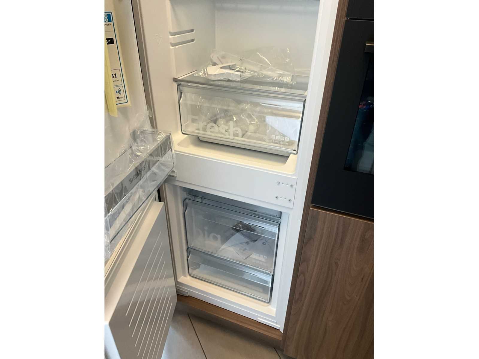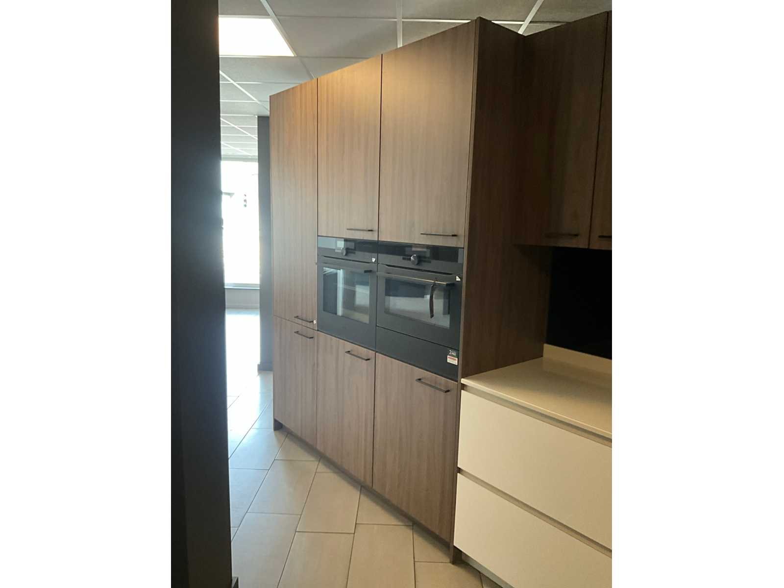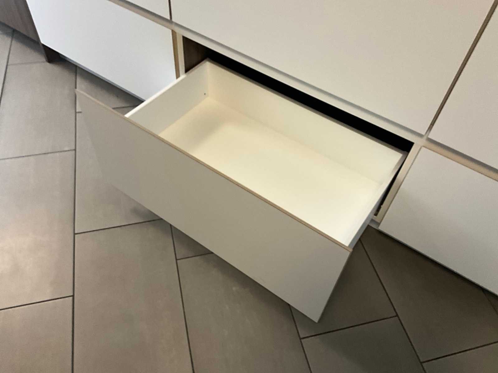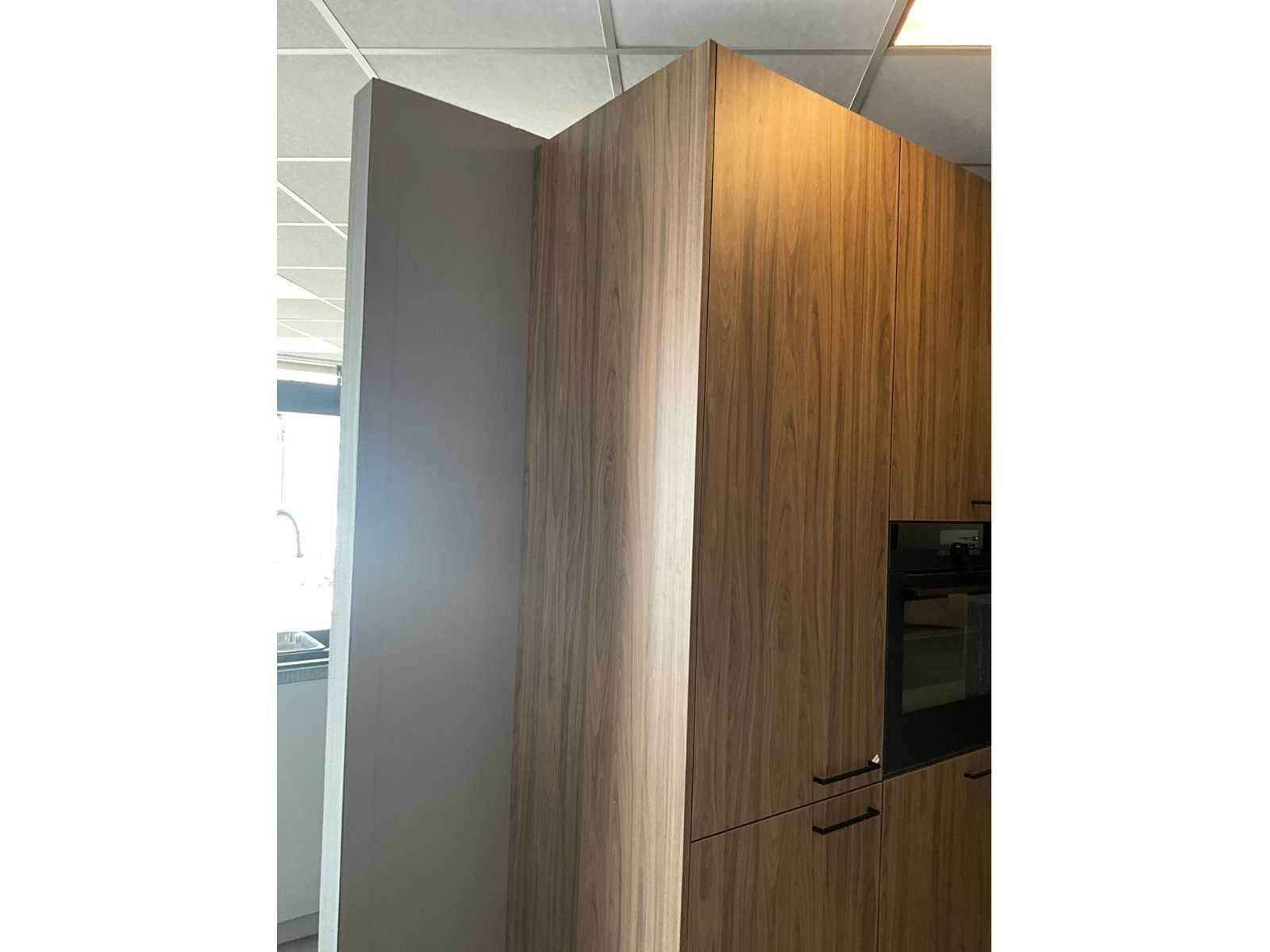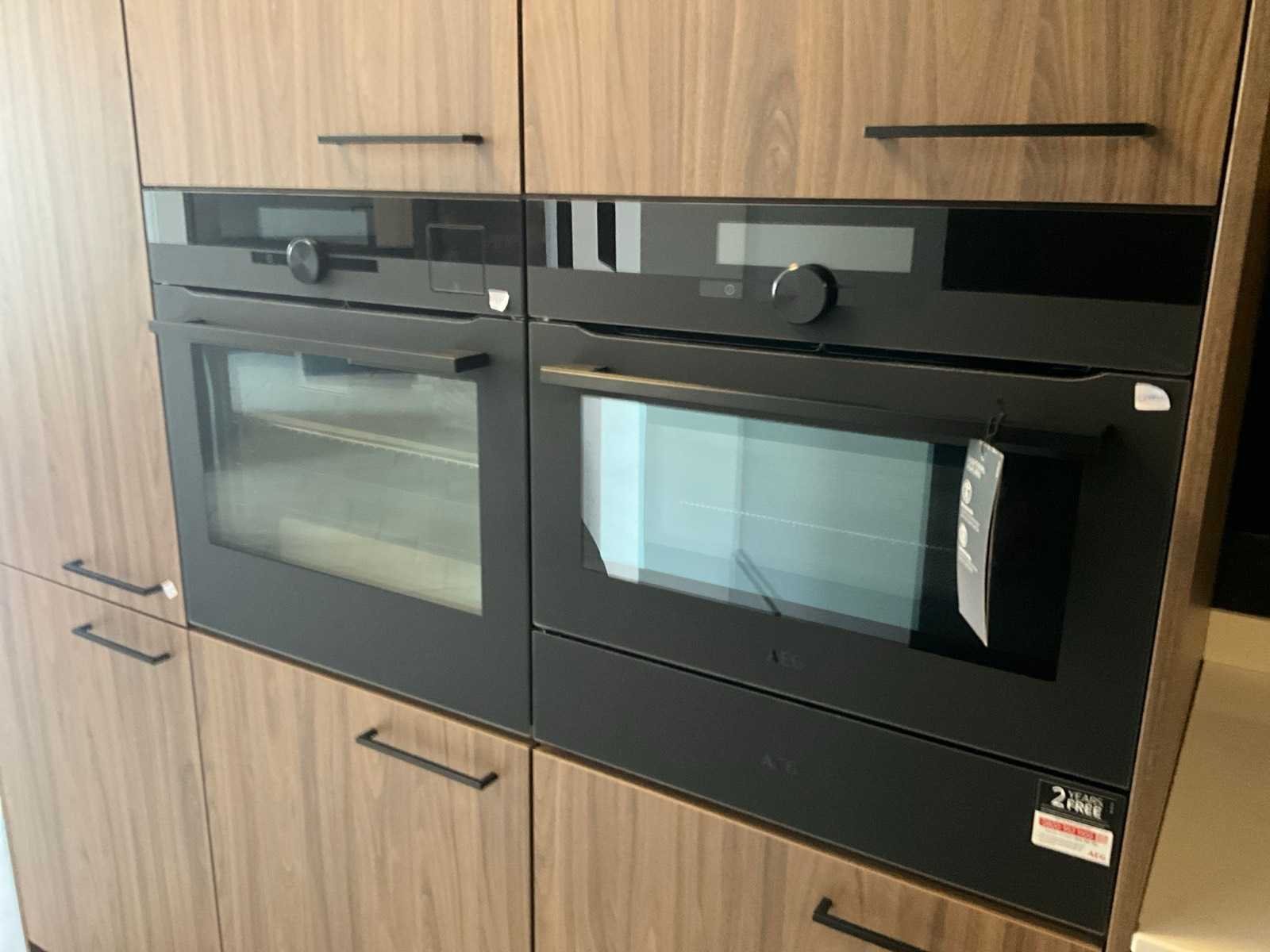 Meubelen : Kunststof notelaar B H3710ST12 Fenix 0032 wit op berkenmultiplex Werkbladen Composiet dd eternal statuario poli 20 mm Achterwand Gelakt glas: black classic 9005 - 6 mm. Inclusief diverse toestellen waaronder spoelbak Reginox SUMIA50GUN, Kraan Reginox MKCANGUN, inductie kookplaat AEG IPE84571FB, inbouw combi-micro oven AEG KMK968000T en sous vide oven AEG BSK999330T en inbouw koelkast Siemens KI86VVF30. Enkel bovenvermelde toestellen zijn inbegrepen in deze keukenopstelling. Afmetingen hoekopstelling circa 490 x 255 x 240 cm hoog met 6 schuiven, 13 deuren, 2 open opbergvakken, en voorzien van led verlichting. Diepte 65 cm. Zie ook grondplan op foto, enkel voor opstelling en afmetingen. Nee Type keukenopstelling: Hoekopstelling Kraan: Reginox Gootsteen: Reginox Magnetron: AEG 2x Fornuis: AEG Koelkast: Siemens Softclose: true