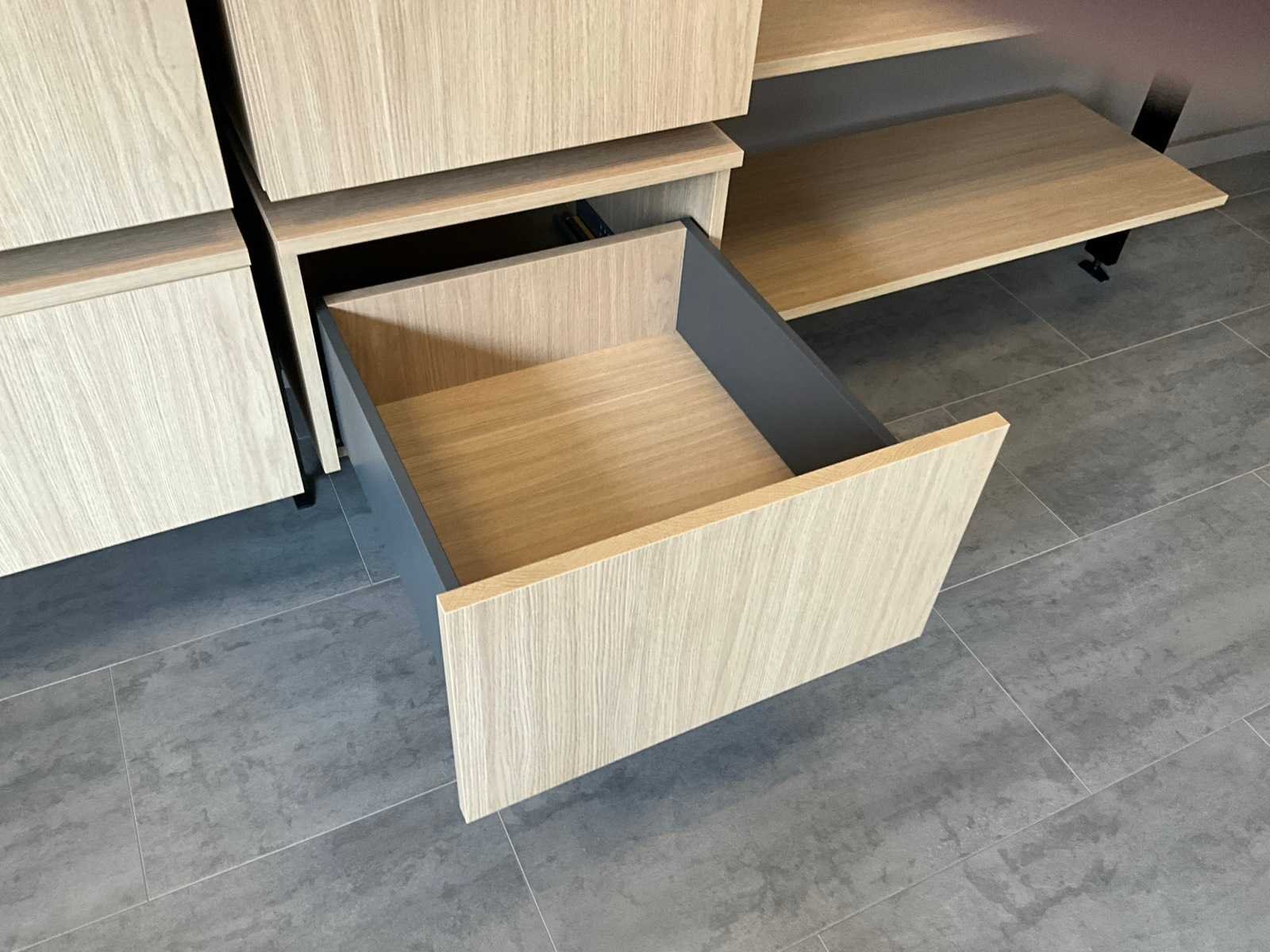 Kasten en leggers in master oak light uitvoering. Toonzaalmodel. Nee Merk: EMU ZERO Lengte: 210cm Breedte: 54cm Hoogte: 220cm