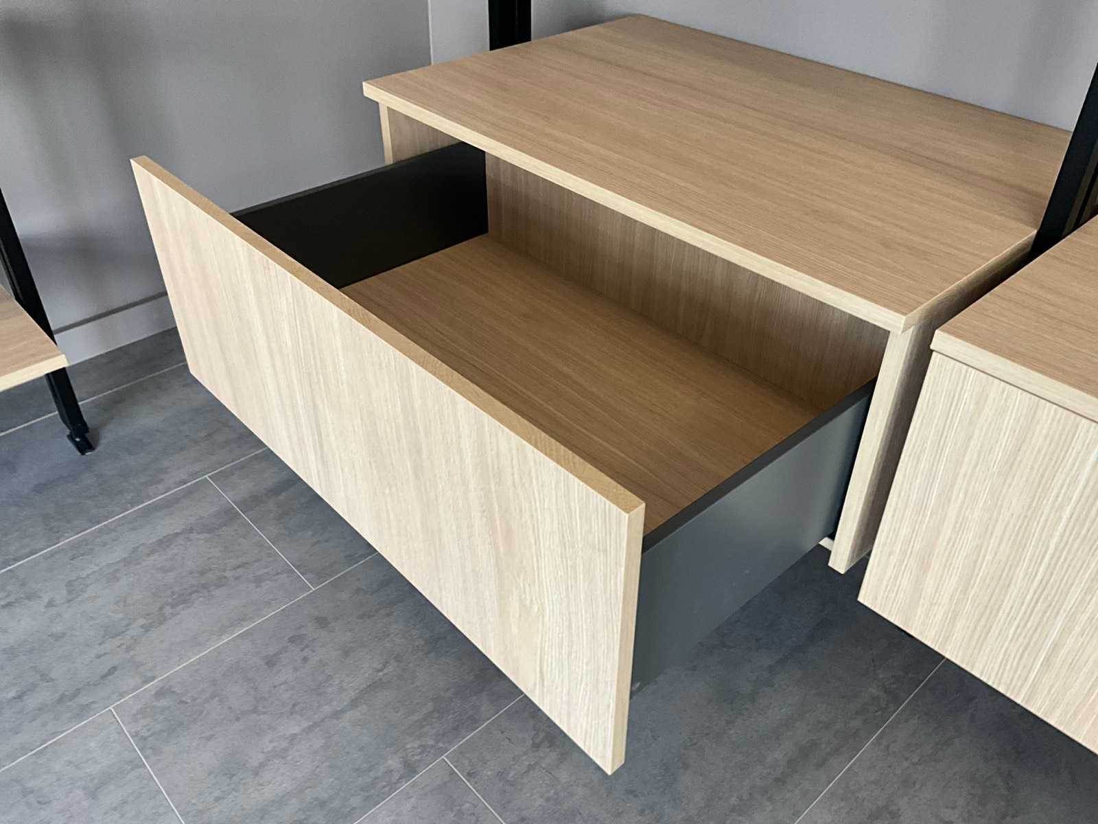 Kasten en leggers in master oak light uitvoering. Toonzaalmodel. Nee Merk: EMU ZERO Lengte: 210cm Breedte: 54cm Hoogte: 220cm
