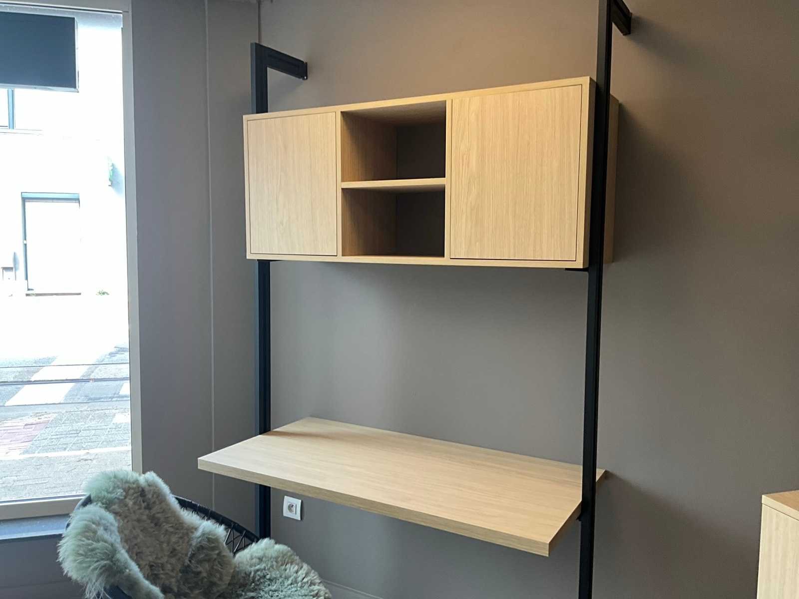 Kasten en leggers in master oak light uitvoering. Compleet met kunststoffen stoel en kussen plaid WOOOLY sheepskin. Toonzaalmodel. Nee Merk: EMU ZERO Lengte: 210cm Breedte: 54cm Hoogte: 220cm