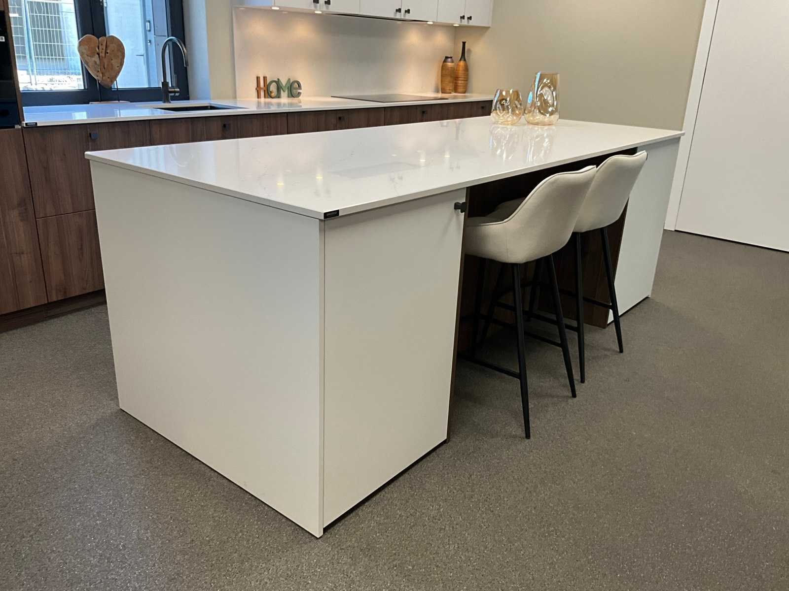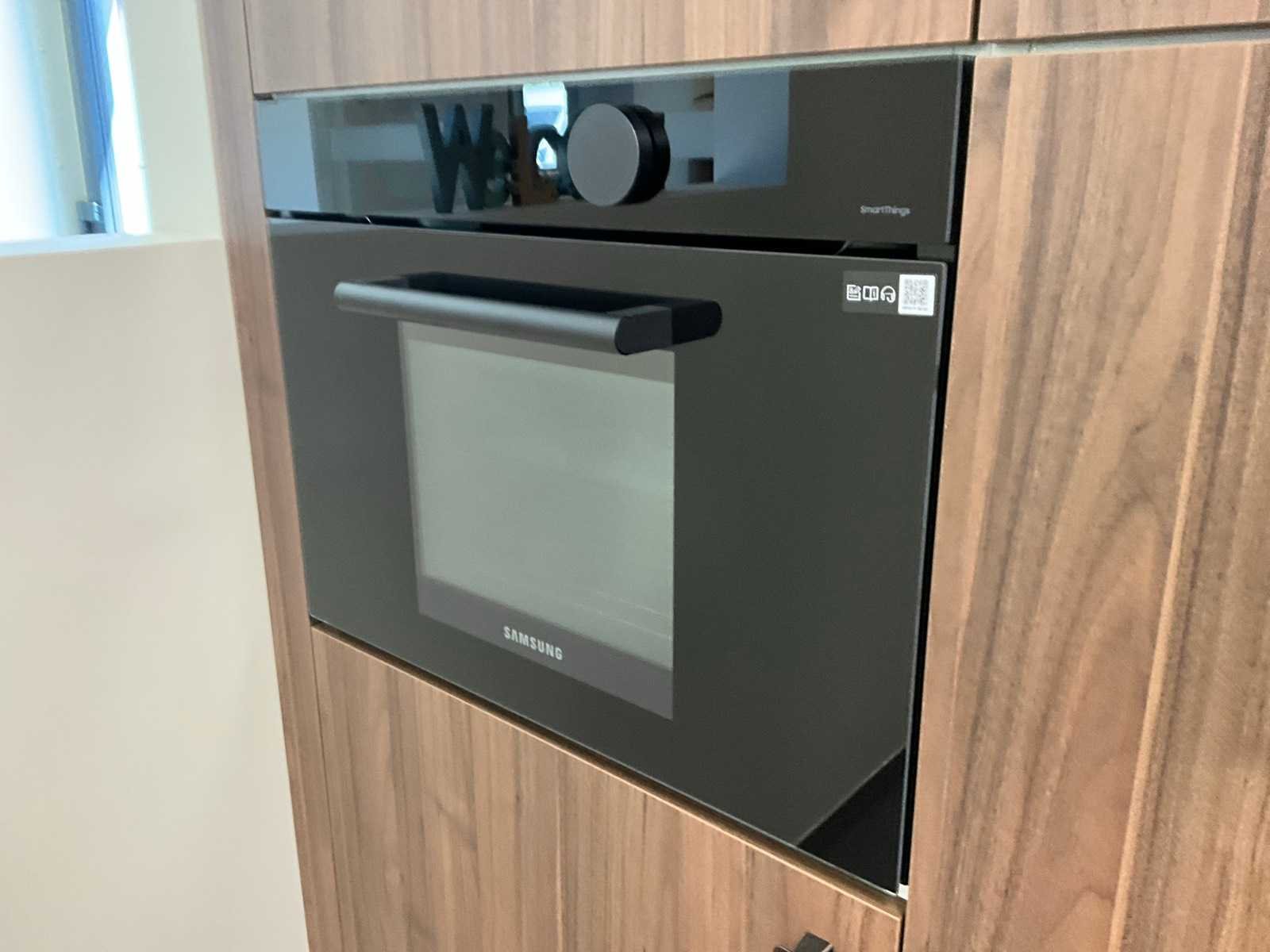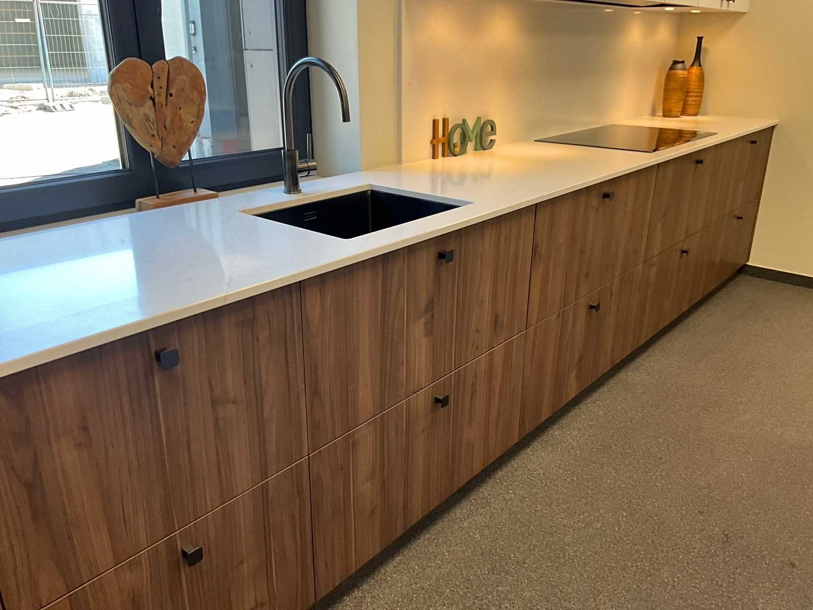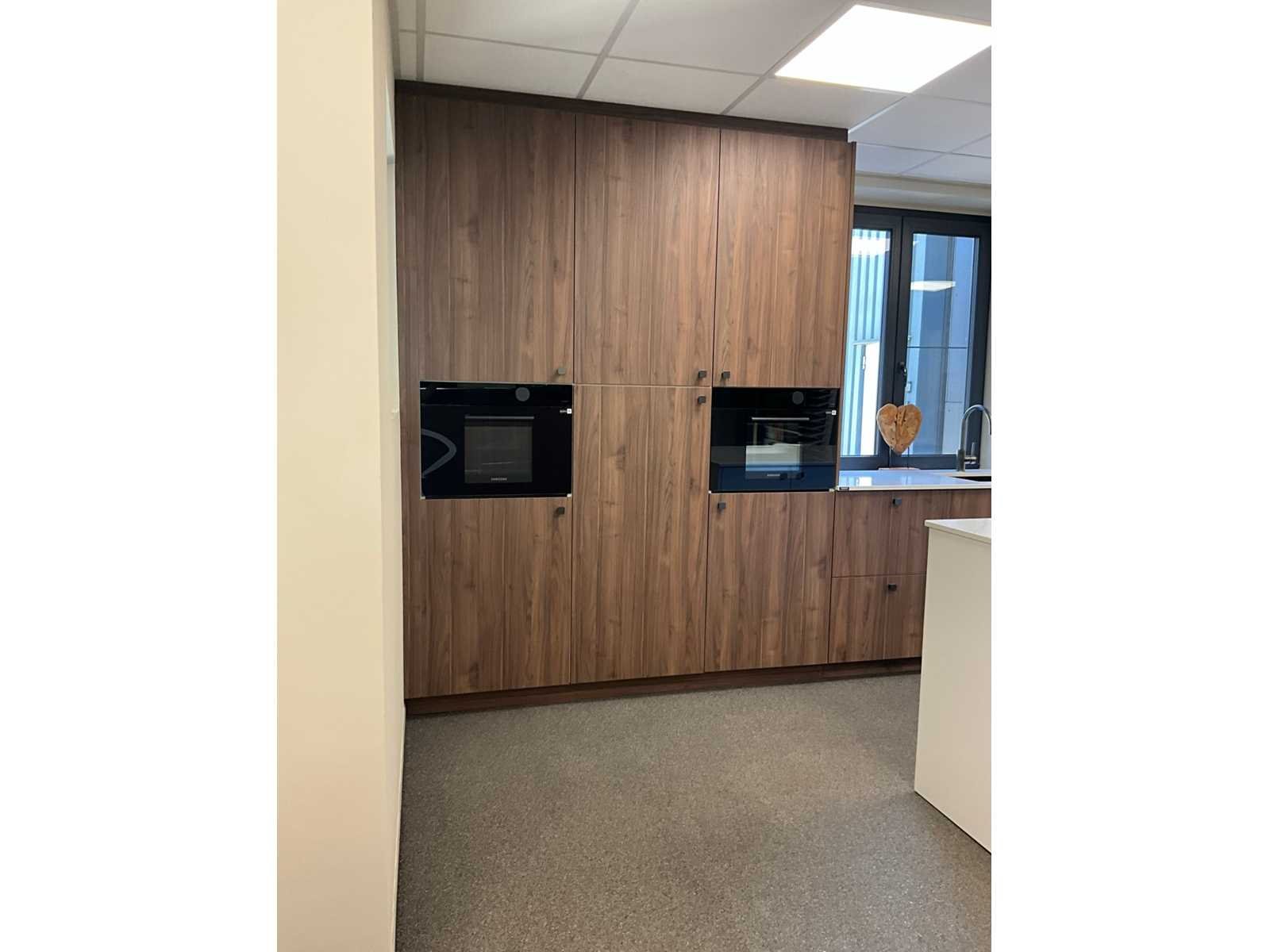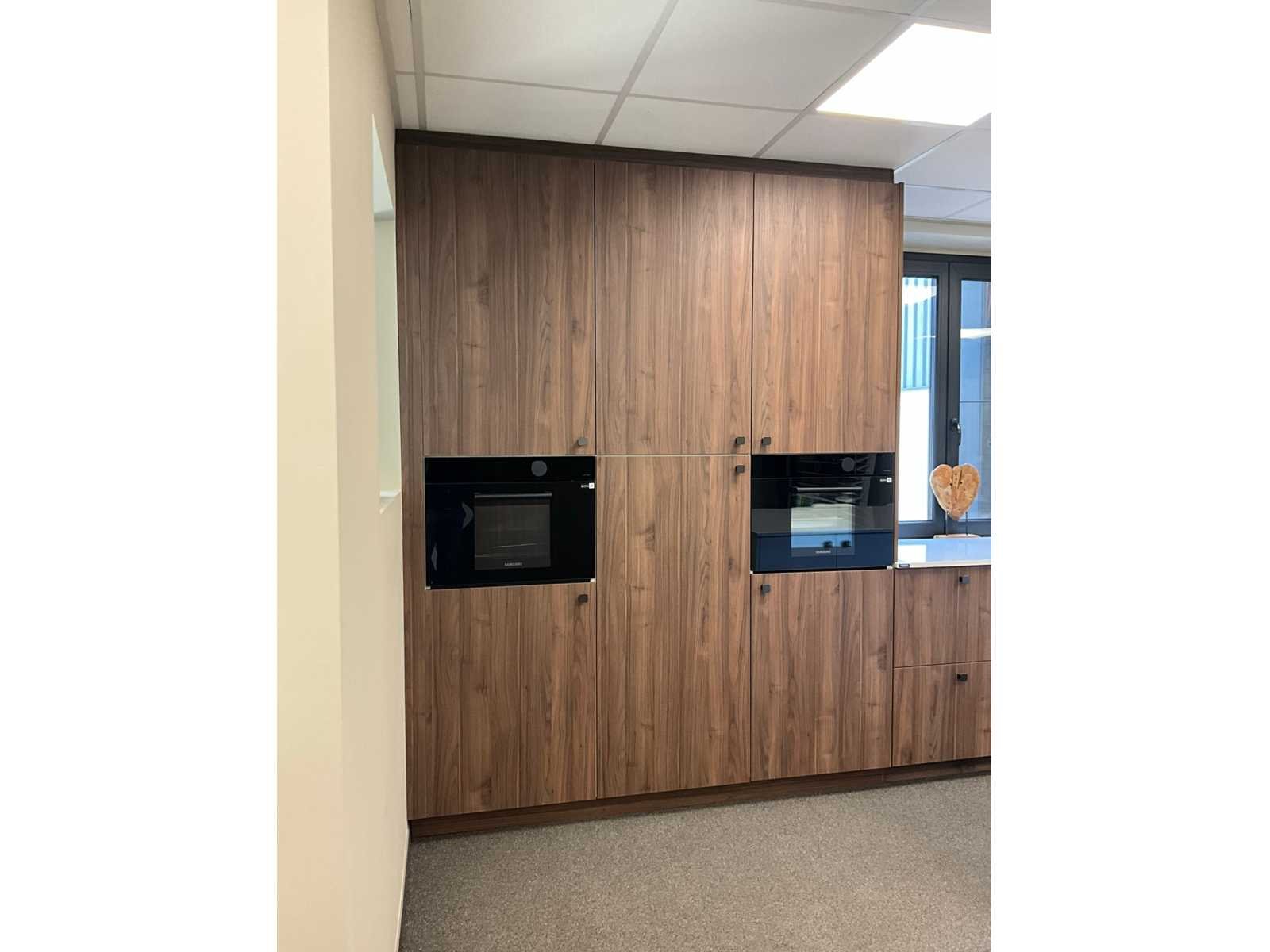 Meubelen : in houten kunststof notelaar uitvoering. Werkbladen composiet silestone Hybriq Mineral surfaces, 20 mm dik, met achterwand aan kookplaat. Inclusief diverse toestellen waaronder spoelbak Reginox 50x40x20 cm, Kraan Reginox, Inductie kookplaat Siemens, inbouw dampkap Frecan, inbouw koelkast AEG SFB612F1AF, inbouw vaatwasser SIemens SX75Z801BE en 2x oven Samsung waaronder NQ50T8939BK en NQ50T8539BK. Enkel bovenvermelde nieuwe toestellen zijn inbegrepen in deze keukenopstelling. Wel compleet met 2 zitstoelen/krukken Bronx*71 en UITGEZONDERD de decoratie alsook inhoud kasten ! Afmetingen keukeneiland circa 265 x 106 x 93 cm hoog met 8 deuren; afmetingen extra hangkast circa 245 x 40 x 92 cm hoog met 6 deuren, En wandopstelling totaal : circa 600 x 65 x 245 cm hoog, werkblad 93 cm hoog. Nee Type keukenopstelling: Keukeneiland en wandkast opstelling Lengte: 600cm Breedte: 65cm Hoogte: 245cm Kraan: Reginox Gootsteen: Reginox Werkblad hoogte: 93cm Magnetron: Samsung Fornuis: Siemens Koelkast: AEG Softclose: true Oven: Samsung Afzuigkap: Frecan Vaatwasser: Siemens Lengte kookeiland: 265cm Breedte kookeiland: 106cm Hoogte kookeiland: 93cm