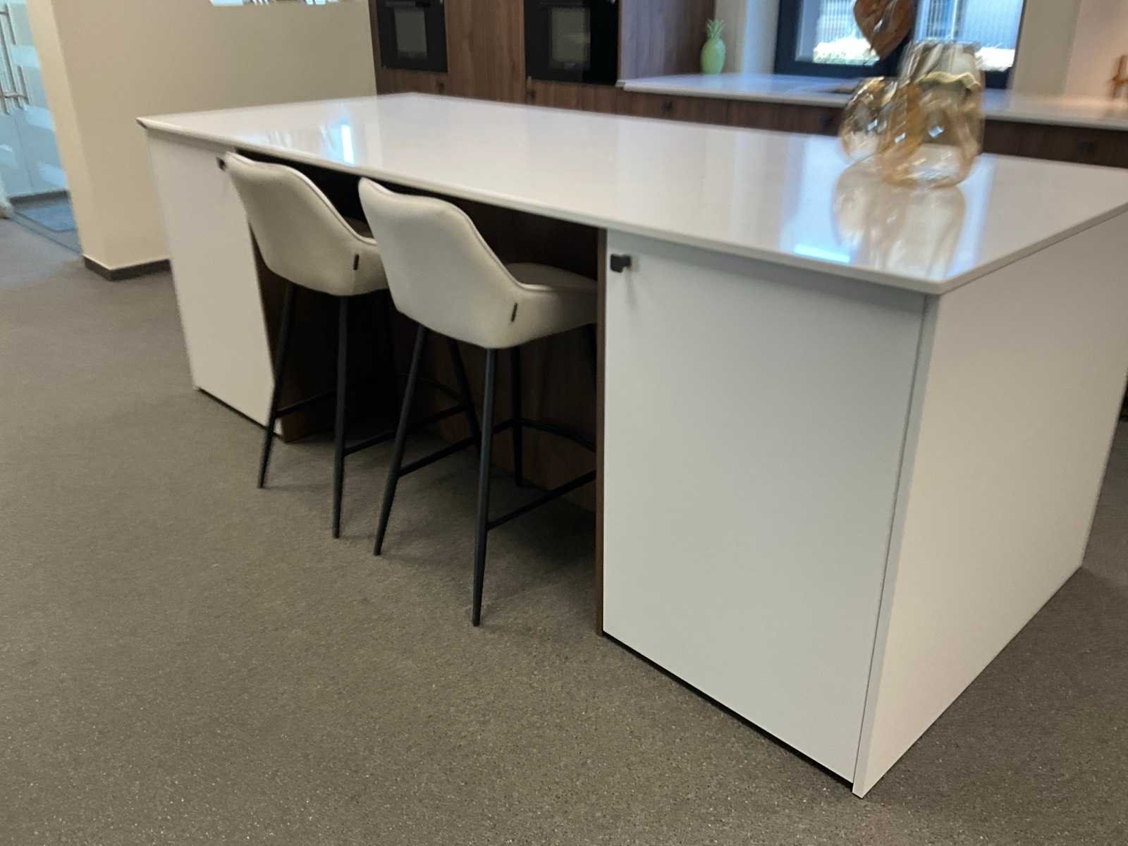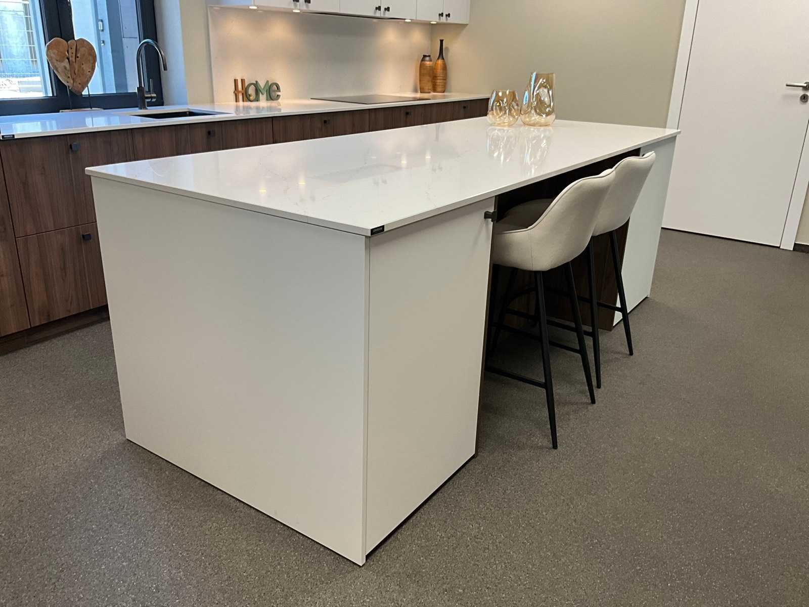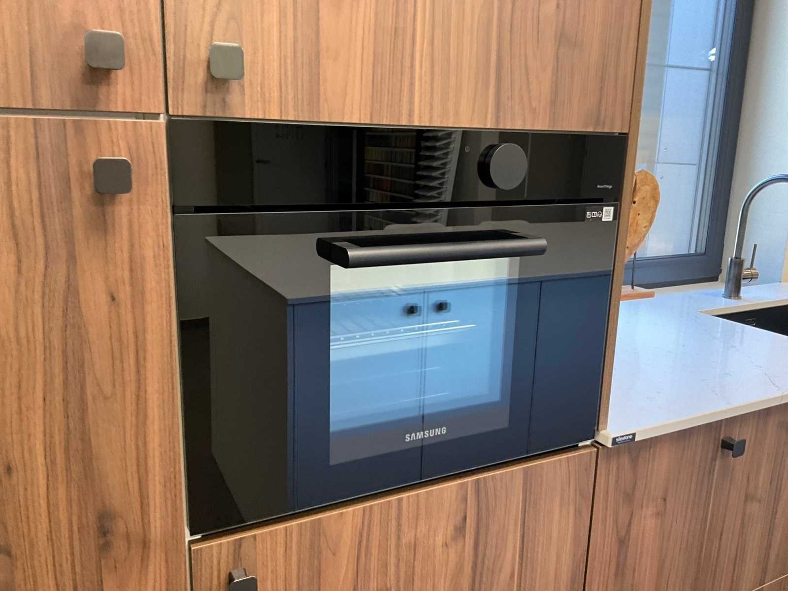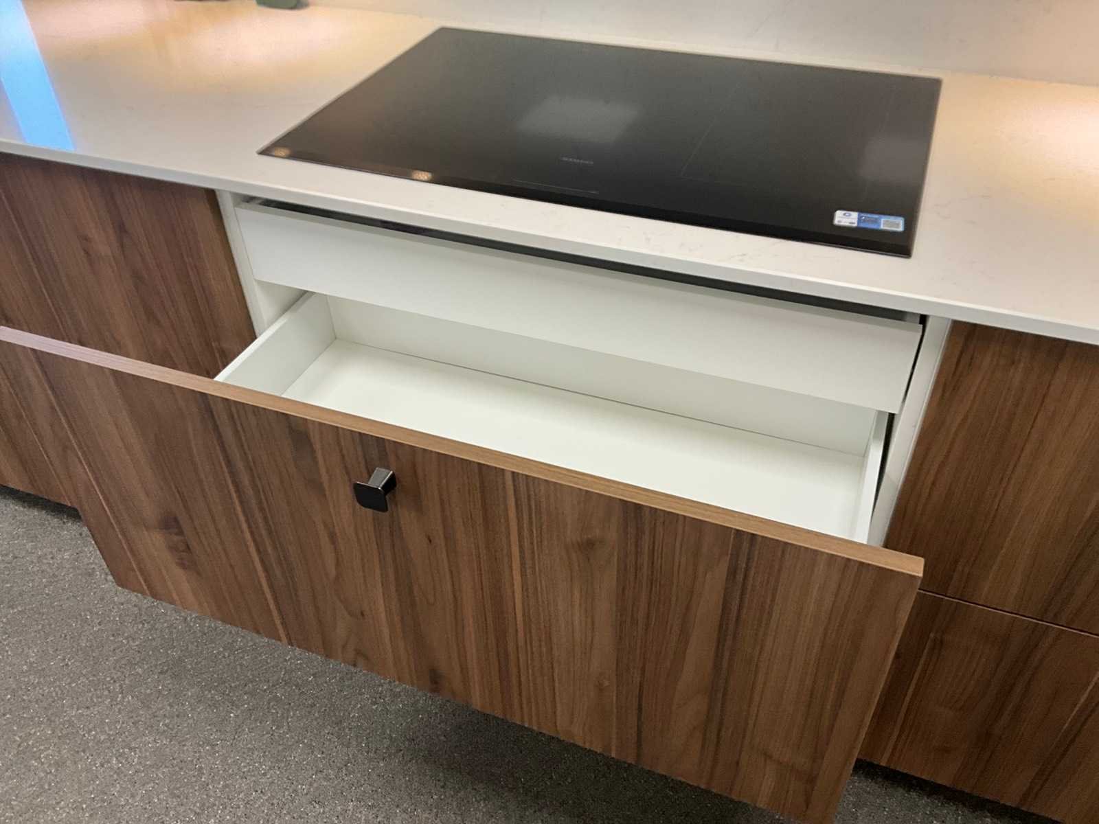 Meubelen : in houten kunststof notelaar uitvoering. Werkbladen composiet silestone Hybriq Mineral surfaces, 20 mm dik, met achterwand aan kookplaat. Inclusief diverse toestellen waaronder spoelbak Reginox 50x40x20 cm, Kraan Reginox, Inductie kookplaat Siemens, inbouw dampkap Frecan, inbouw koelkast AEG SFB612F1AF, inbouw vaatwasser SIemens SX75Z801BE en 2x oven Samsung waaronder NQ50T8939BK en NQ50T8539BK. Enkel bovenvermelde nieuwe toestellen zijn inbegrepen in deze keukenopstelling. Wel compleet met 2 zitstoelen/krukken Bronx*71 en UITGEZONDERD de decoratie alsook inhoud kasten ! Afmetingen keukeneiland circa 265 x 106 x 93 cm hoog met 8 deuren; afmetingen extra hangkast circa 245 x 40 x 92 cm hoog met 6 deuren, En wandopstelling totaal : circa 600 x 65 x 245 cm hoog, werkblad 93 cm hoog. Nee Type keukenopstelling: Keukeneiland en wandkast opstelling Lengte: 600cm Breedte: 65cm Hoogte: 245cm Kraan: Reginox Gootsteen: Reginox Werkblad hoogte: 93cm Magnetron: Samsung Fornuis: Siemens Koelkast: AEG Softclose: true Oven: Samsung Afzuigkap: Frecan Vaatwasser: Siemens Lengte kookeiland: 265cm Breedte kookeiland: 106cm Hoogte kookeiland: 93cm