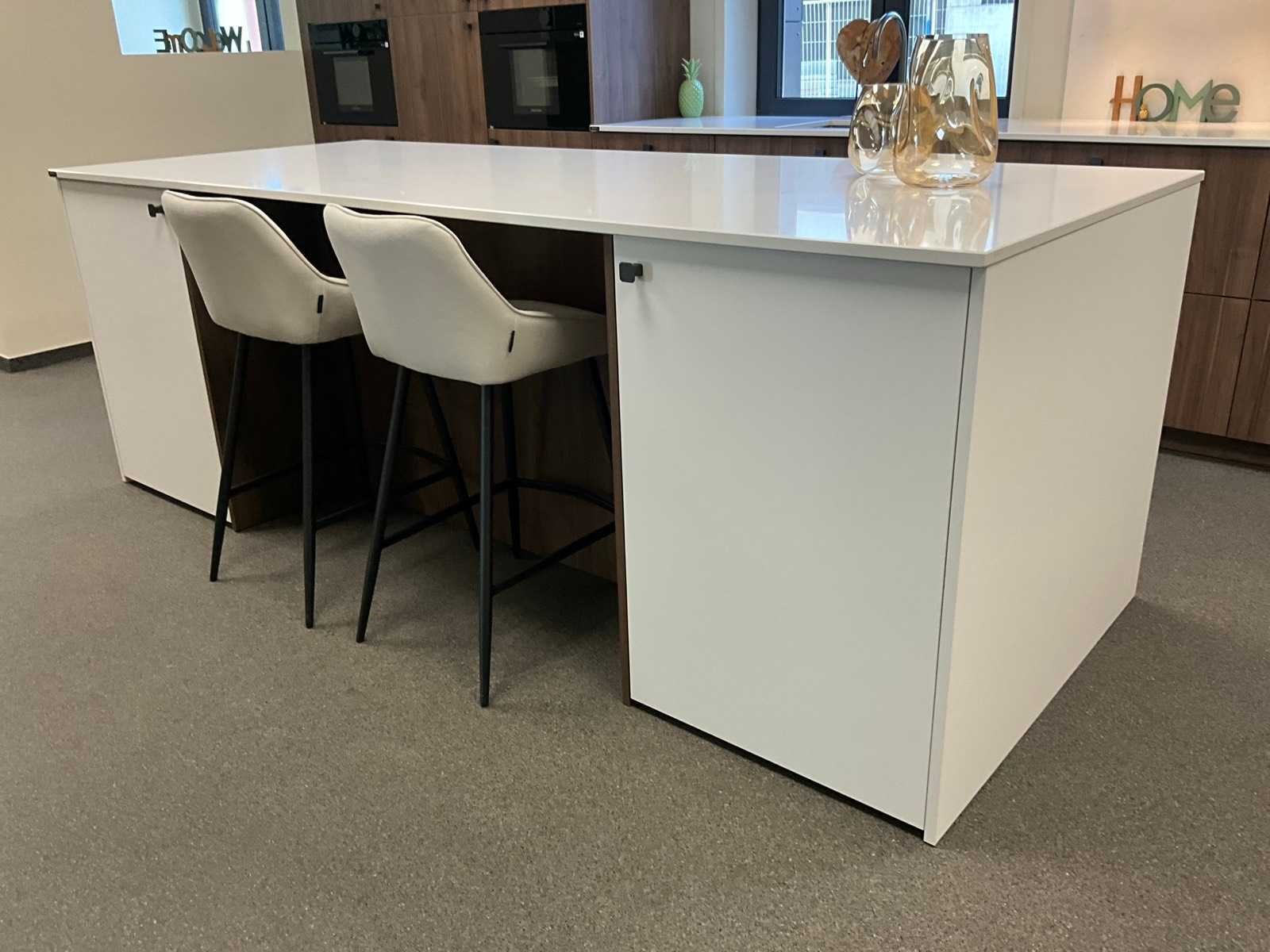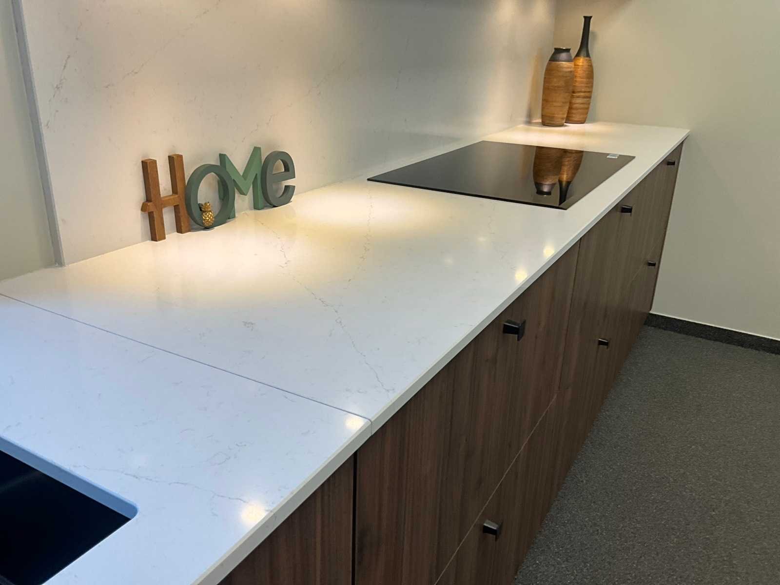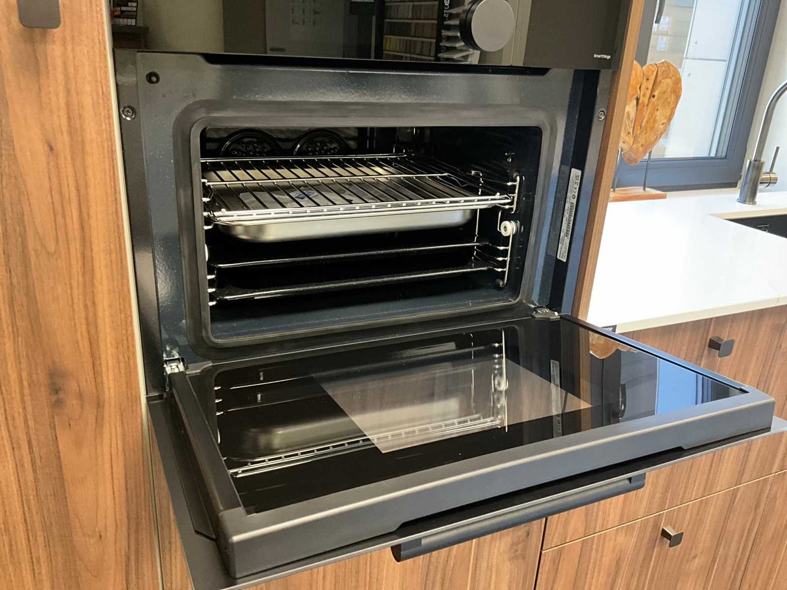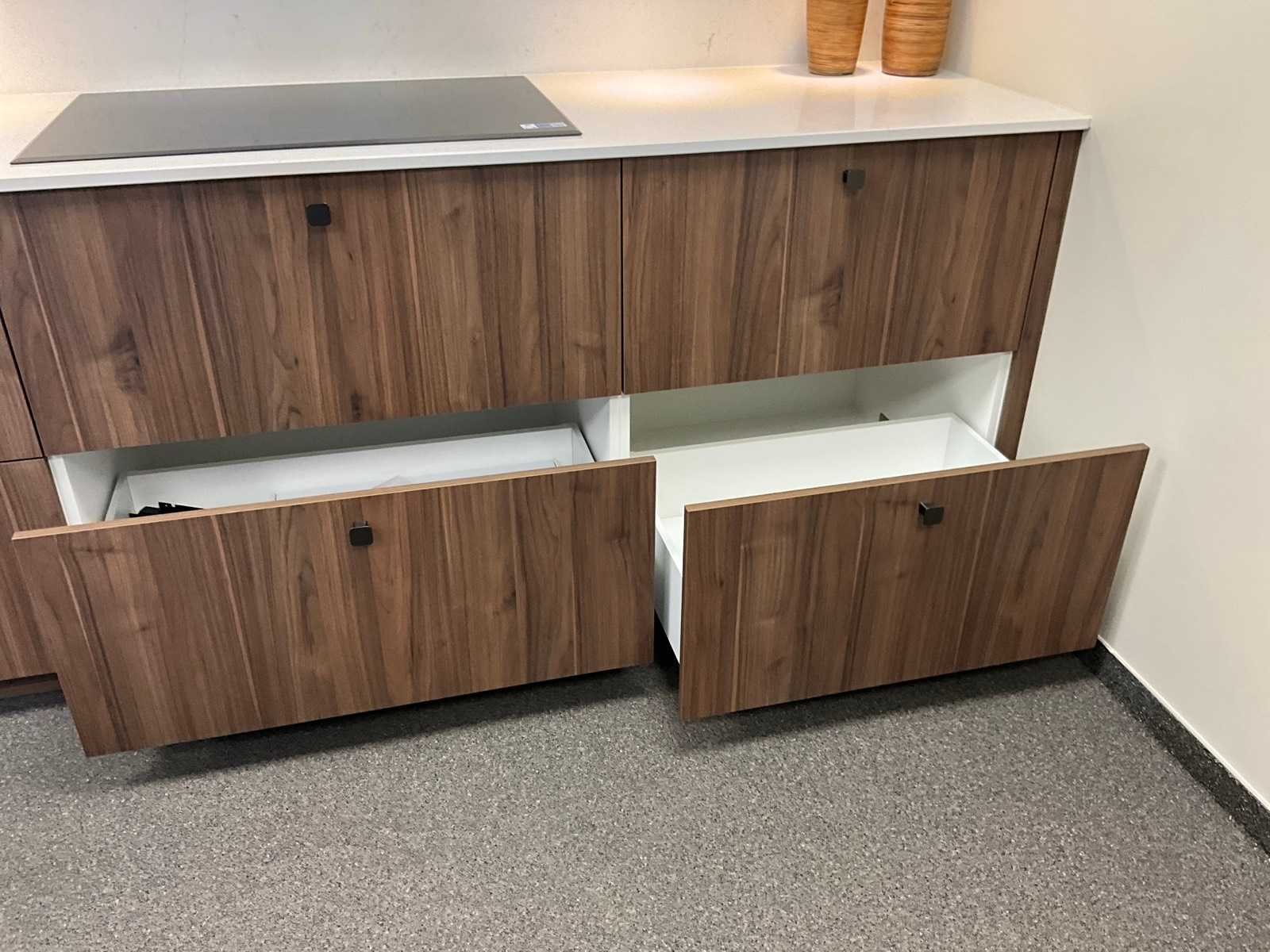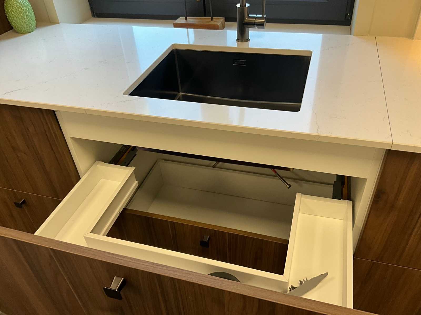 Meubelen : in houten kunststof notelaar uitvoering. Werkbladen composiet silestone Hybriq Mineral surfaces, 20 mm dik, met achterwand aan kookplaat. Inclusief diverse toestellen waaronder spoelbak Reginox 50x40x20 cm, Kraan Reginox, Inductie kookplaat Siemens, inbouw dampkap Frecan, inbouw koelkast AEG SFB612F1AF, inbouw vaatwasser SIemens SX75Z801BE en 2x oven Samsung waaronder NQ50T8939BK en NQ50T8539BK. Enkel bovenvermelde nieuwe toestellen zijn inbegrepen in deze keukenopstelling. Wel compleet met 2 zitstoelen/krukken Bronx*71 en UITGEZONDERD de decoratie alsook inhoud kasten ! Afmetingen keukeneiland circa 265 x 106 x 93 cm hoog met 8 deuren; afmetingen extra hangkast circa 245 x 40 x 92 cm hoog met 6 deuren, En wandopstelling totaal : circa 600 x 65 x 245 cm hoog, werkblad 93 cm hoog. Nee Type keukenopstelling: Keukeneiland en wandkast opstelling Lengte: 600cm Breedte: 65cm Hoogte: 245cm Kraan: Reginox Gootsteen: Reginox Werkblad hoogte: 93cm Magnetron: Samsung Fornuis: Siemens Koelkast: AEG Softclose: true Oven: Samsung Afzuigkap: Frecan Vaatwasser: Siemens Lengte kookeiland: 265cm Breedte kookeiland: 106cm Hoogte kookeiland: 93cm