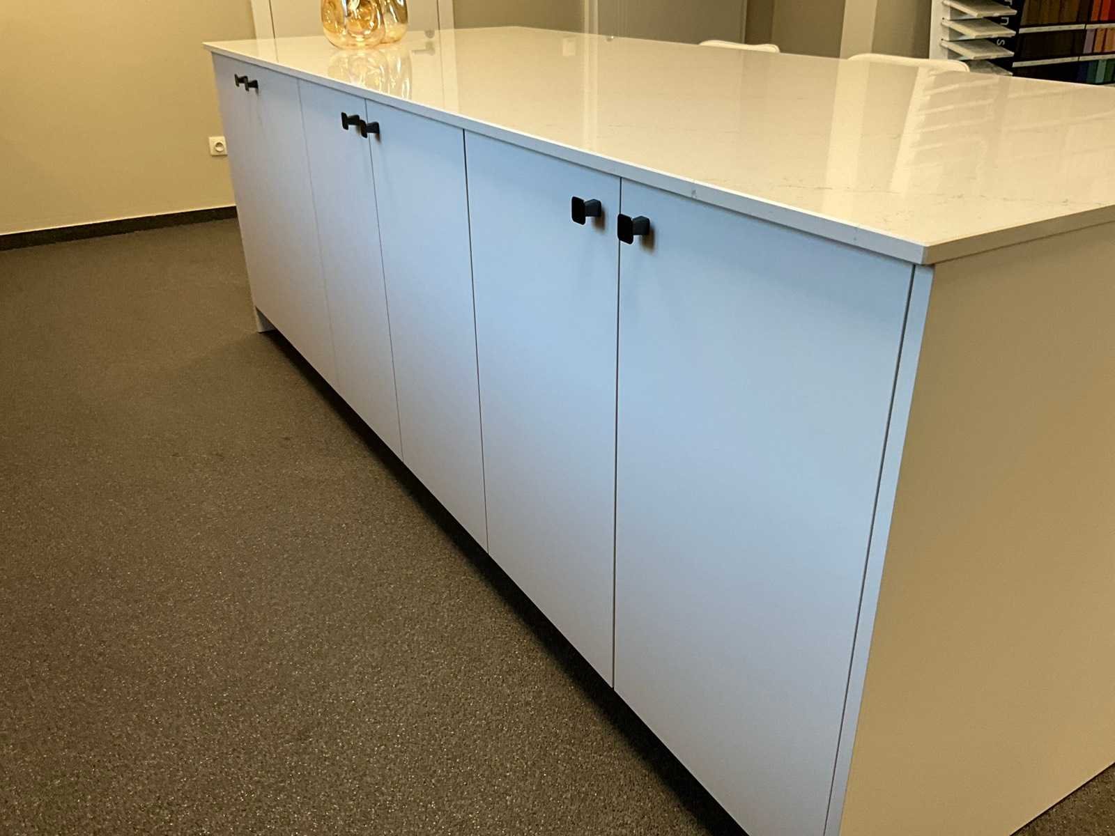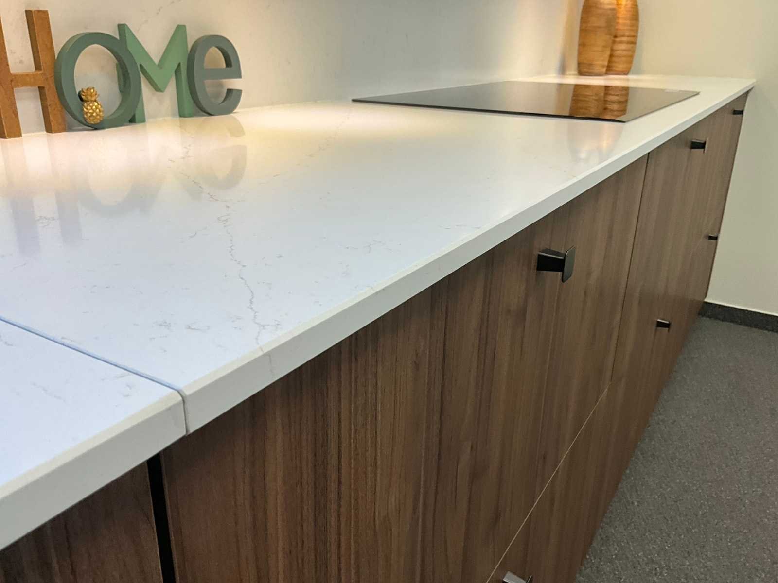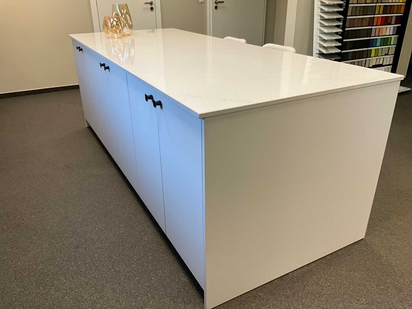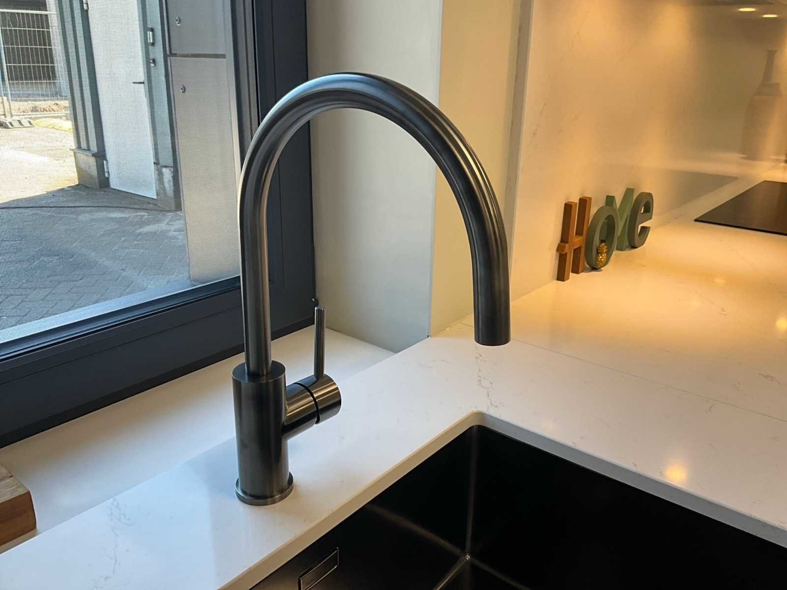 Meubelen : in houten kunststof notelaar uitvoering. Werkbladen composiet silestone Hybriq Mineral surfaces, 20 mm dik, met achterwand aan kookplaat. Inclusief diverse toestellen waaronder spoelbak Reginox 50x40x20 cm, Kraan Reginox, Inductie kookplaat Siemens, inbouw dampkap Frecan, inbouw koelkast AEG SFB612F1AF, inbouw vaatwasser SIemens SX75Z801BE en 2x oven Samsung waaronder NQ50T8939BK en NQ50T8539BK. Enkel bovenvermelde nieuwe toestellen zijn inbegrepen in deze keukenopstelling. Wel compleet met 2 zitstoelen/krukken Bronx*71 en UITGEZONDERD de decoratie alsook inhoud kasten ! Afmetingen keukeneiland circa 265 x 106 x 93 cm hoog met 8 deuren; afmetingen extra hangkast circa 245 x 40 x 92 cm hoog met 6 deuren, En wandopstelling totaal : circa 600 x 65 x 245 cm hoog, werkblad 93 cm hoog. Nee Type keukenopstelling: Keukeneiland en wandkast opstelling Lengte: 600cm Breedte: 65cm Hoogte: 245cm Kraan: Reginox Gootsteen: Reginox Werkblad hoogte: 93cm Magnetron: Samsung Fornuis: Siemens Koelkast: AEG Softclose: true Oven: Samsung Afzuigkap: Frecan Vaatwasser: Siemens Lengte kookeiland: 265cm Breedte kookeiland: 106cm Hoogte kookeiland: 93cm